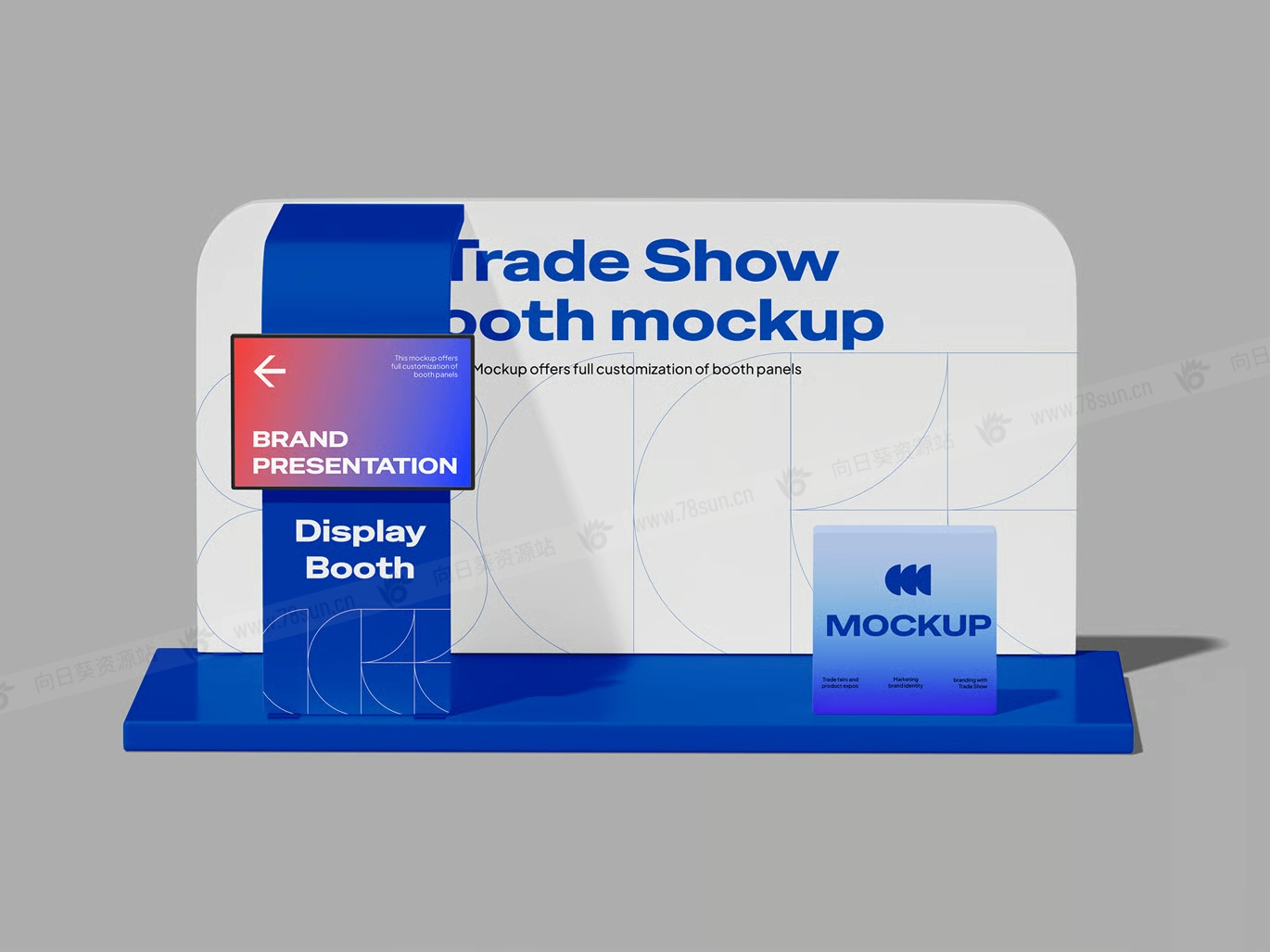 活动展台展位摊位背景板套装品牌VI效果图展示智能贴图psd设计样机,使用智能对象图层,您可以快速应用展位图形、调整墙壁和地板颜色以及自定义环境以获得精美的演示。