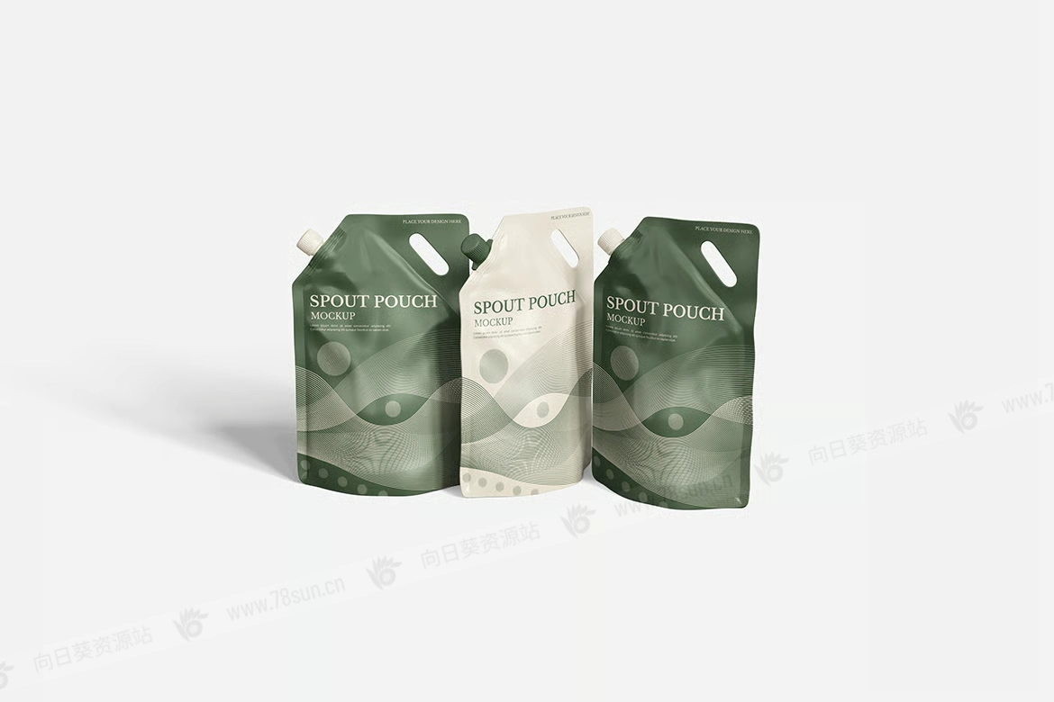 食品化妆品吸嘴袋品牌VI效果图展示智能贴图psd设计样机。使用智能对象替换您的设计很容易。双击智能图层,复制并粘贴您的图稿,保存,然后就完成了!