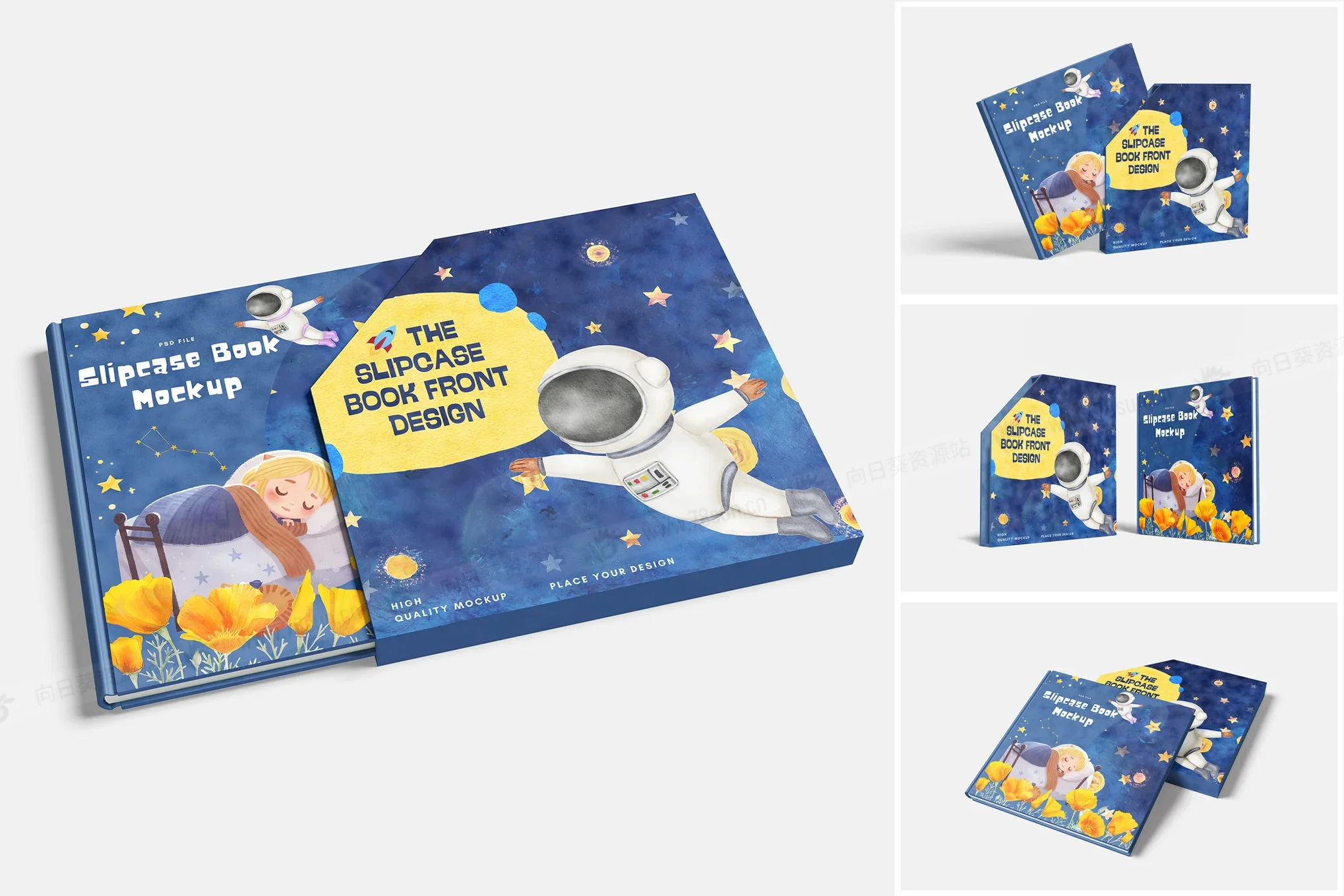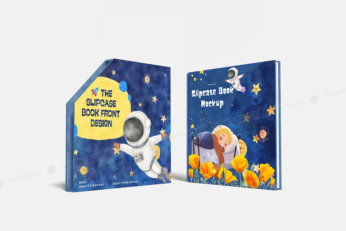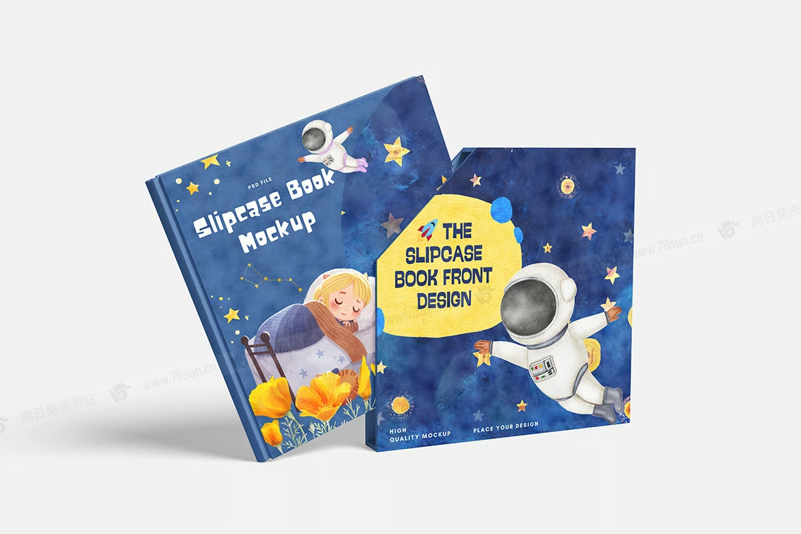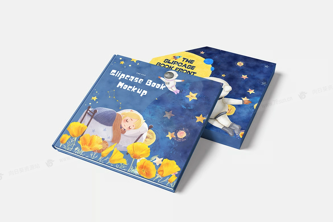 书套精装书籍封面品牌VI效果图展示智能贴图psd设计样机。使用智能对象轻松替换您的设计,双击智能图层,复制并粘贴您的图稿,保存即可完成!
