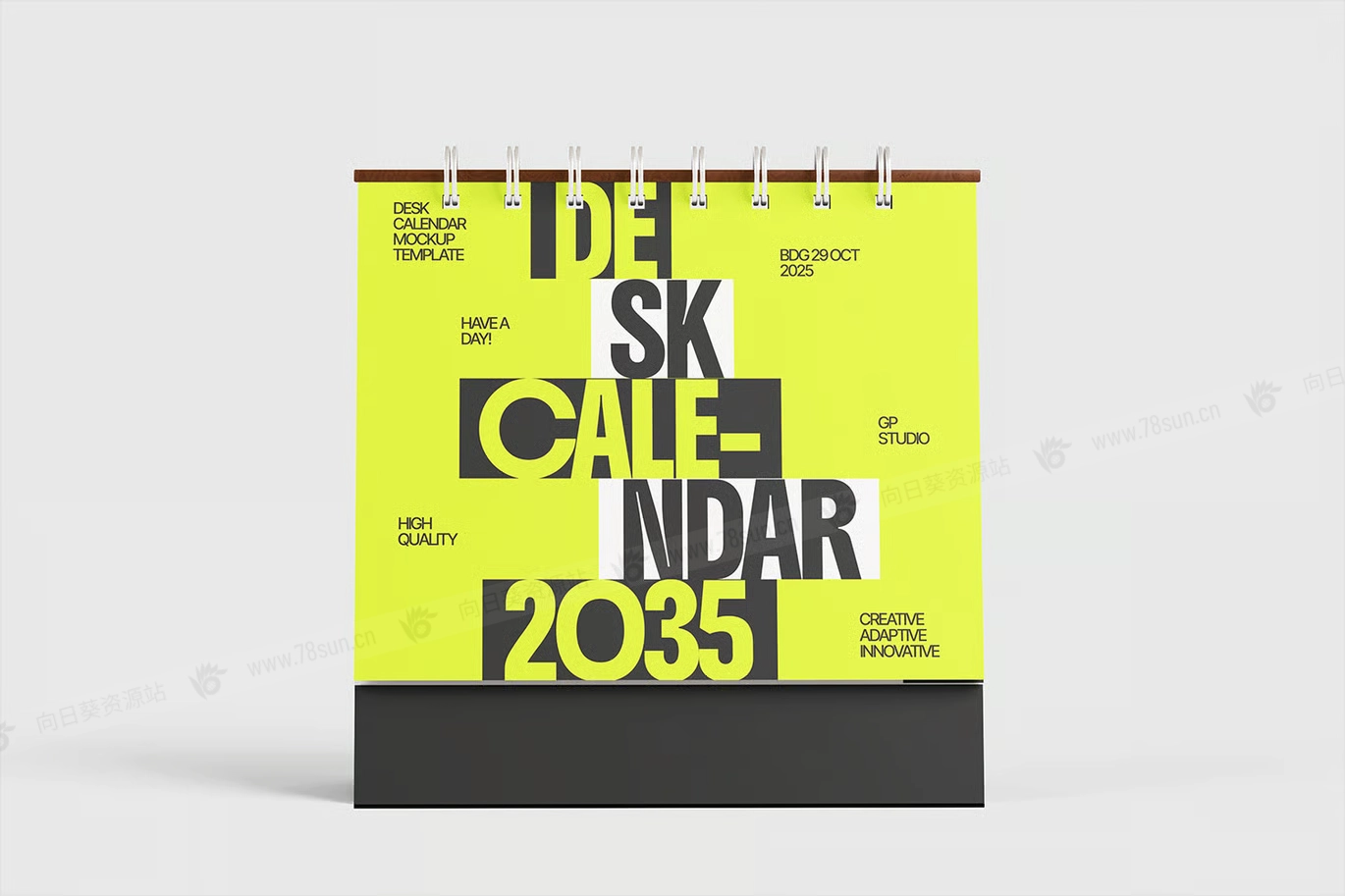 方形桌面螺旋日历台历品牌VI效果图展示智能贴图psd设计样机,