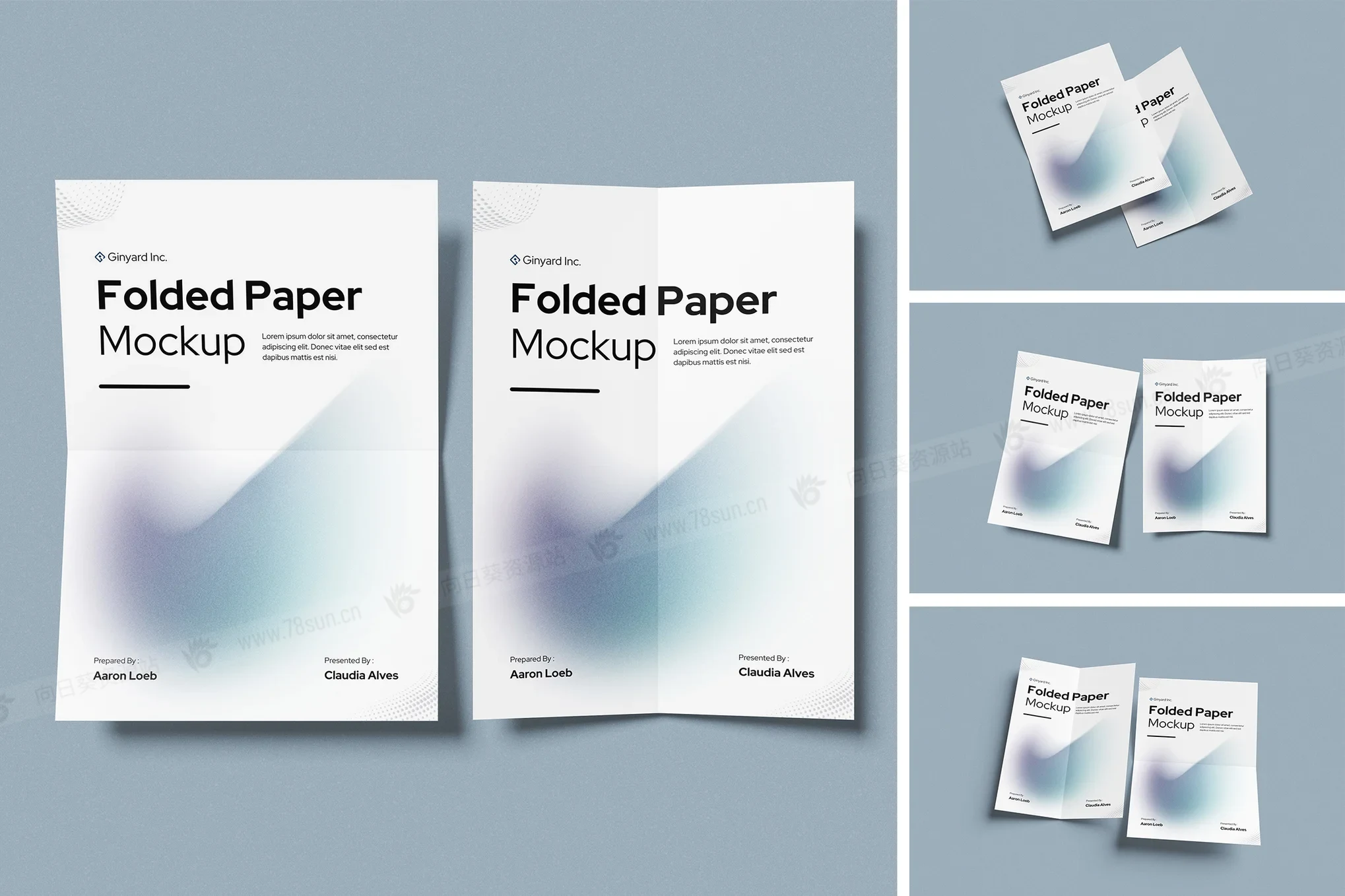 折叠纸海报广告宣传单品牌VI效果图展示智能贴图psd设计样机。该模型包括 4 个带有分层良好 PSD 文件,并且该模型还使用智能对象功能,这意味着您可以在几秒钟内轻松快速地使用自己的设计更改当前设计。