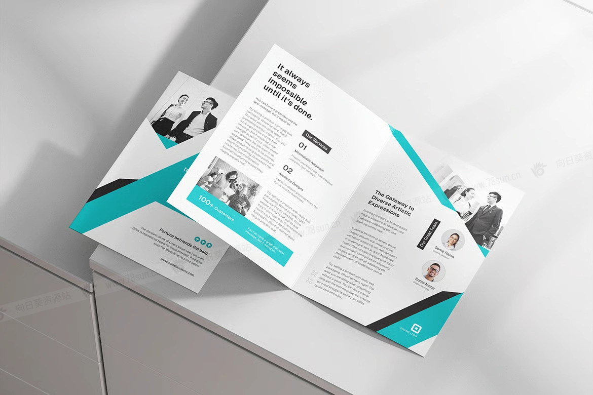 商业公司简介双折页宣传小册子psd设计模板,使用您自己的详细信息进行编辑和自定义非常简单!只需放入您自己的图像和文本,即可打印。