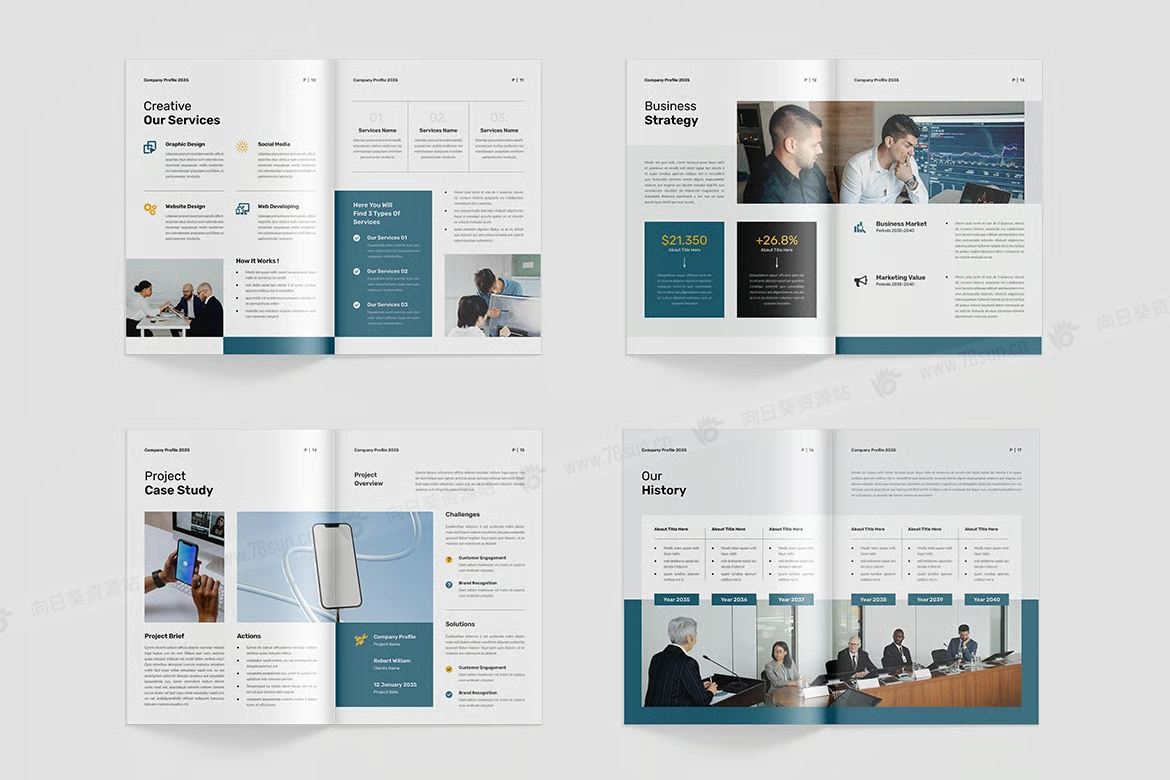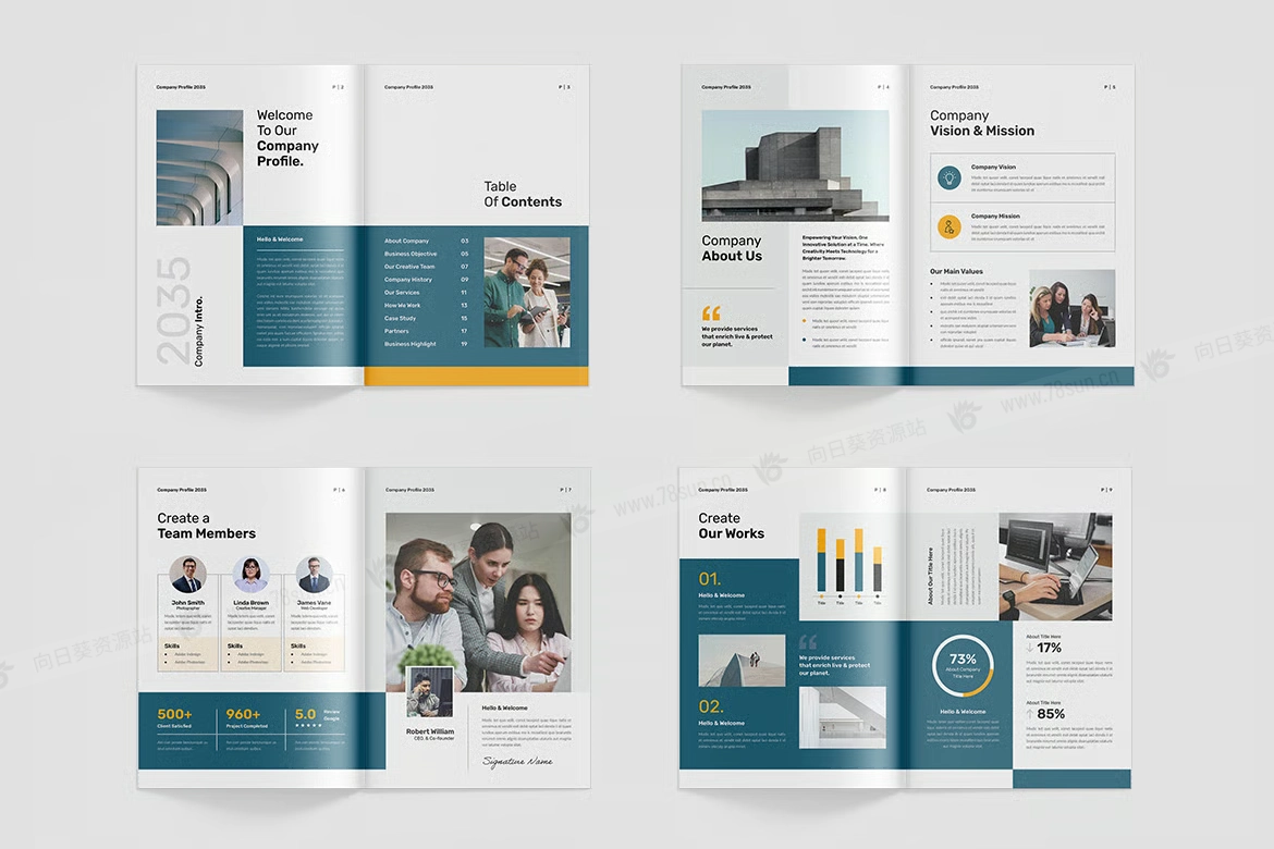 公司简介项目提案小册子杂志宣传册画册indd docx pdf设计模板。该模板非常适合公司简介、商业手册、作品集和提案,具有结构良好的排版和灵活的布局。所有元素都是完全可编辑的——颜色、文本和图像——可以轻松匹配您的品牌指南。这些文件符合高分辨率标准,可打印,也适用于数字用途,例如演示或公司介绍。