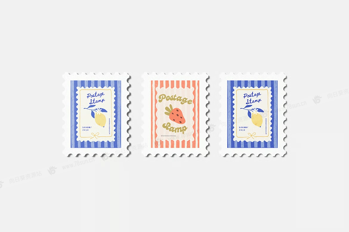 邮票品牌VI效果图展示智能贴图psd设计样机。您可以使用智能对象功能轻松快速地替换设计。以 PSD Photoshop 格式提供,具有智能对象功能,可帮助您在几秒钟内将当前设计替换为您自己的设计。