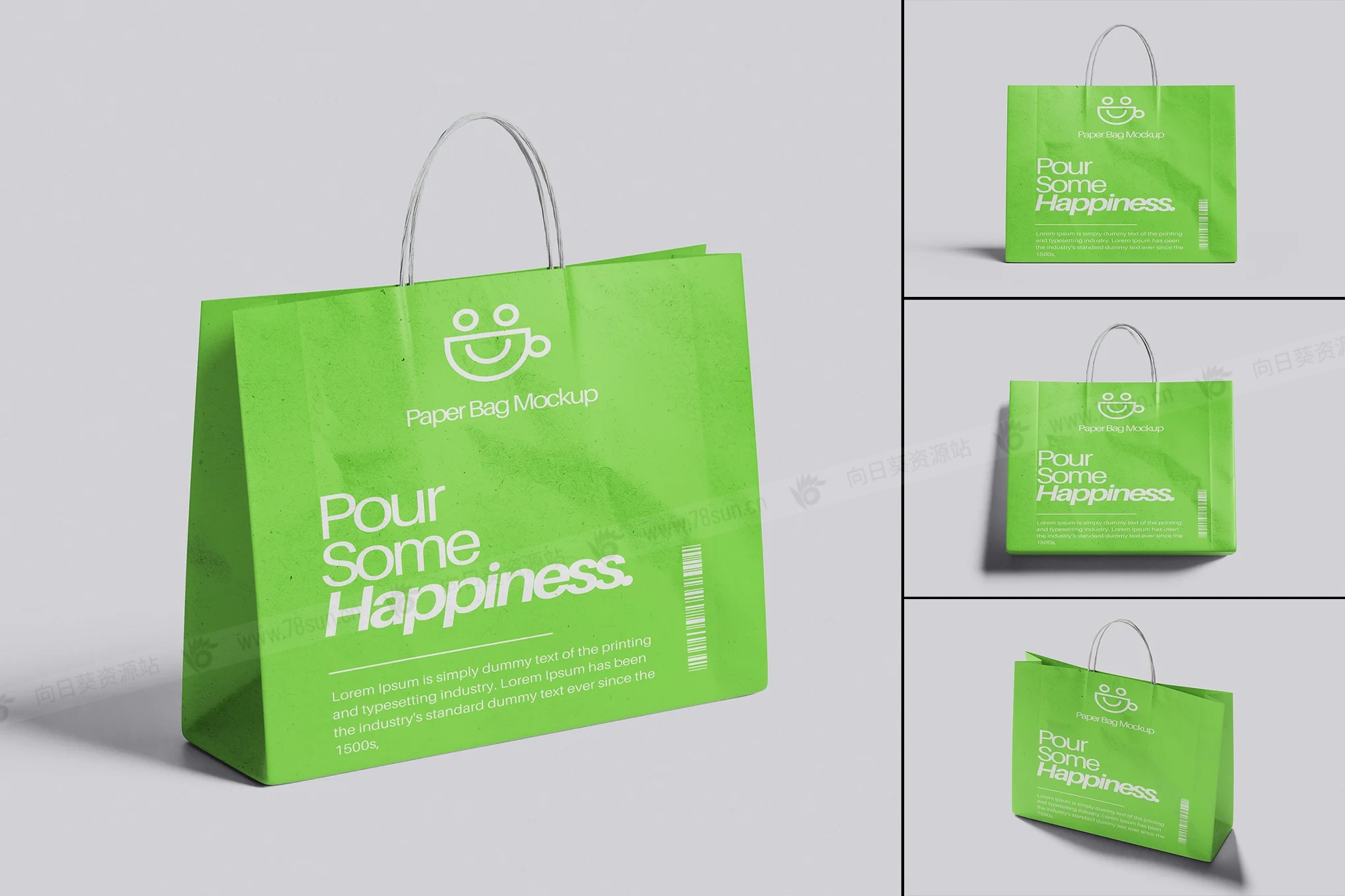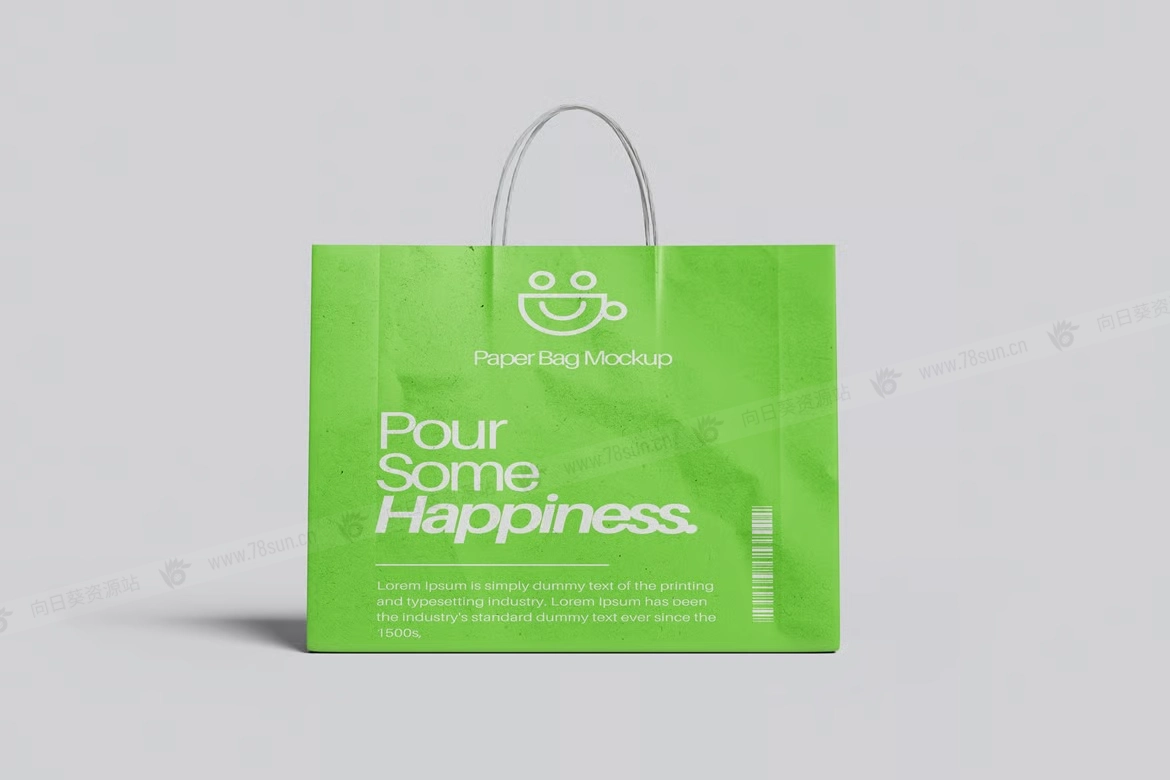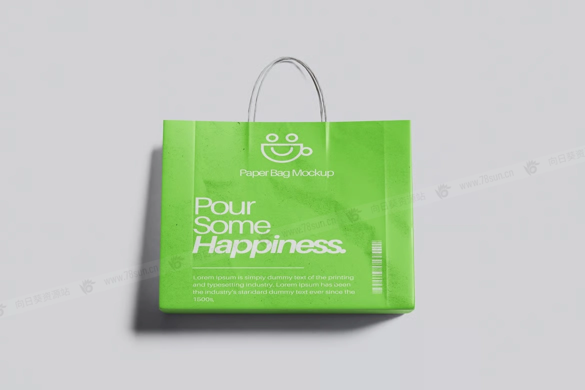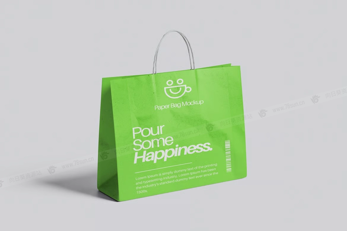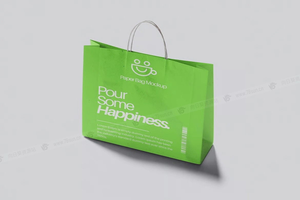 纸质手提袋购物袋品牌VI效果图展示智能贴图psd设计样机,该模型包括 04 个带有分层良好 PSD 文件,并且该模型还使用智能对象功能,这意味着您可以在几秒钟内轻松快速地使用自己的设计更改当前设计。