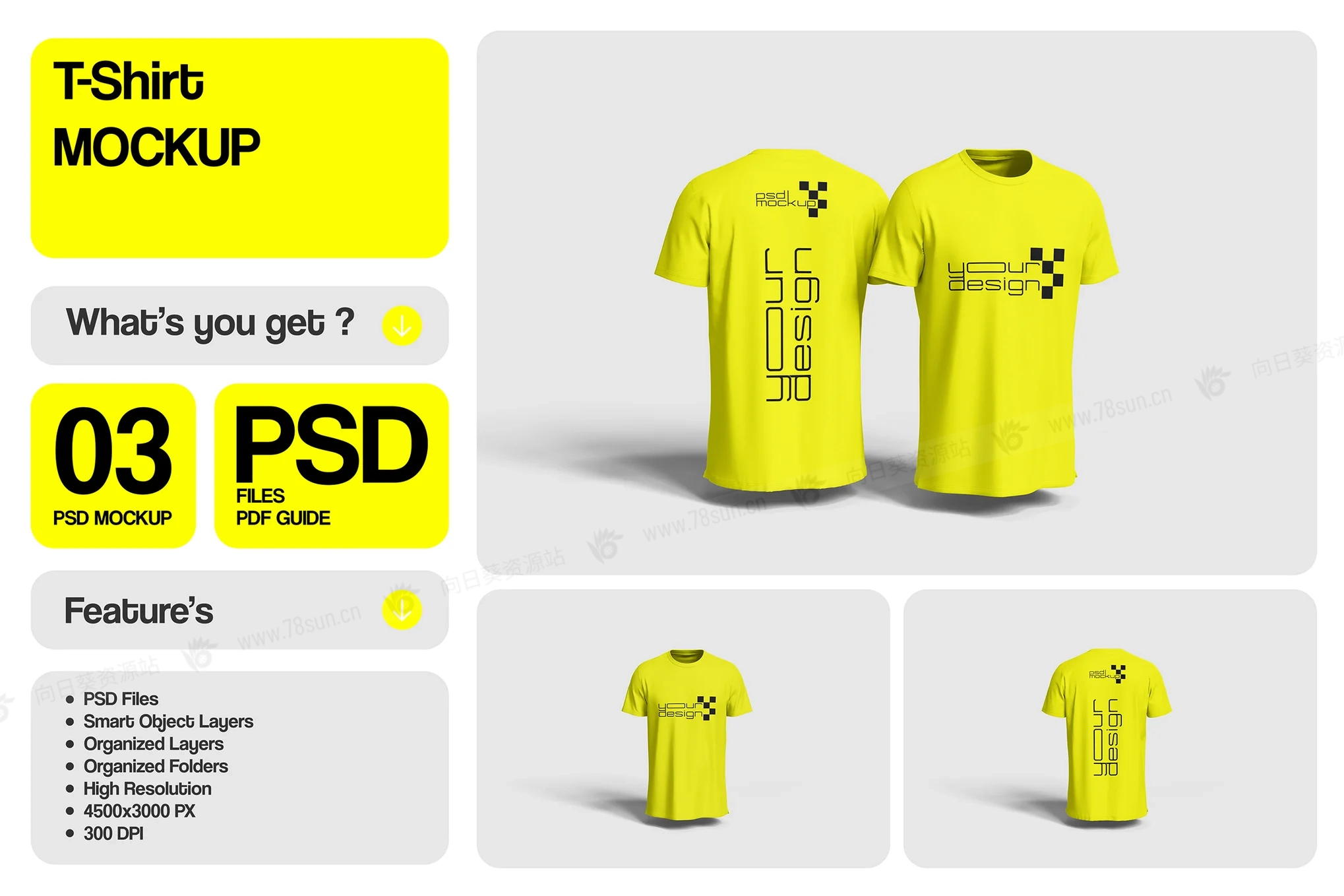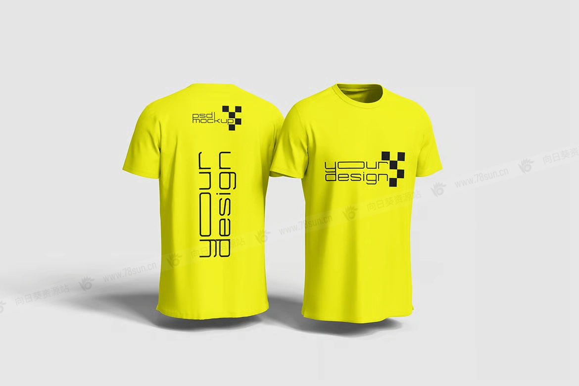 圆领短袖T恤服装品牌VI效果图展示智能贴图psd设计样机。使用智能对象轻松替换为您的设计,双击智能图层,复制并粘贴您的图稿。 包含精心组织的 PSD 文件,具有结构良好的图层。