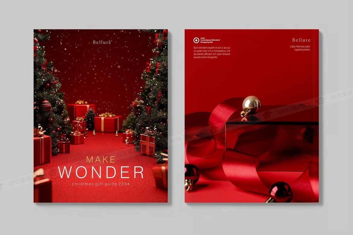 时尚圣诞礼物指南产品目录小册子杂志宣传册画册indd设计模板——节日产品目录/目录、礼品指南、节日及冬季促销宣传册杂志版面。这本印刷版的造型册/书可在Canva、InDesign IDML和INDD中完成,
