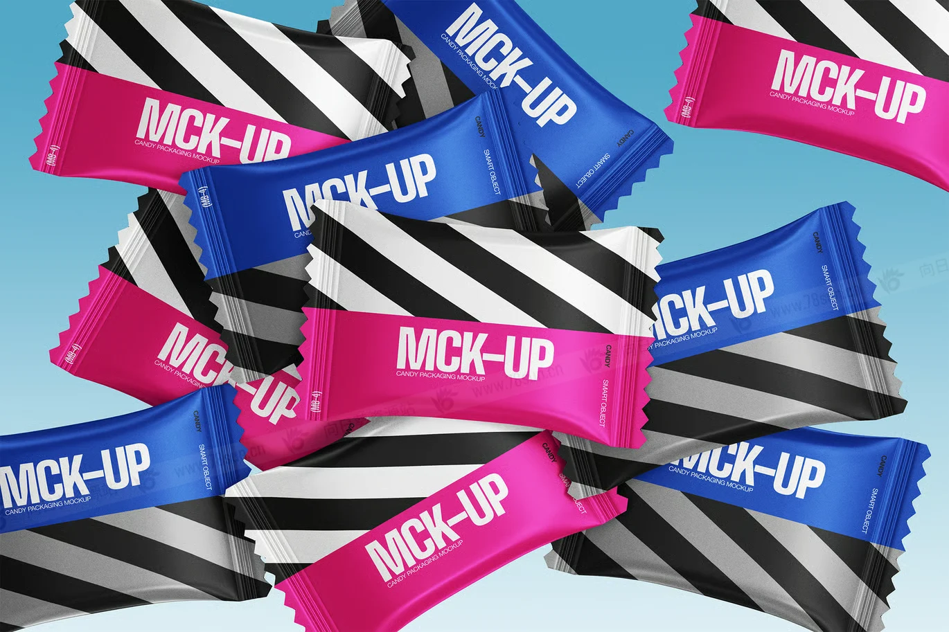 糖果塑料包装品牌VI效果图展示智能贴图psd设计样机,这款样图易于使用,用智能图层更新设计,就可以开始了。