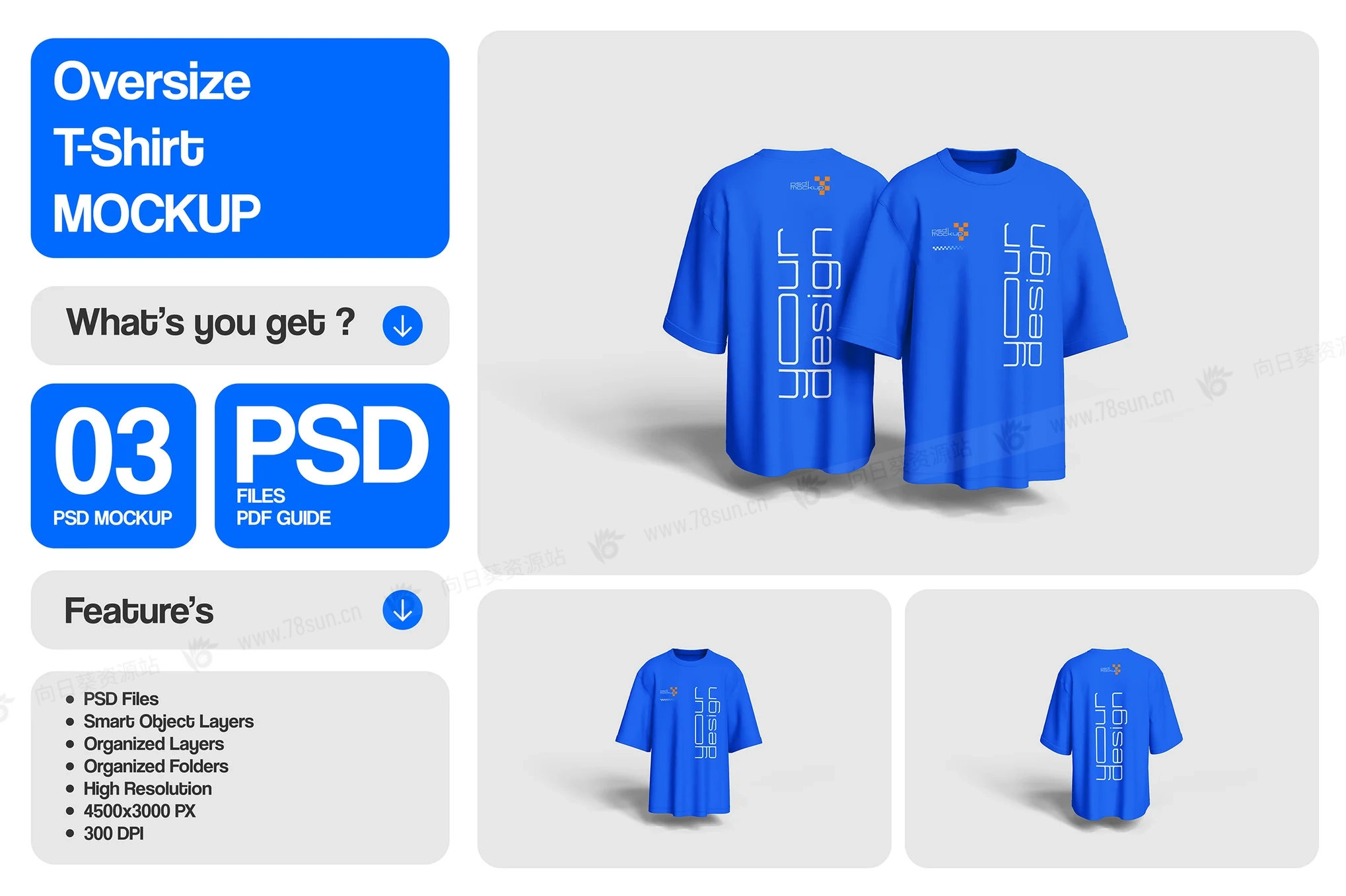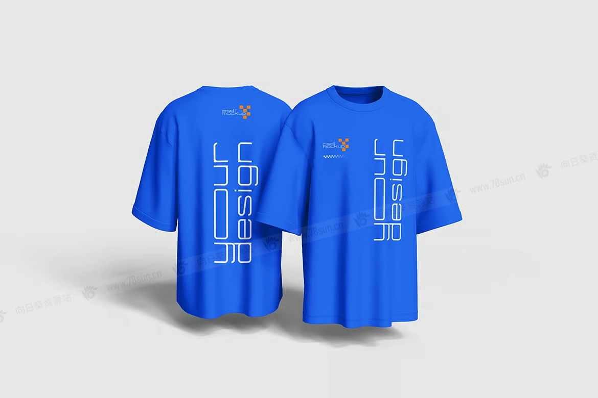 宽松oversize圆领T恤品牌VI效果图展示智能贴图psd设计样机。用智能对象轻松替换你的设计,双击智能图层,复制粘贴你的艺术作品。