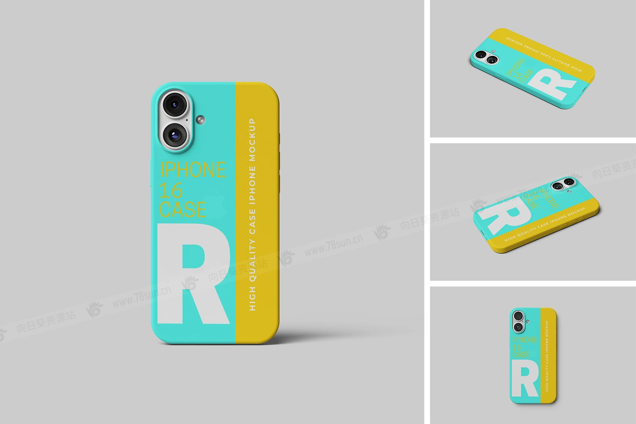 iPhone 16苹果手机壳品牌VI效果图展示智能贴图psd设计样机。这个模型包含4个带有分层良好的PSD文件,并且还采用了智能对象功能,这意味着你可以在几秒钟内轻松快速地用自己的设计替换当前设计。