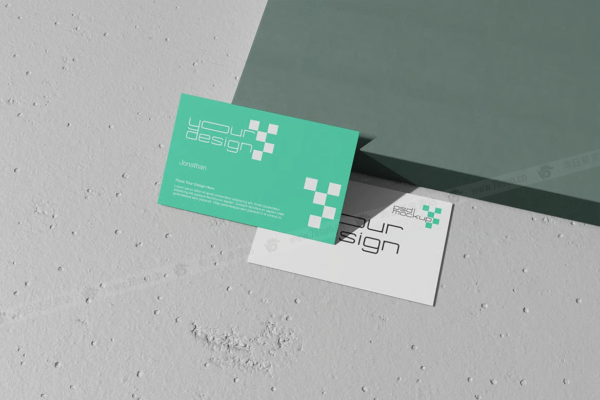 名片商业卡片品牌VI效果图展示智能贴图psd设计样机。用智能对象轻松替换你的设计,双击智能图层,复制粘贴你的艺术作品。