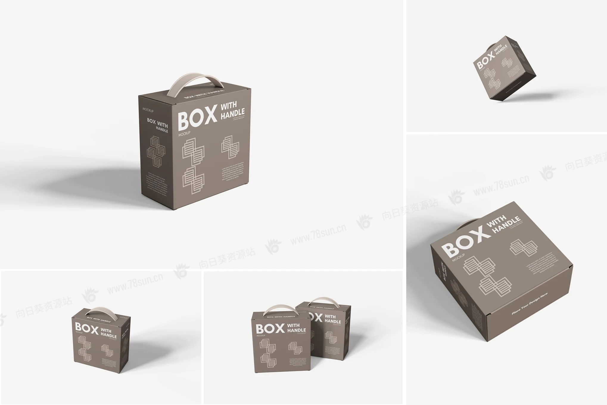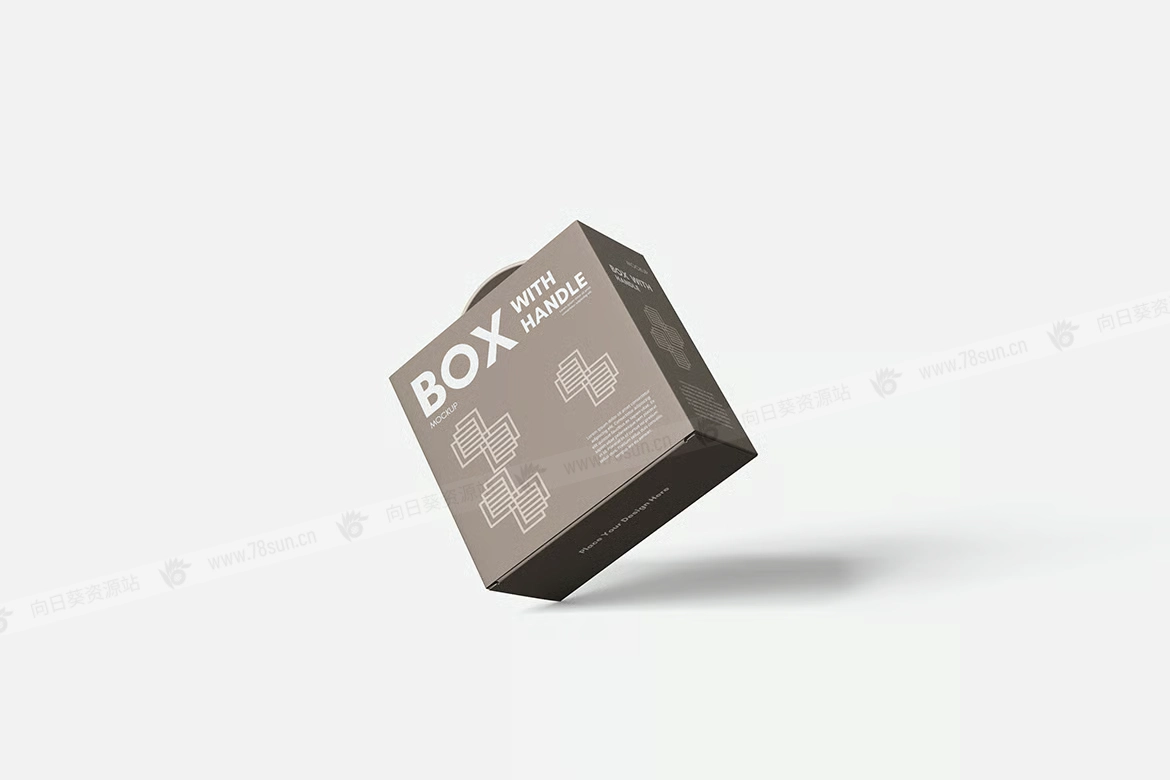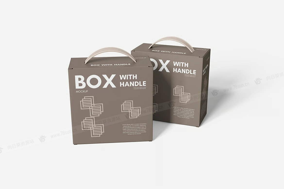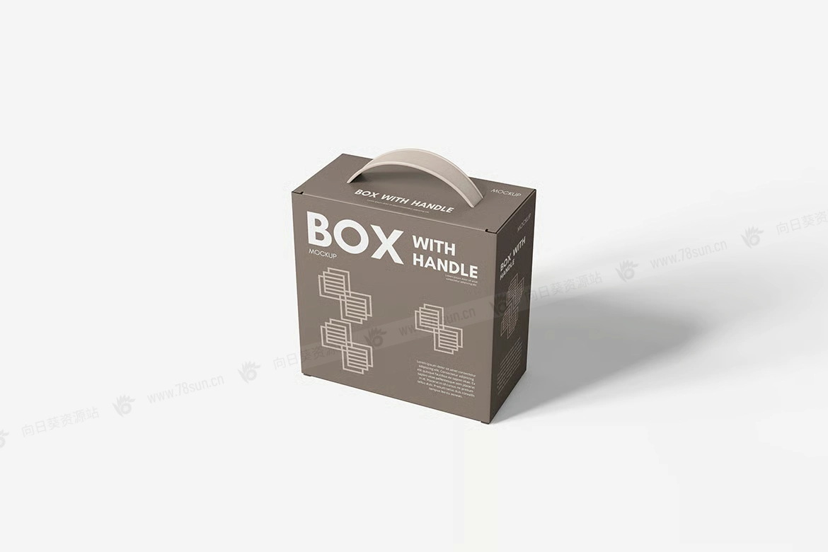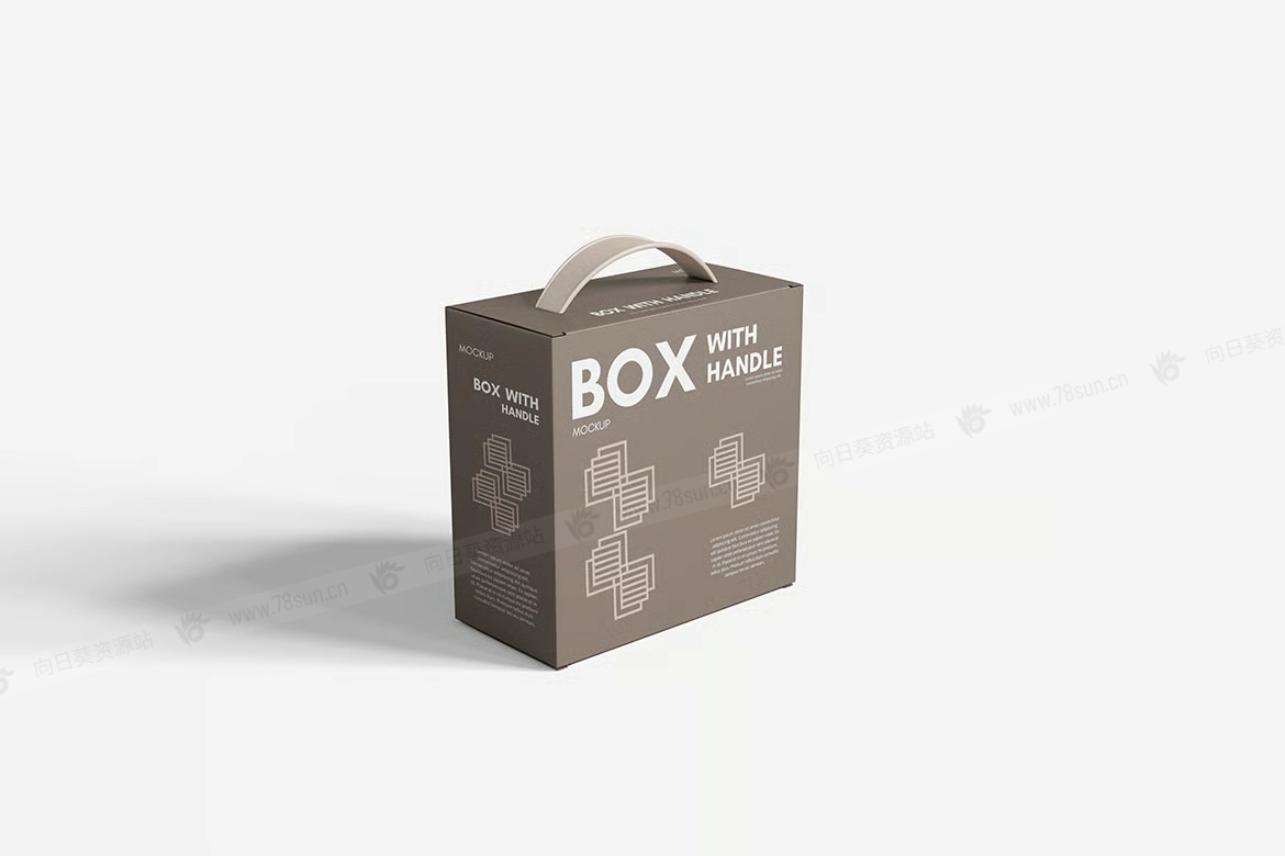 带手柄包装纸盒子品牌VI效果图展示智能贴图psd设计样机。用智能对象替换你的设计很容易。双击智能图层,复制粘贴你的艺术作品,保存,完成任务!