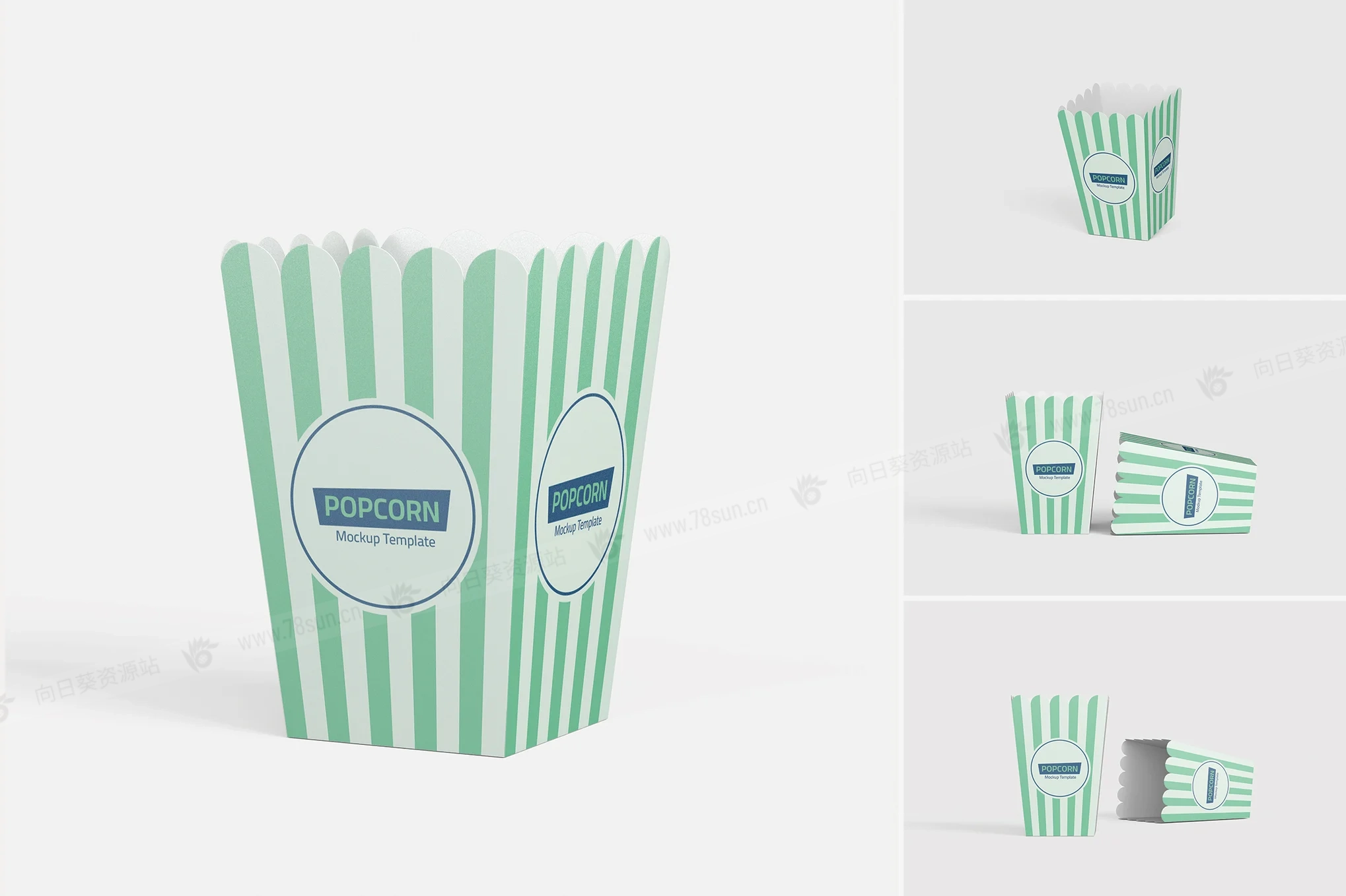 爆米花篮小吃包装纸盒品牌VI效果图展示智能贴图psd设计样机!只需用Photoshop的智能对象一键放置你的设计即可。模型是全层叠的,可以自定义,所以你可以做任何修改。每个元素都是一个层。你可以更改/移除背景,可以更改任何颜色(背景、任何书籍部分……)、调整或移除阴影和反射,任何改动都可以!
