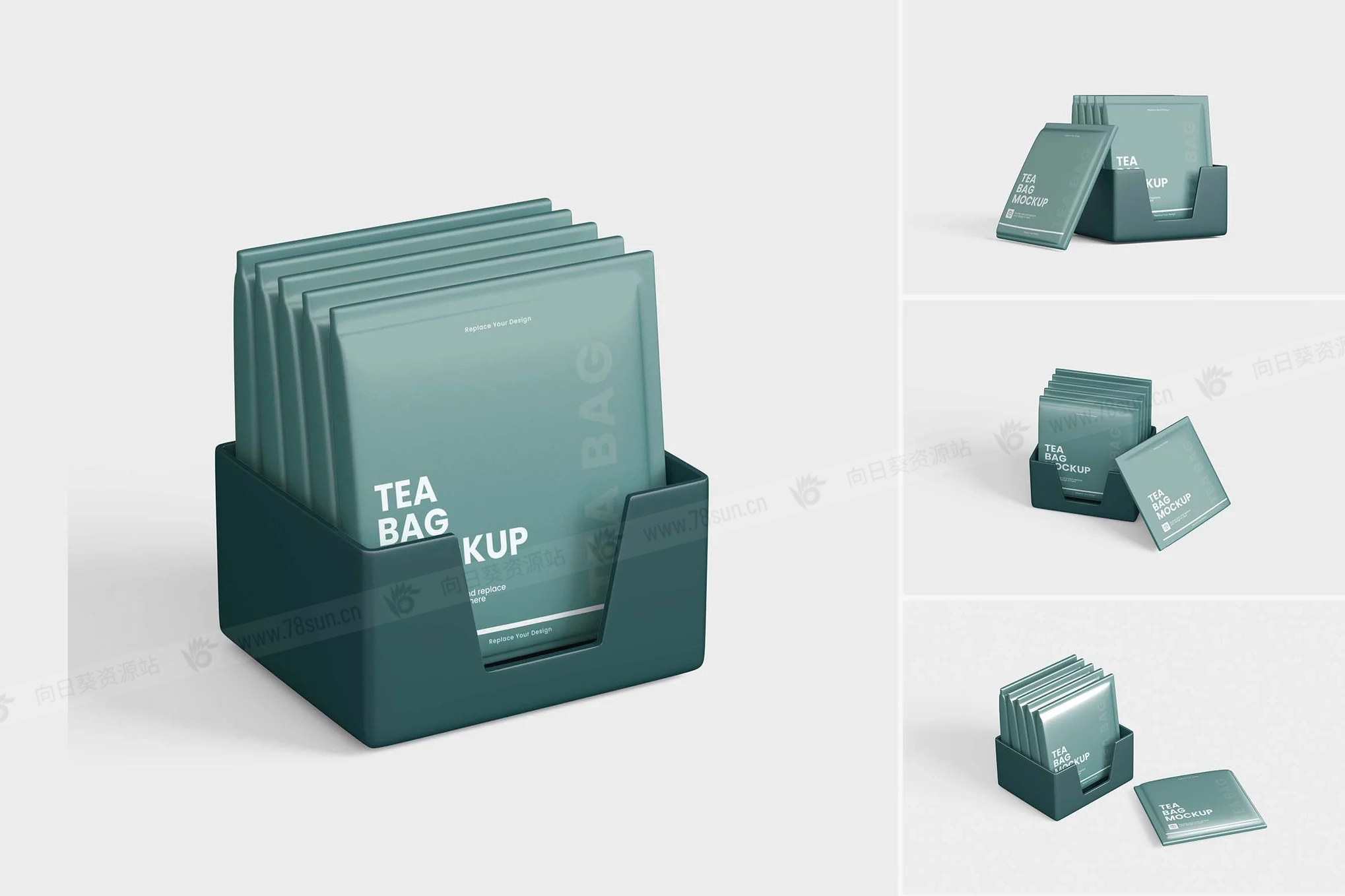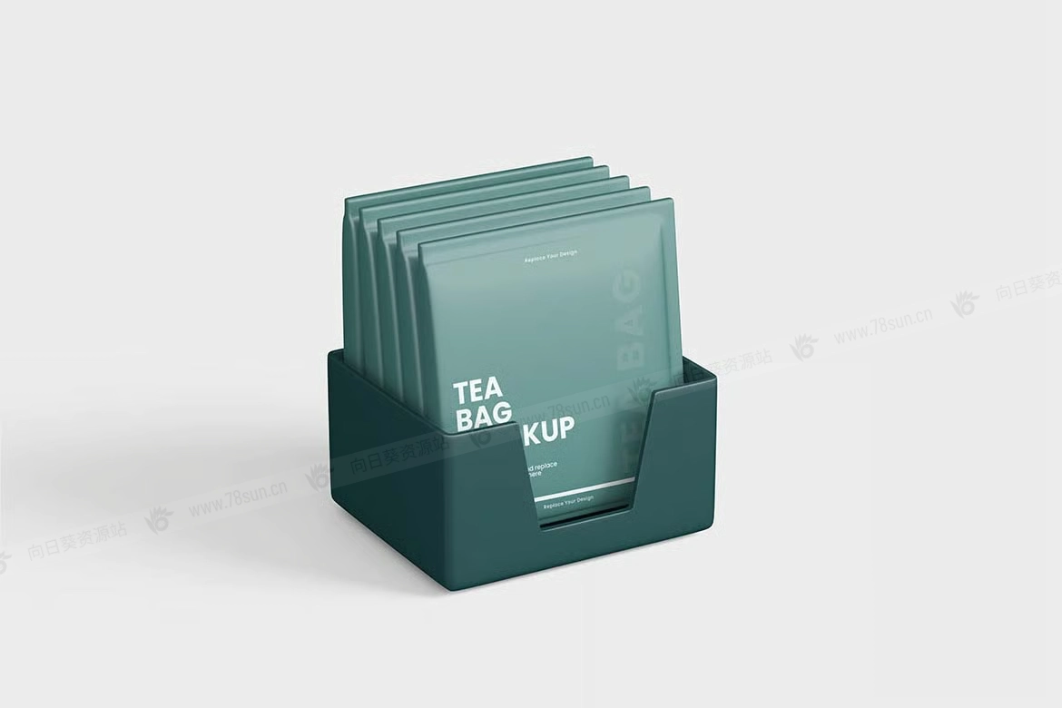 茶叶袋包装纸盒品牌VI效果图展示智能贴图psd设计样机!只需用Photoshop的智能对象一键放置你的设计即可。就是这么简单!