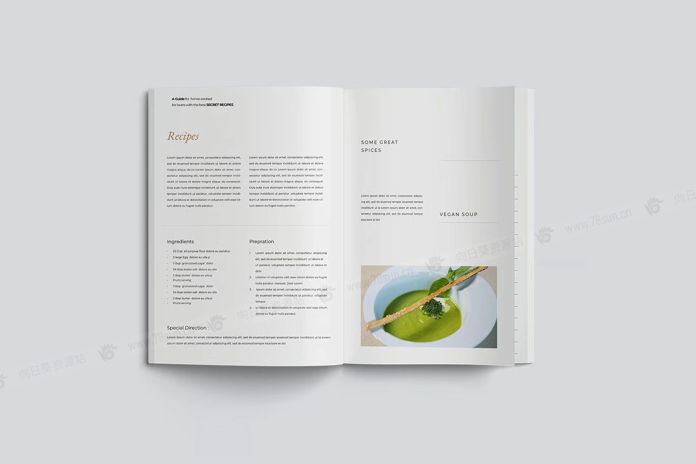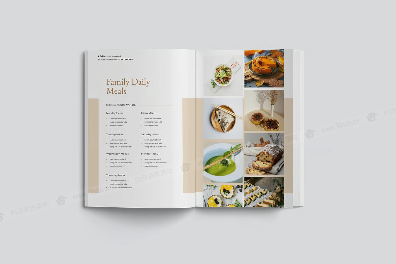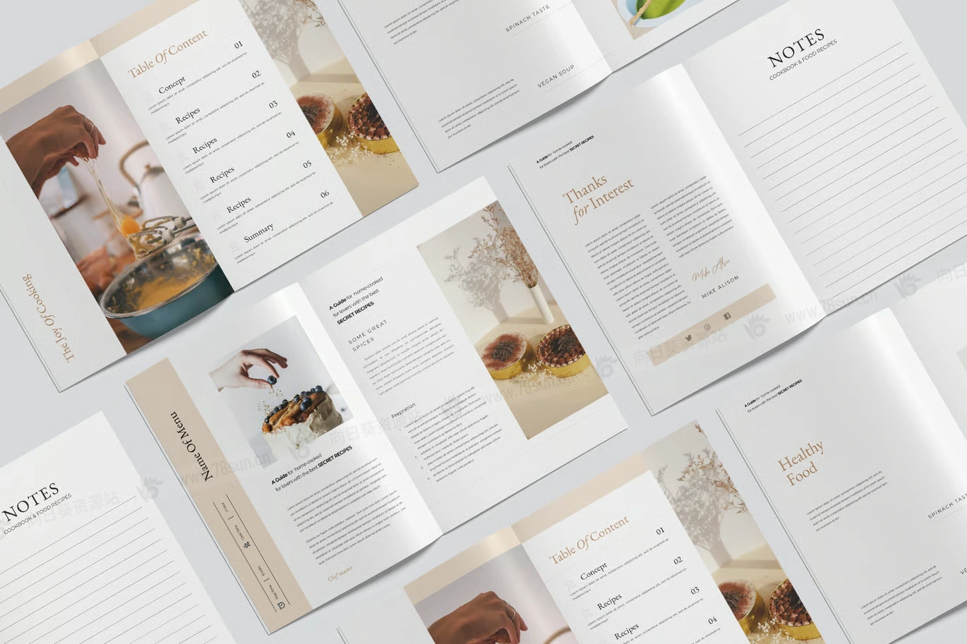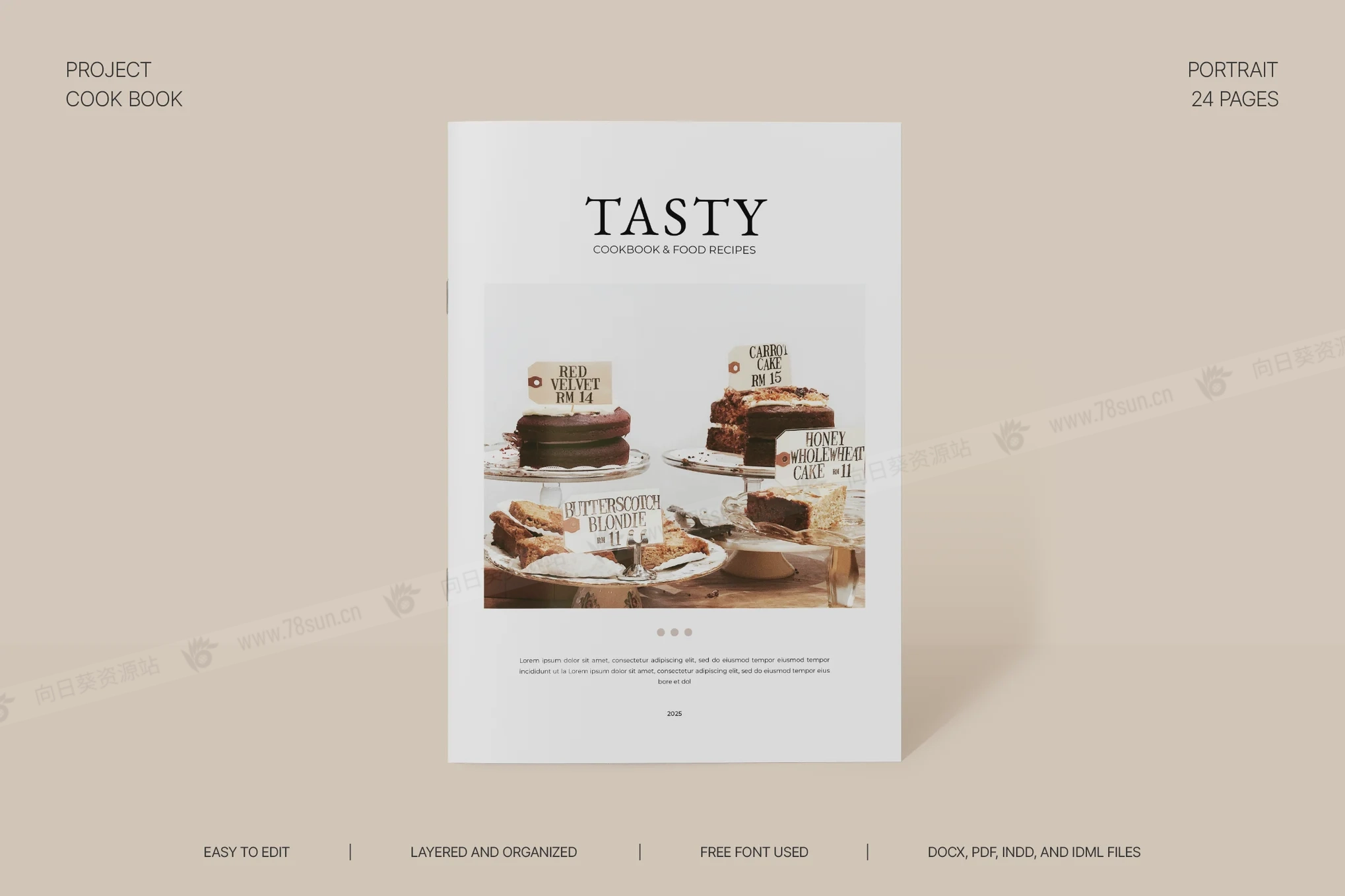 食品美食餐厅烹饪指南食谱小册子杂志宣传册画册docx indd pdf设计模板,该模板有24页打印模板,可选A4尺寸。