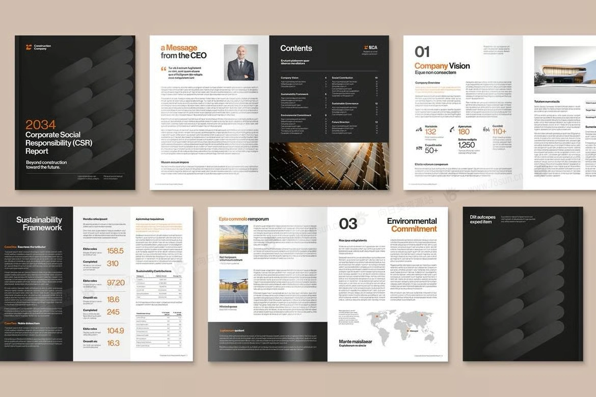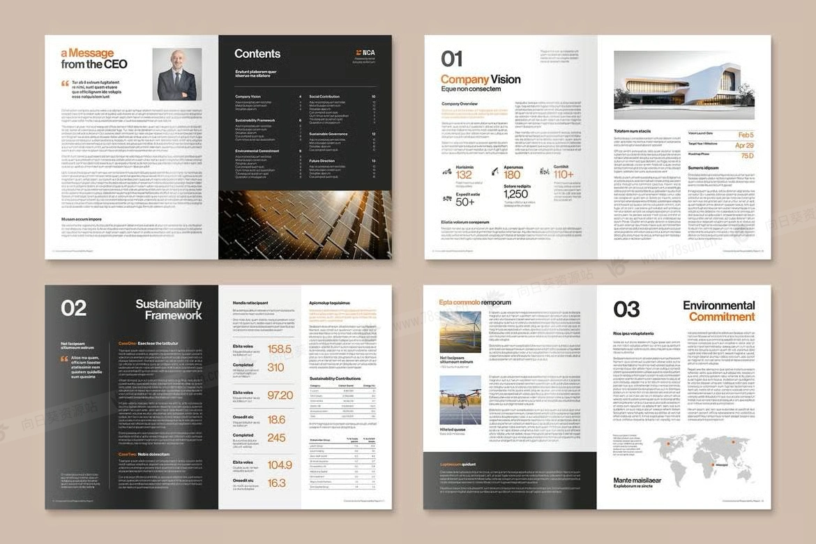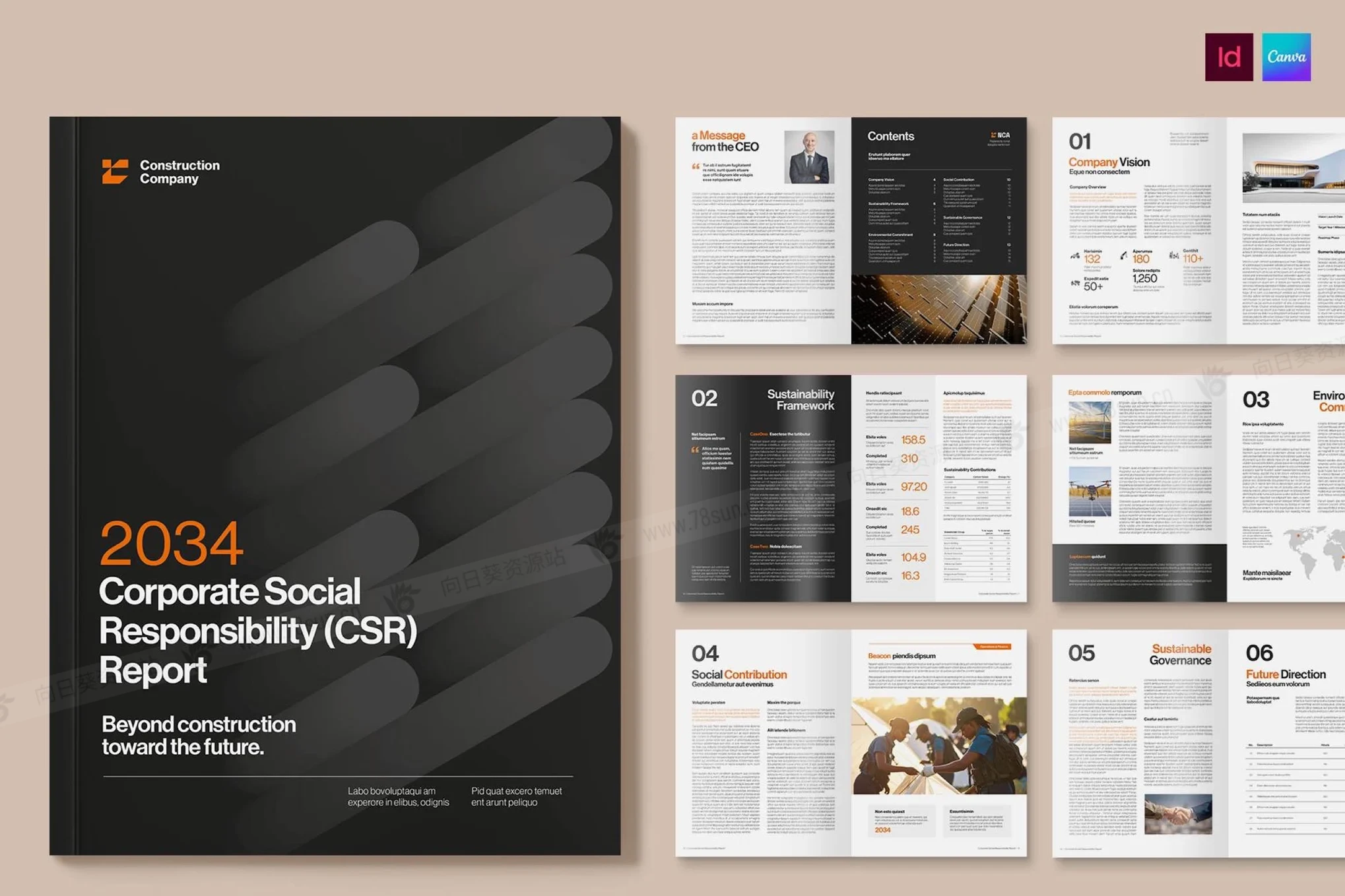 公司简介工业制造房地产小册子杂志宣传册画册indd设计模板,适用于公司报告、事实说明、执行摘要、案例研究和研究文档。该现代白皮书设计支持 Canva、InDesign IDML 和 INDD,提供灵活的页面、网格和排版,适用于 A4/美国字母小册子