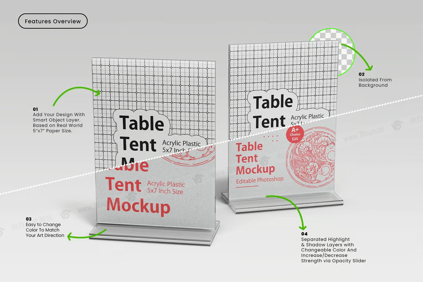 附带独特的策划视图,展示你的设计。基于现实中常见的桌面帐篷纸张尺寸,尺寸为5英寸×7英寸。 - 高分辨率 4500 x 3000 像素 – 300 DPI