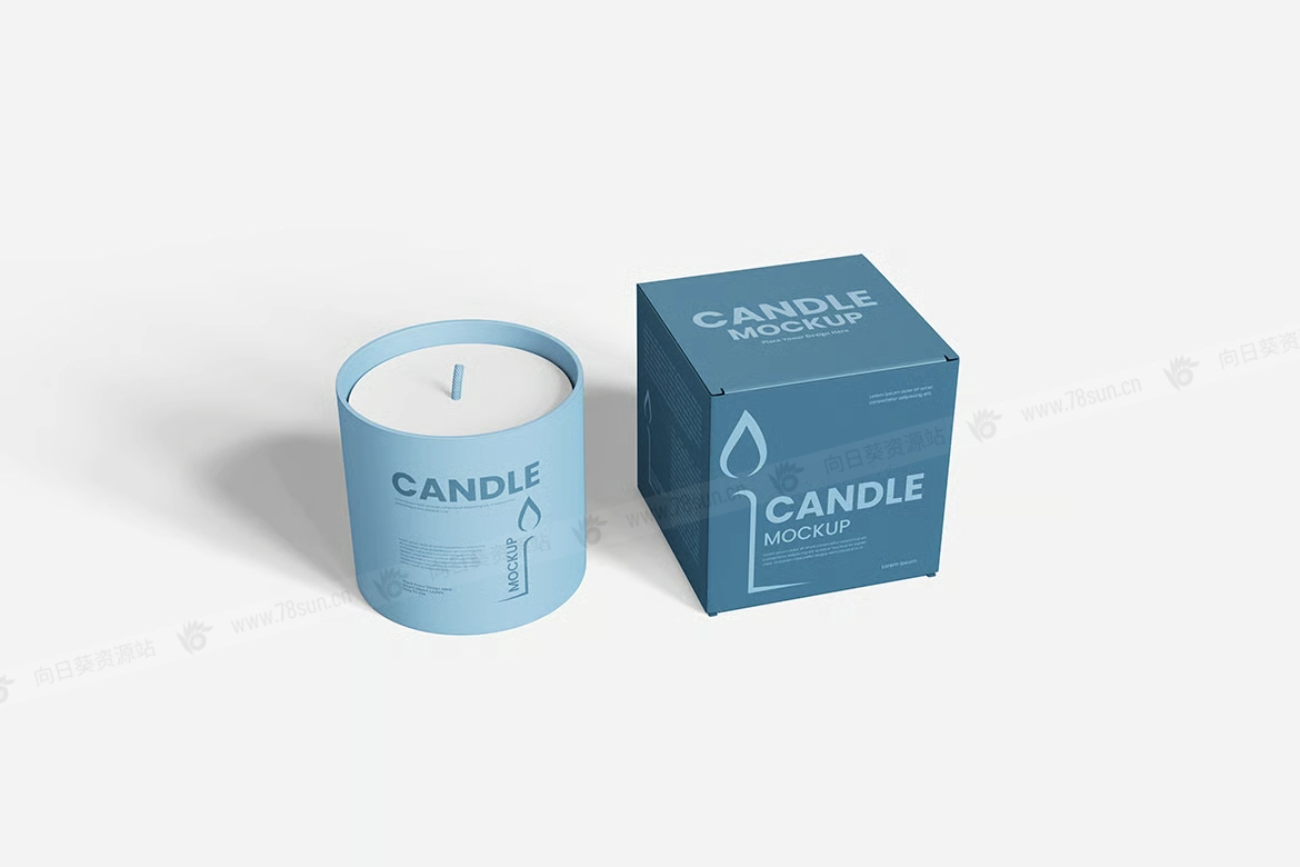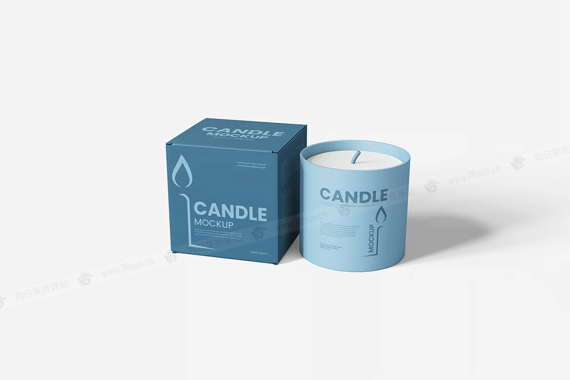 蜡烛香薰罐包装纸盒品牌VI效果图展示智能贴图psd设计样机。用智能对象替换你的设计很容易。双击智能图层,复制粘贴你的艺术作品,保存,完成任务!