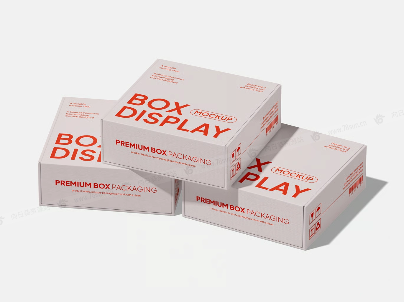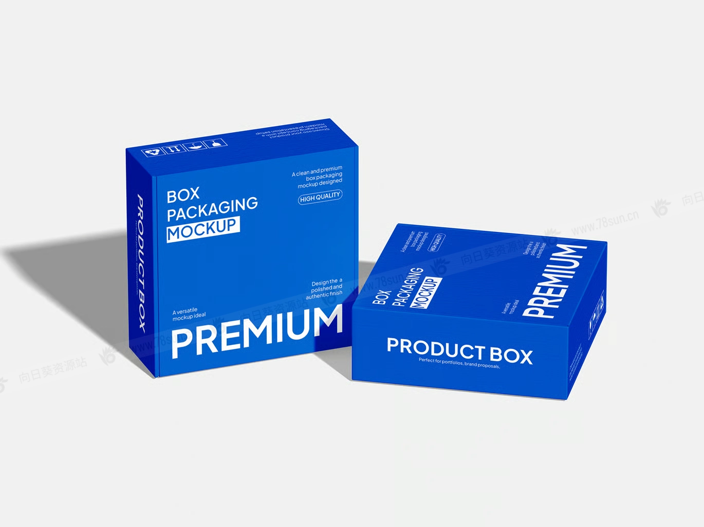 包装纸盒品牌VI效果图展示智能贴图psd设计样机。通过智能对象插入您的艺术作品,轻松调整盒子颜色、布局或背景色调以匹配您的品牌风格。