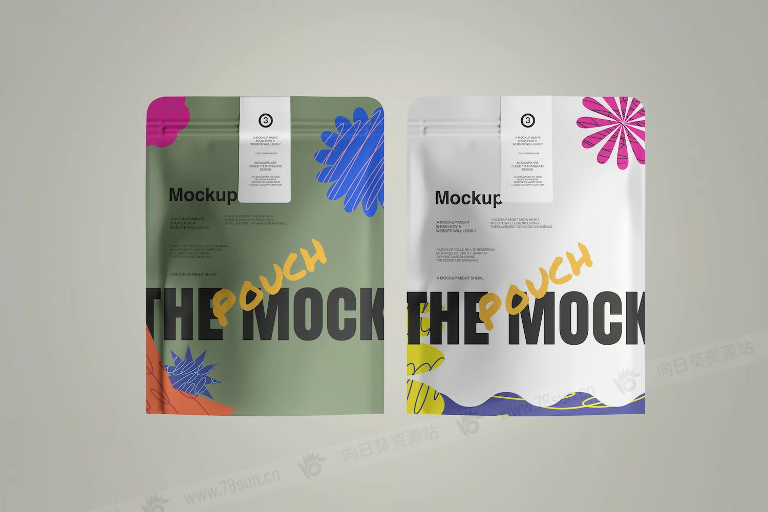 站立式拉链锁袋小袋品牌VI效果图展示智能贴图psd设计样机,