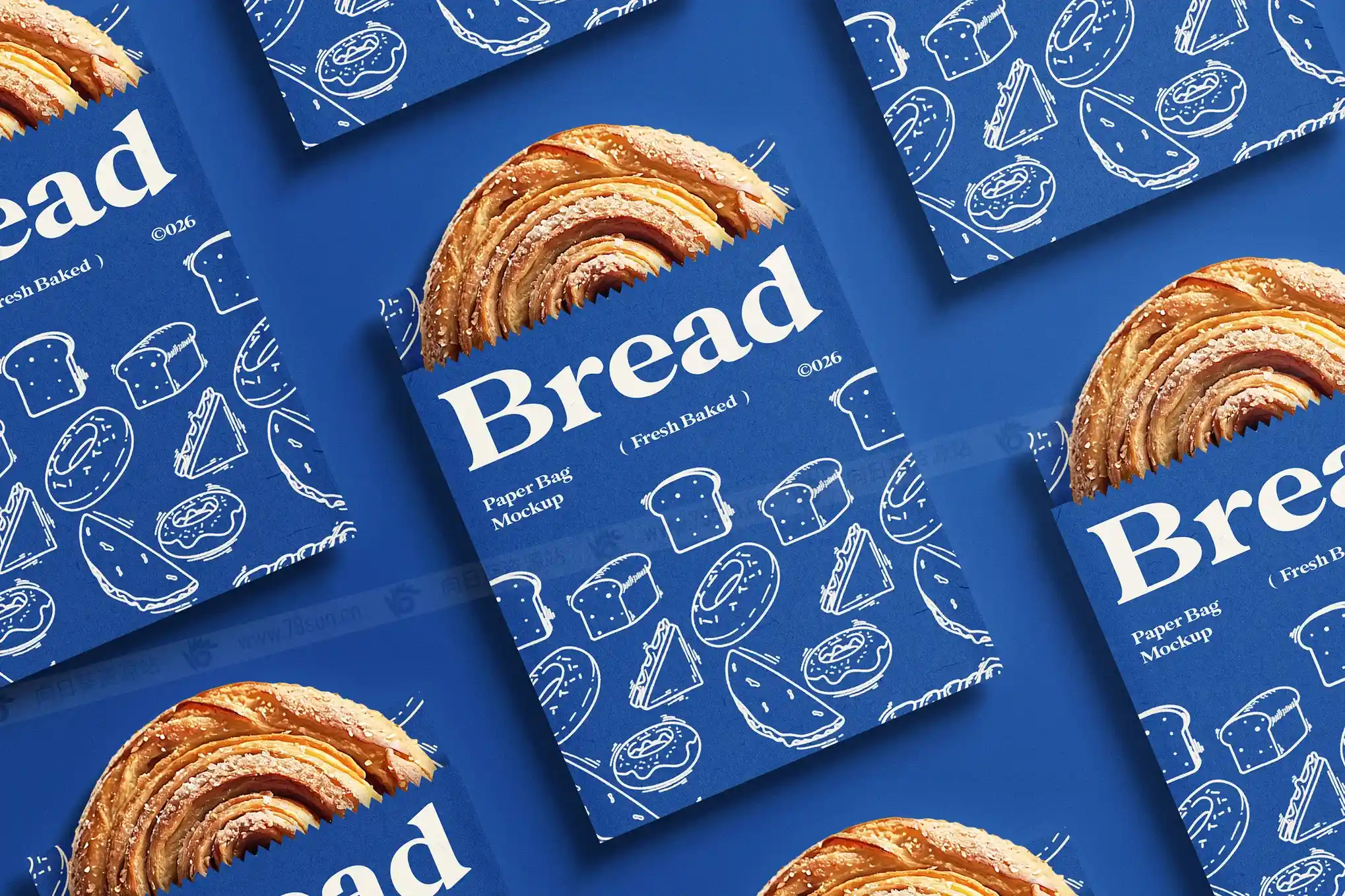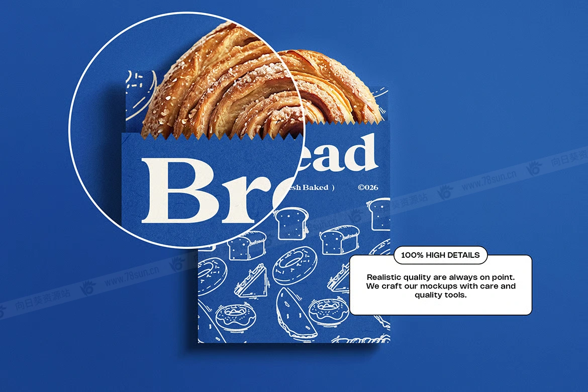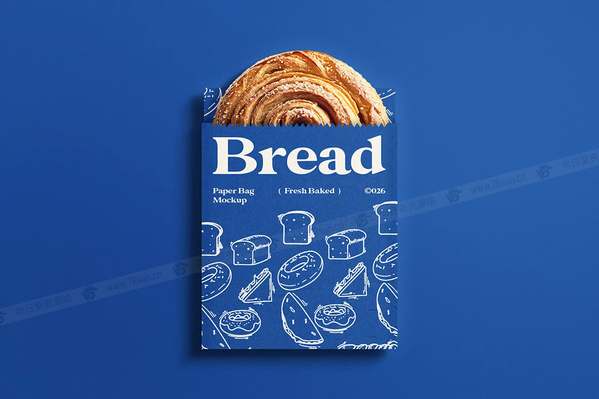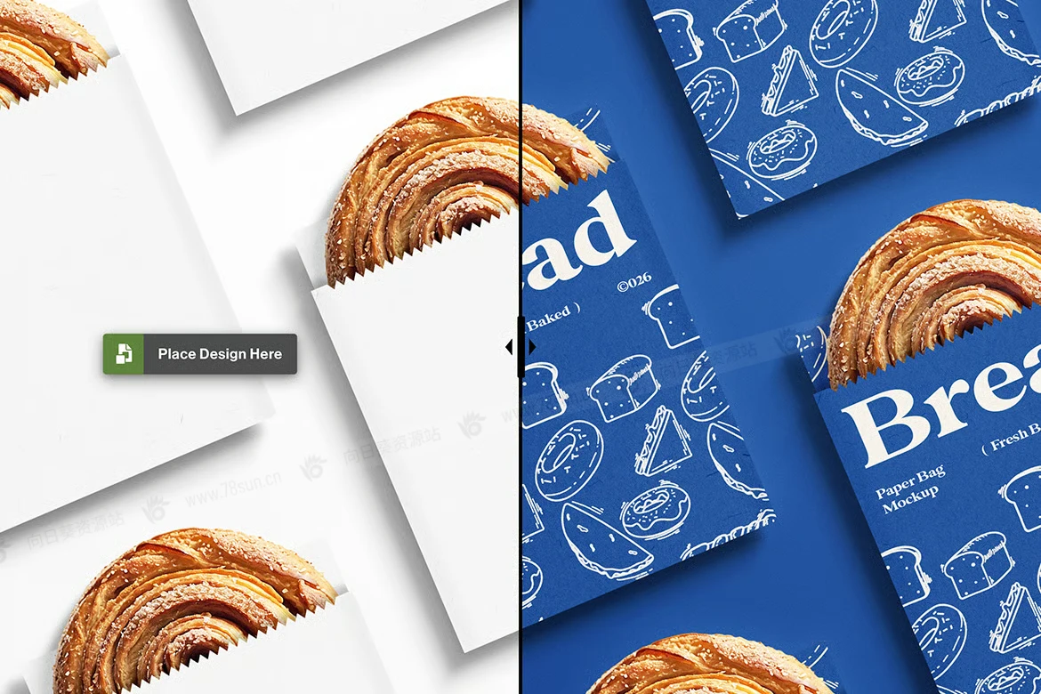 面包食品零食饼干包装纸袋小袋品牌VI效果图展示智能贴图psd设计样机。它拥有逼真的折痕、质地和阴影,非常适合手工烘焙标签、食品品牌或环保包装。包含内容