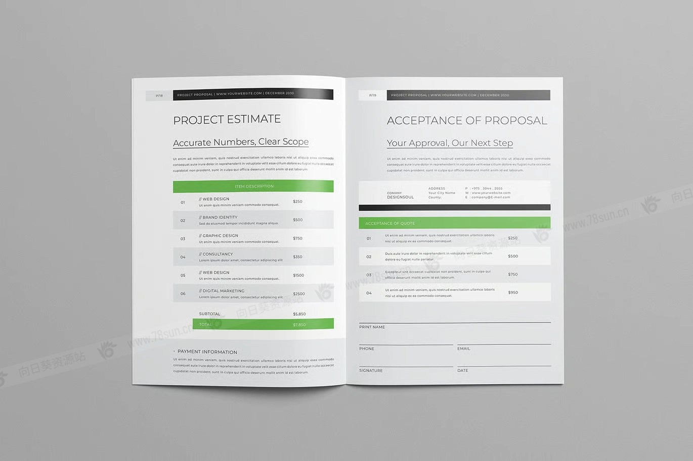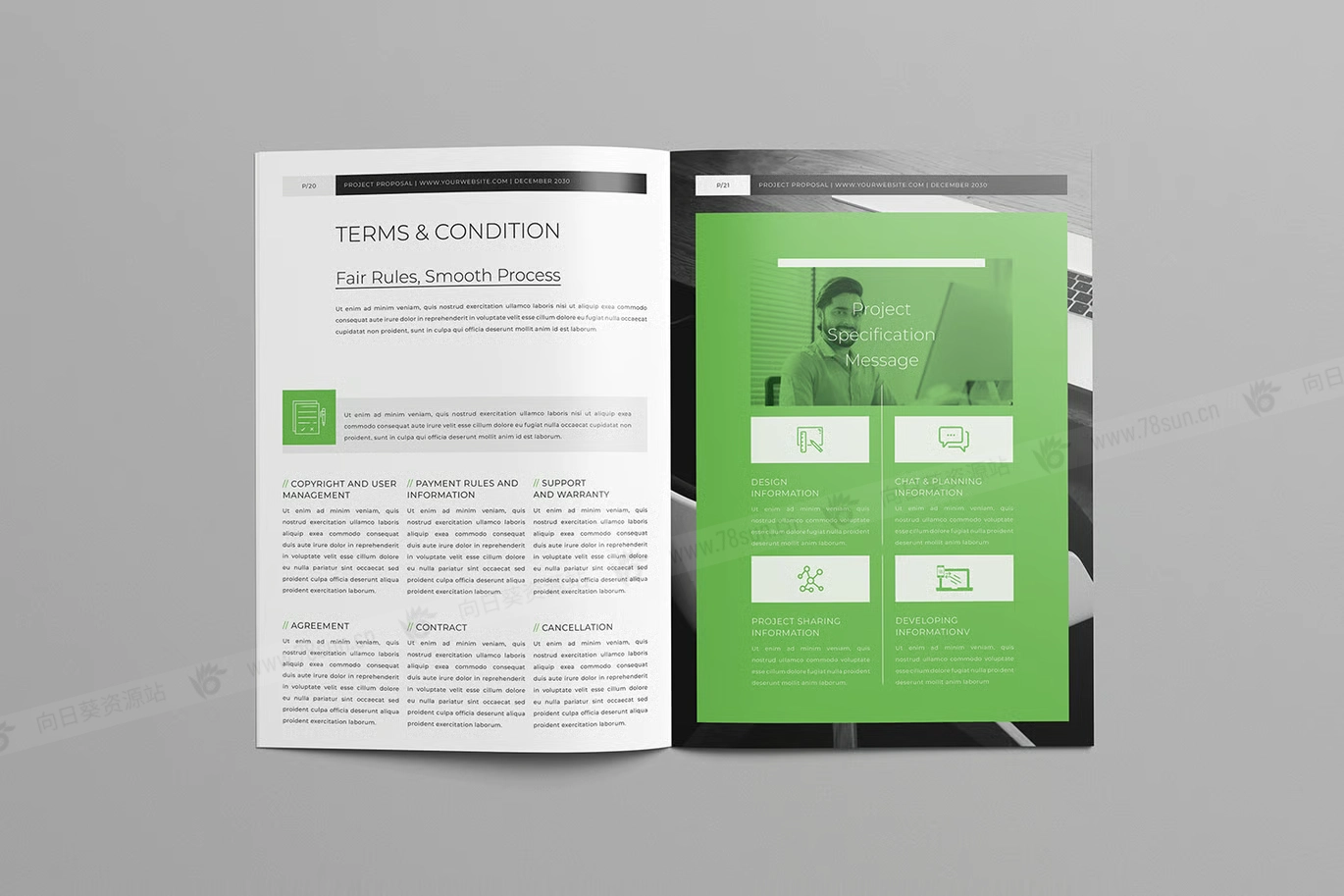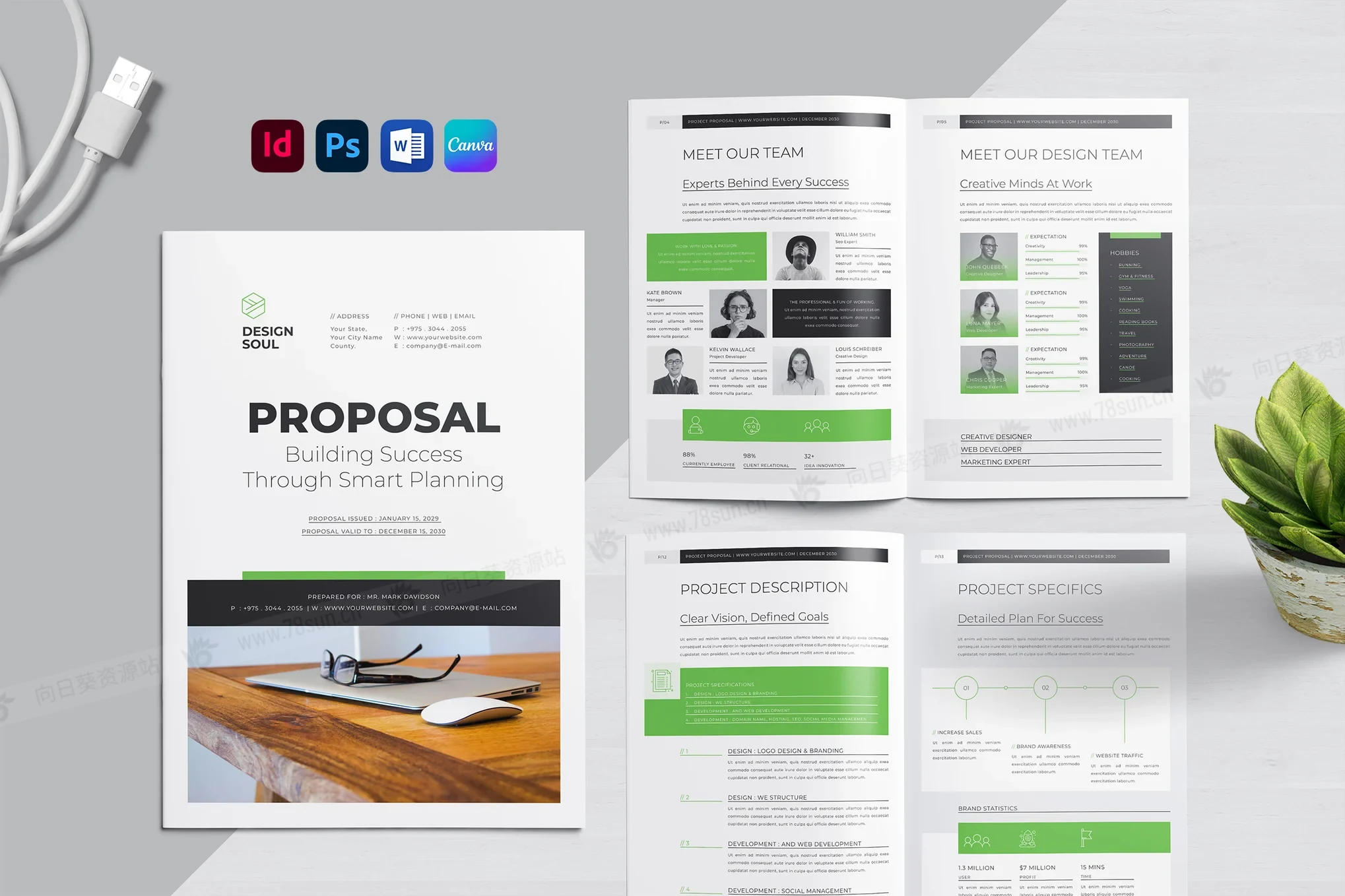 公司简介项目提案小册子杂志宣传册画册psd docx indd设计模板,专业的24页商业提案模板,可在Word、Canva、InDesign和Photoshop中完全自定义,