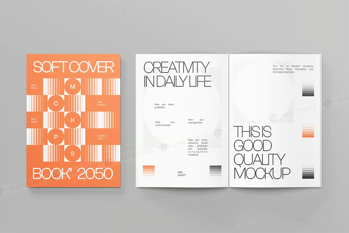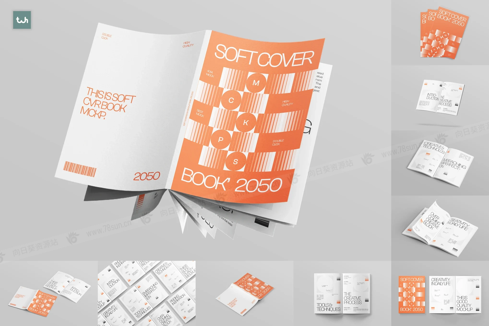 书籍封面封底内页品牌VI效果图展示智能贴图psd设计样机。只需轻点一下,你就能使用这个模板,分层良好,随时可用。