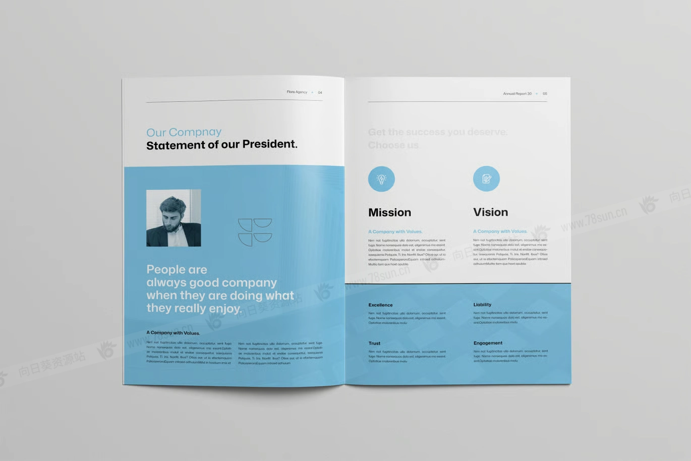 公司简介年度报告小册子杂志宣传册画册indd设计模板告。年度报告旨在向股东及其他相关人员提供有关公司活动和财务表现的信息。