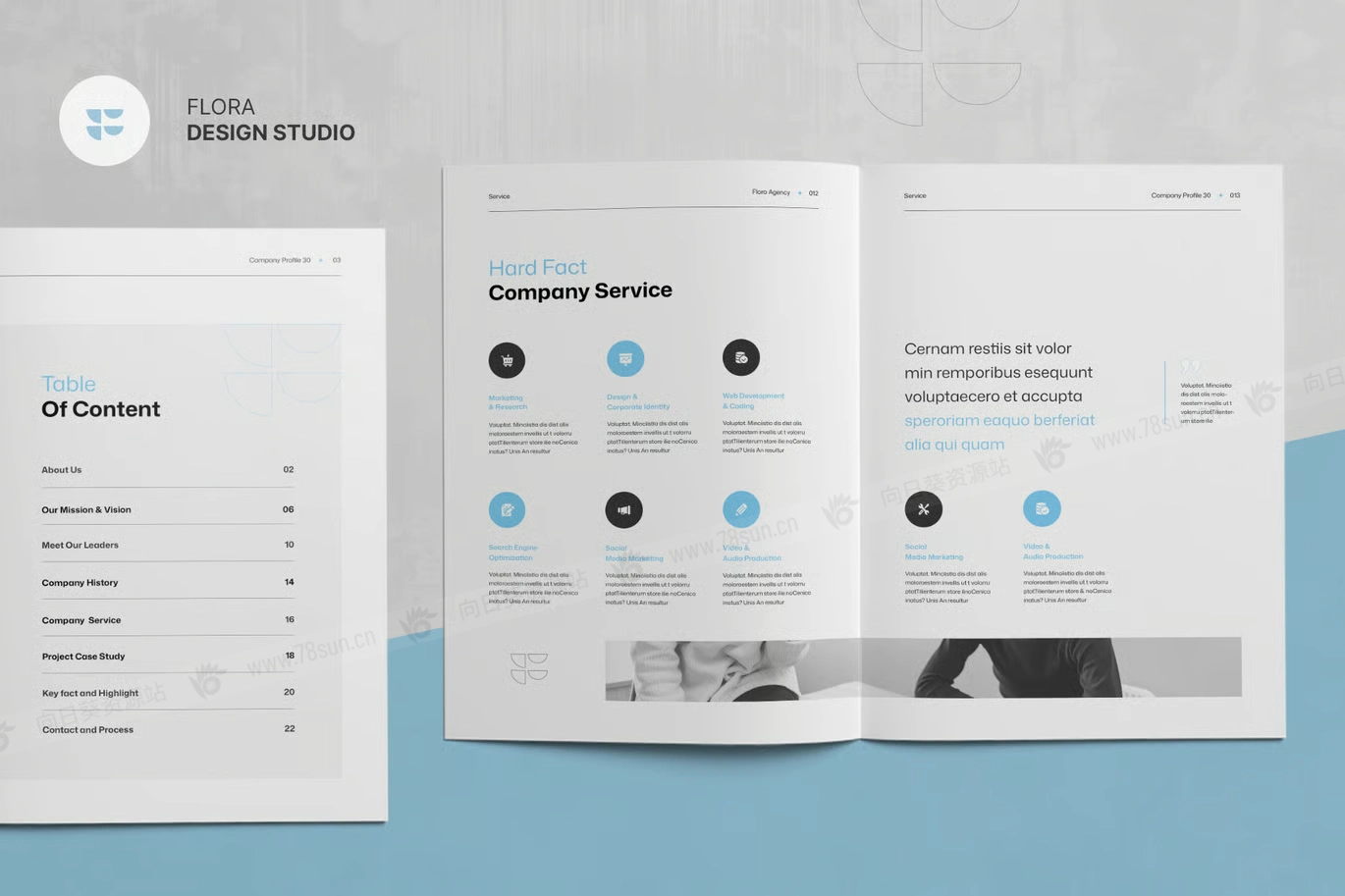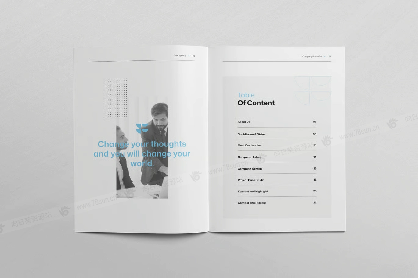 公司简介项目提案小册子杂志宣传册画册indd设计模板。这种布局适用于任何项目用途。非常容易使用和自定义。 颜色完全可编辑,你可以根据需要调整调色板。