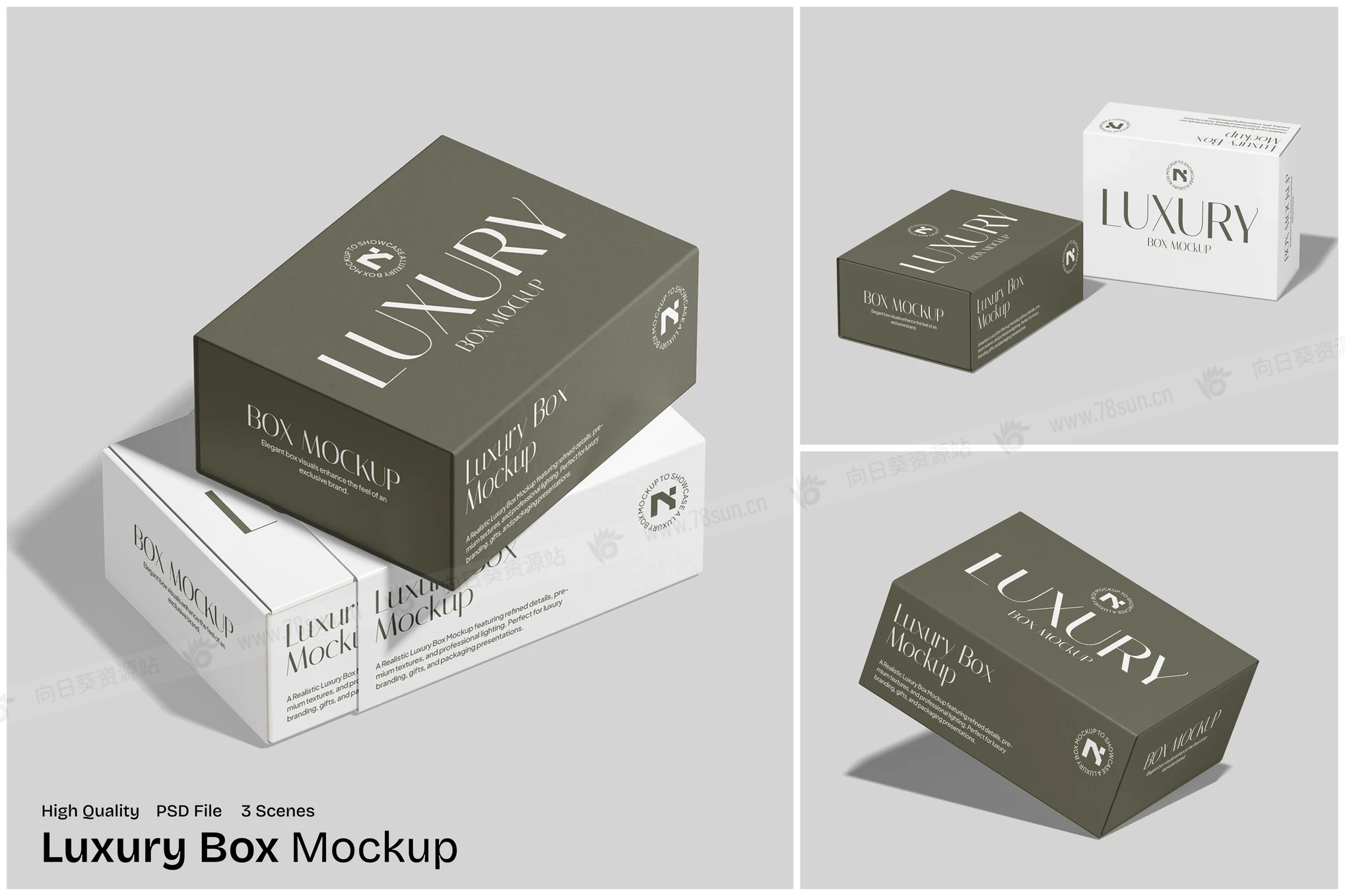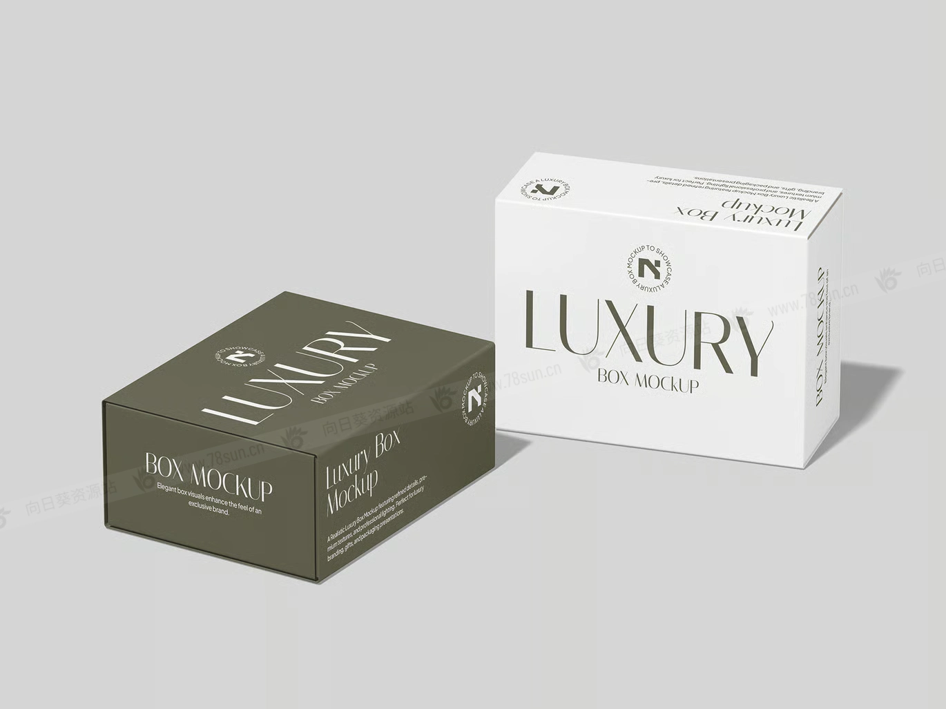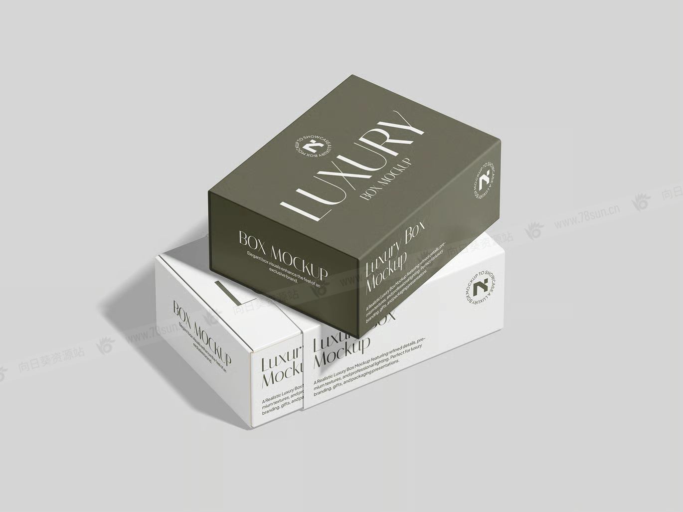 礼品包装纸盒品牌VI效果图展示智能贴图psd设计样机,非常适合化妆品、珠宝、精品产品或高端包装呈现。模型强调干净的结构、精致的光线和高档材质渲染。