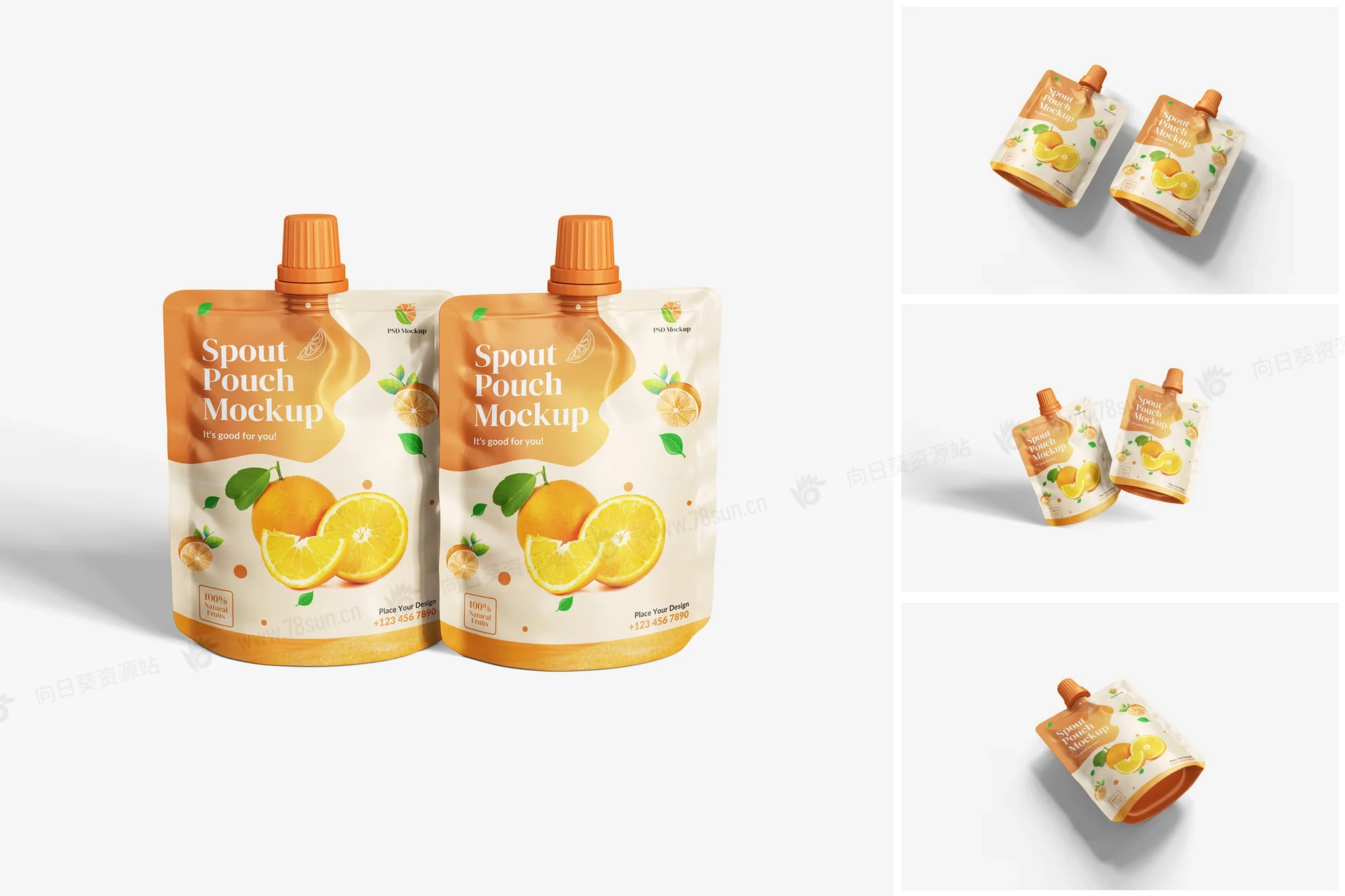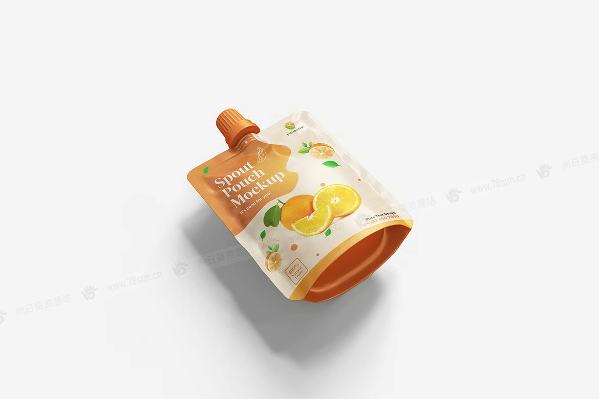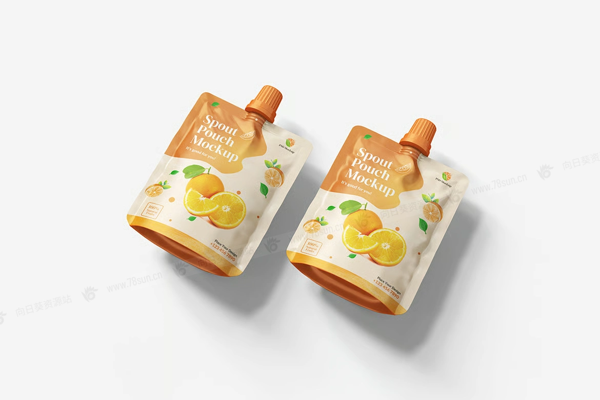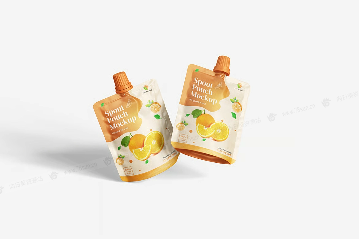食品化妆品吸嘴袋品牌VI效果图展示智能贴图psd设计样机。用智能对象轻松替换你的设计,双击智能图层,复制粘贴你的艺术作品,保存完毕!