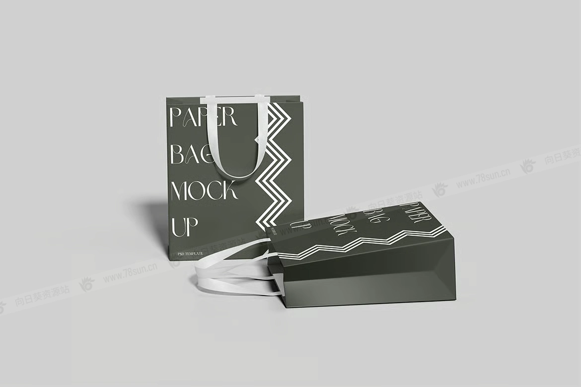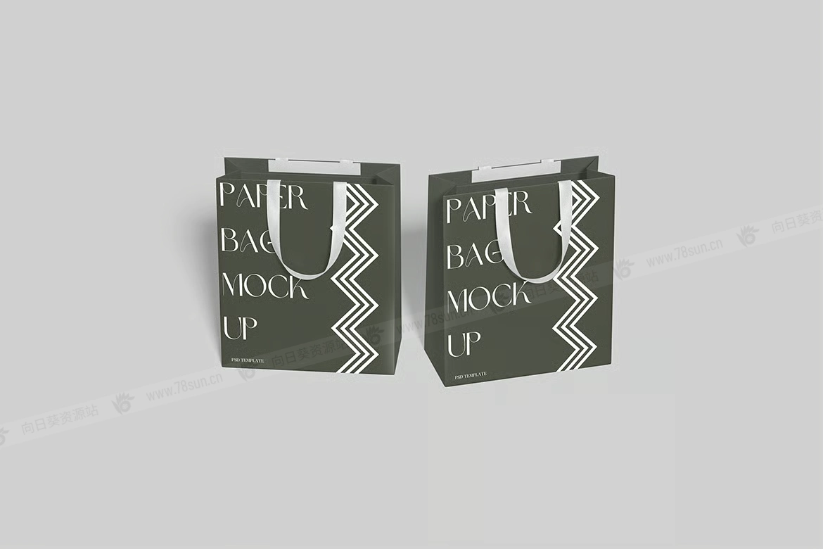 纸质手提袋购物袋品牌VI效果图展示智能贴图psd设计样机。这个模型包含4个带有分层良好的PSD文件,并且还采用了智能对象功能,这意味着你可以在几秒钟内轻松快速地用自己的设计替换当前设计。