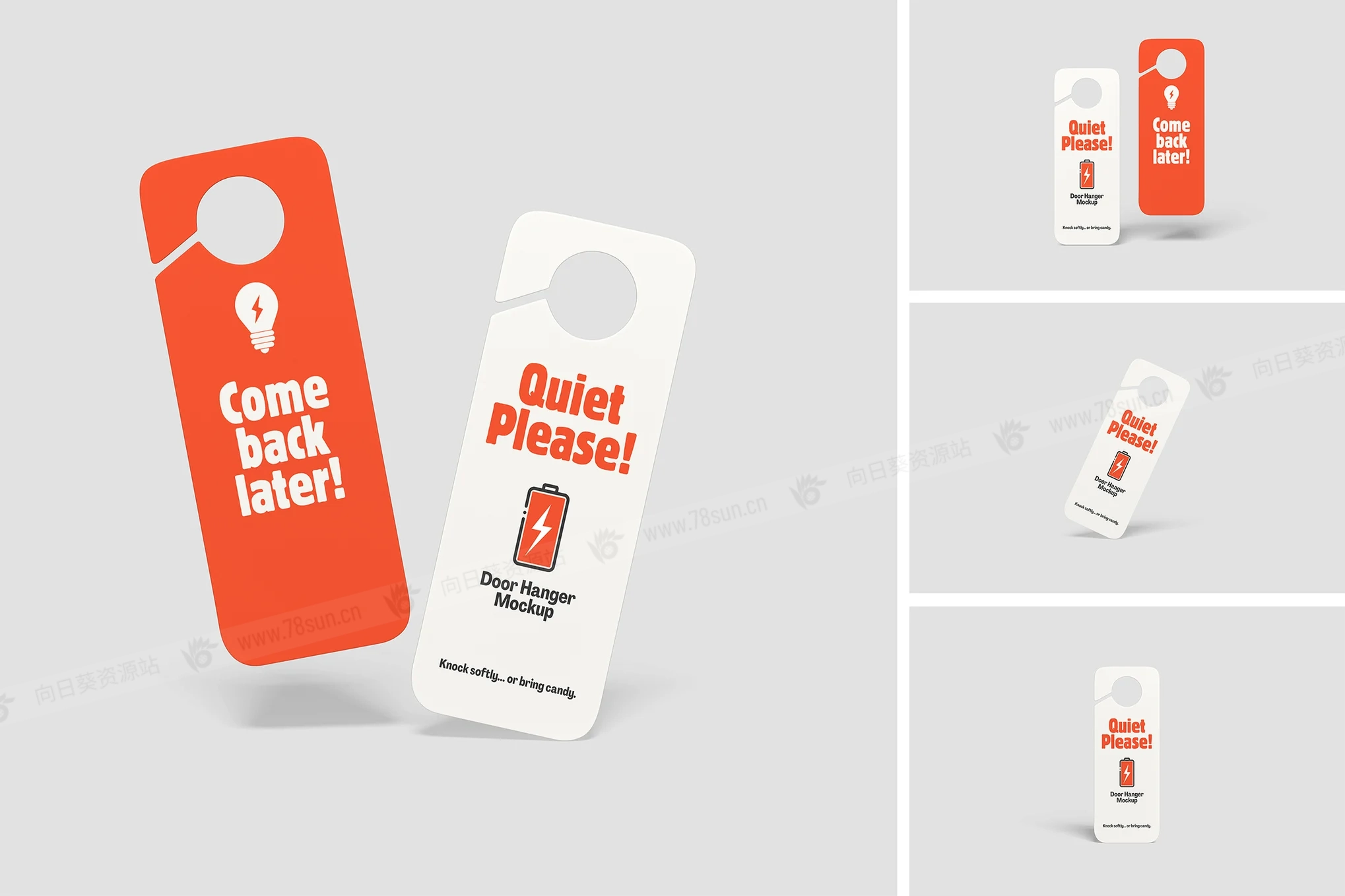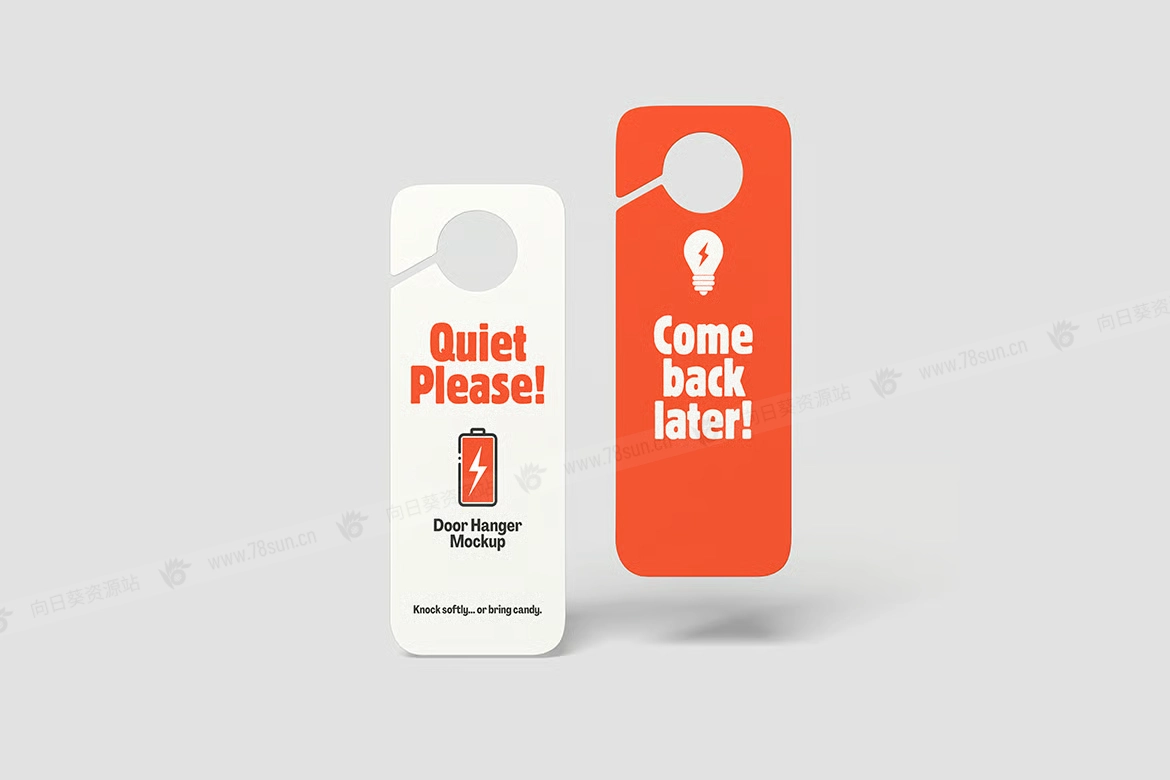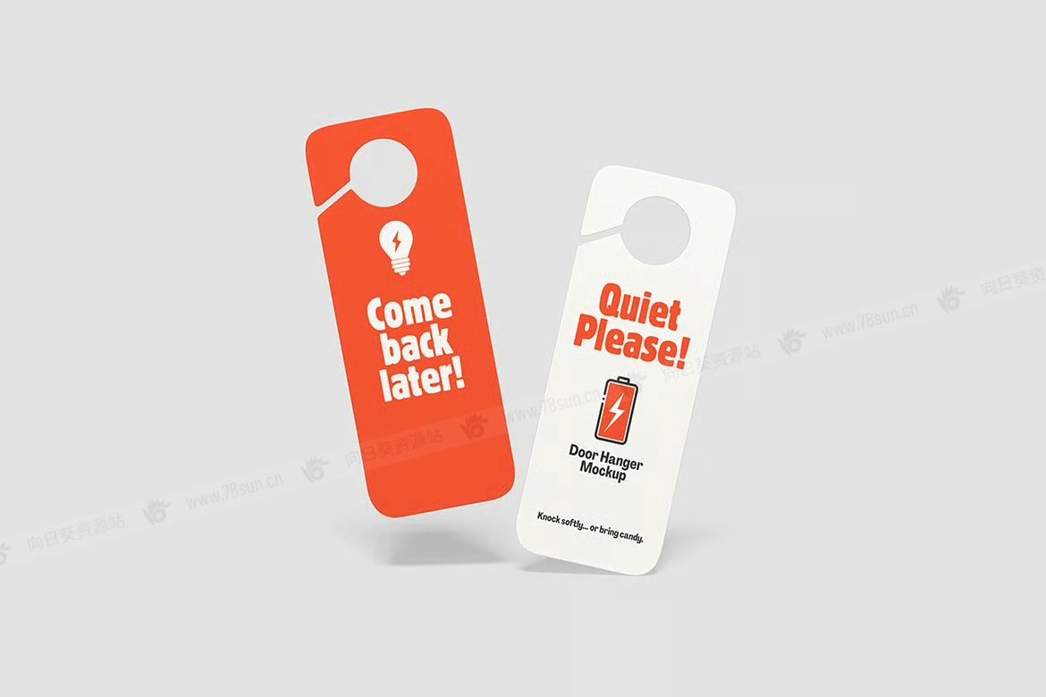 酒店度假村门挂架品牌VI效果图展示智能贴图psd设计样机。这个模型包含4个带有分层良好的PSD文件,并且还采用了智能对象功能,这意味着你可以在几秒钟内轻松快速地用自己的设计替换当前设计。