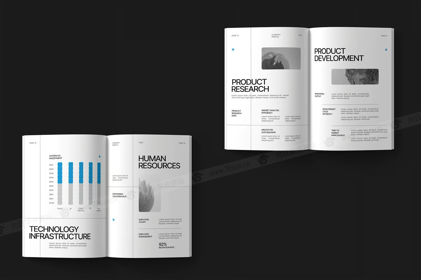 时尚极简主义公司简介小册子杂志宣传册画册indd docx pdf设计模板。所有模板都易于更改,文件结构井然有序,方便你发挥创意,节省大量时间,而且它们兼容多种工具,使用起来更方便。