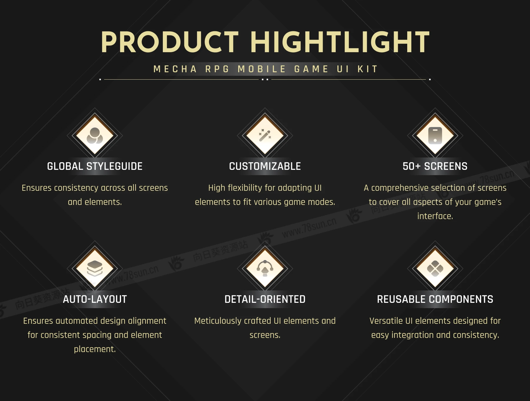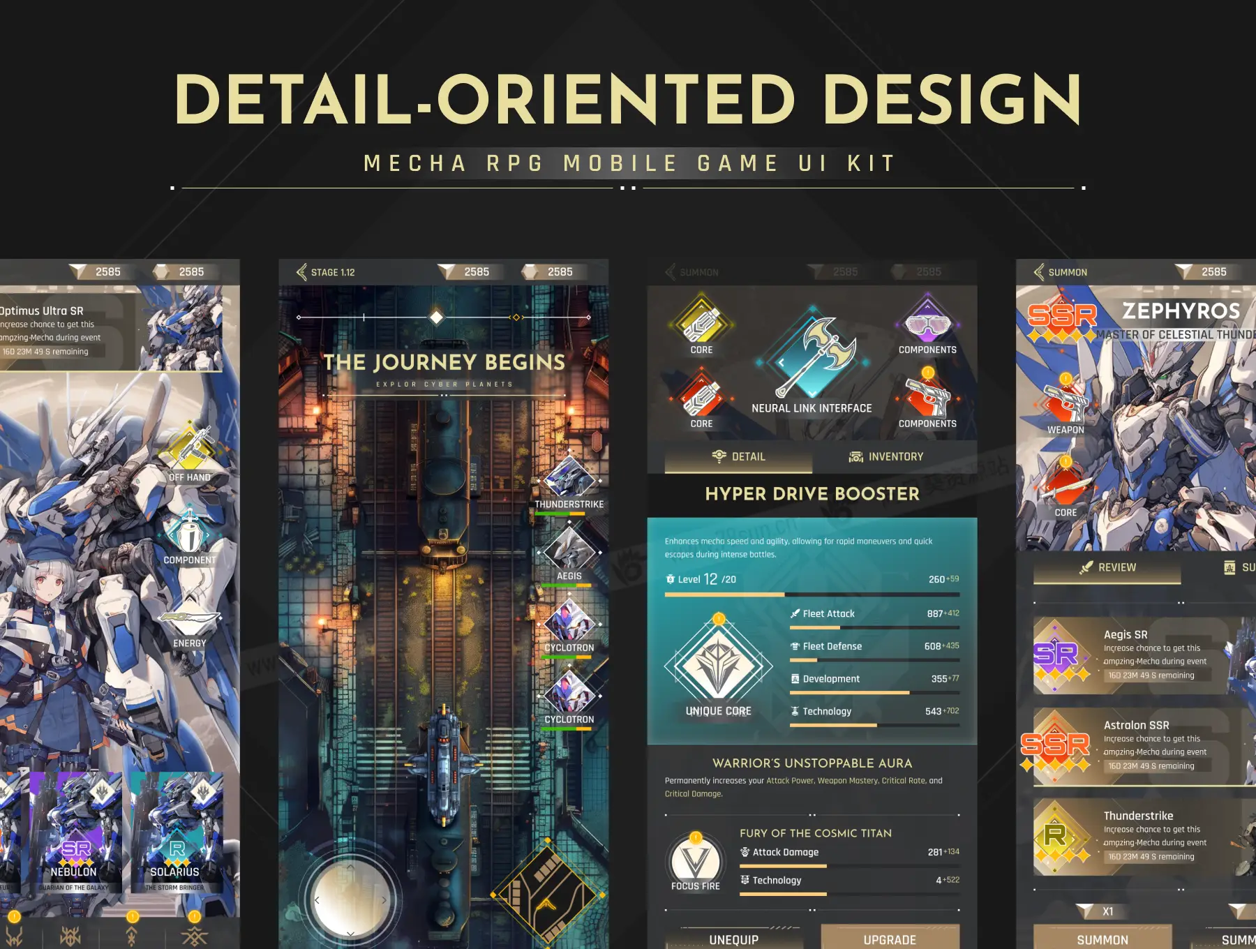 游戏机甲宇宙RPG电子竞技app ui界面设计fig源文件模板:探索宇宙!该套件拥有50多个精心设计的屏幕,提供高度定制和多样模式。它包含一致的风格指南,确保无缝集成,确保每个细节都满足游戏沉浸式体验和功能需求。