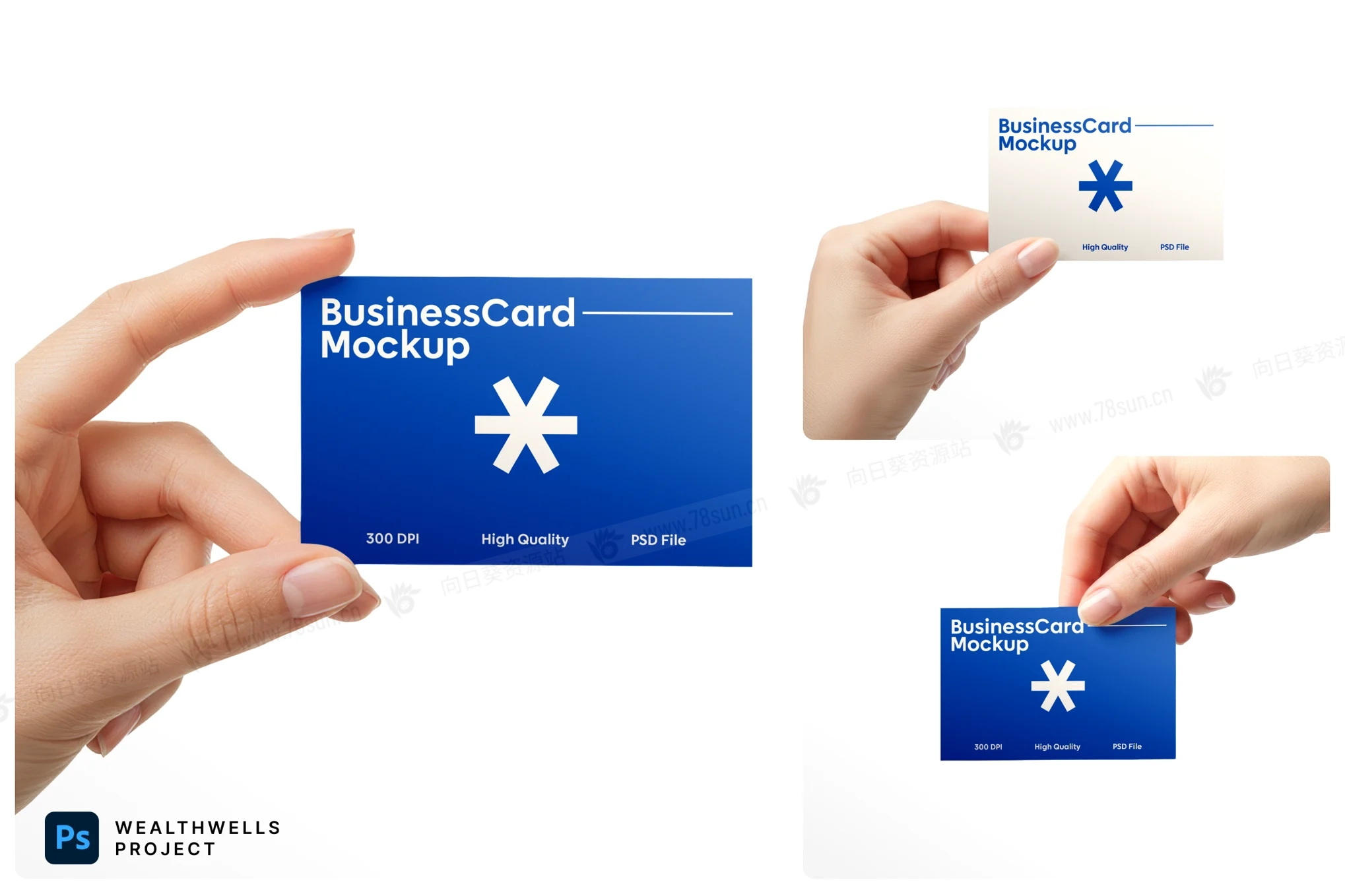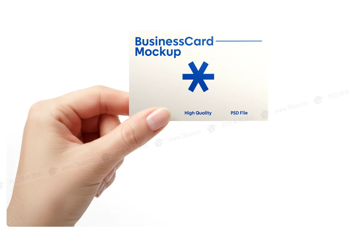 这张PSD采用简洁极简的名片模型,一只手以不同角度握着一张空白名片,背景明亮清晰。提供流畅的灯光、精致的构图和逼真的手部细节。可定制的卡片表面便于放置图形,