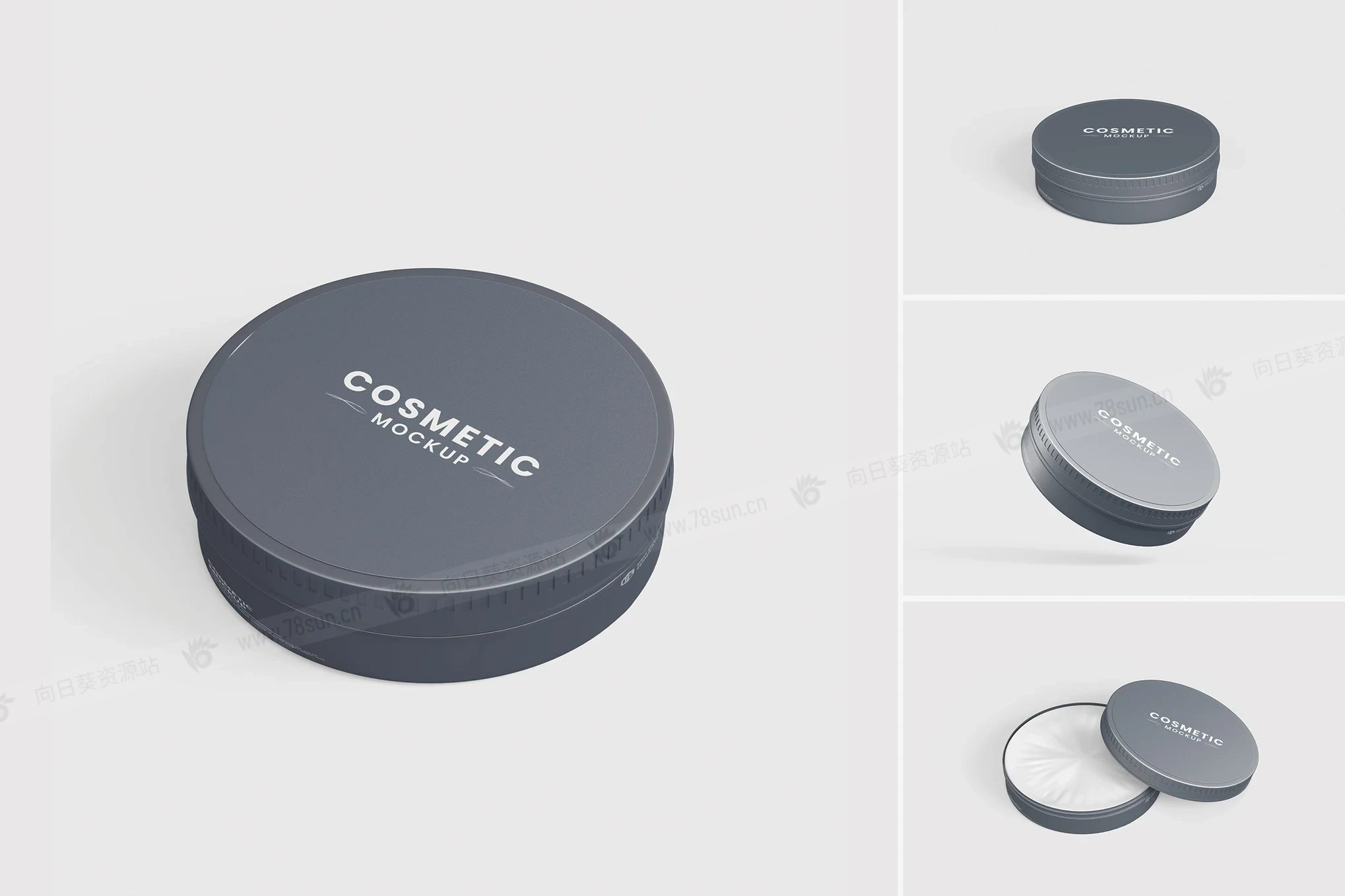 圆形金属锡罐品牌VI效果图展示智能贴图psd设计样机!只需用Photoshop的智能对象一键放置你的设计即可。可以自定义,所以你可以做任何修改。每个元素都是一个层。你可以更改/移除背景,可以更改任何颜色(背景、任何书籍部分……)、调整或移除阴影和反射,任何改动都可以!