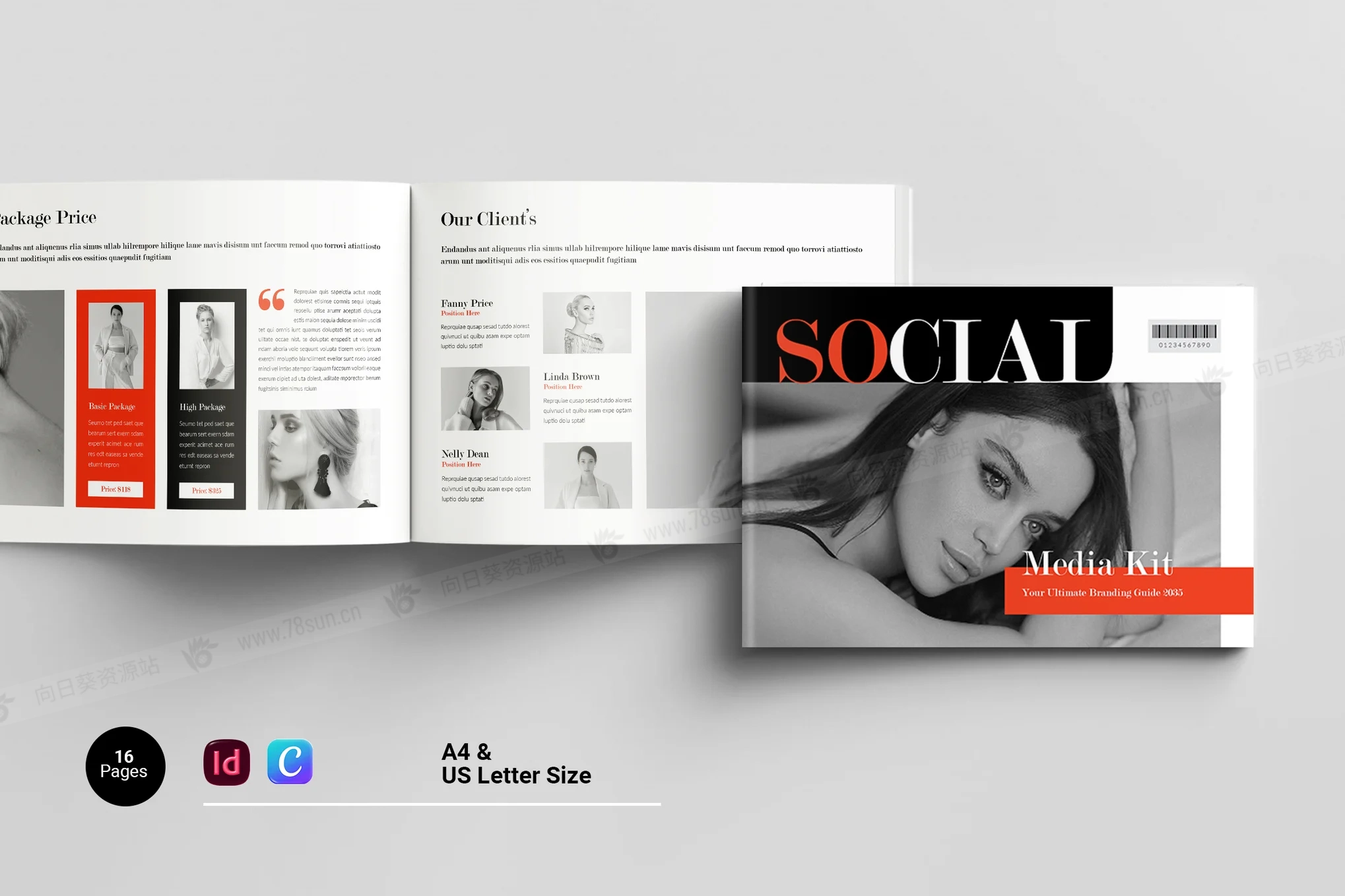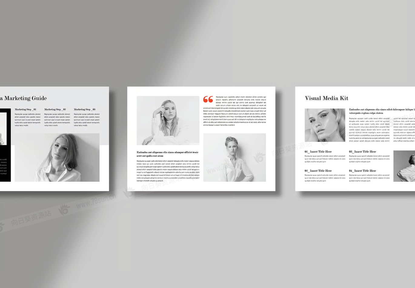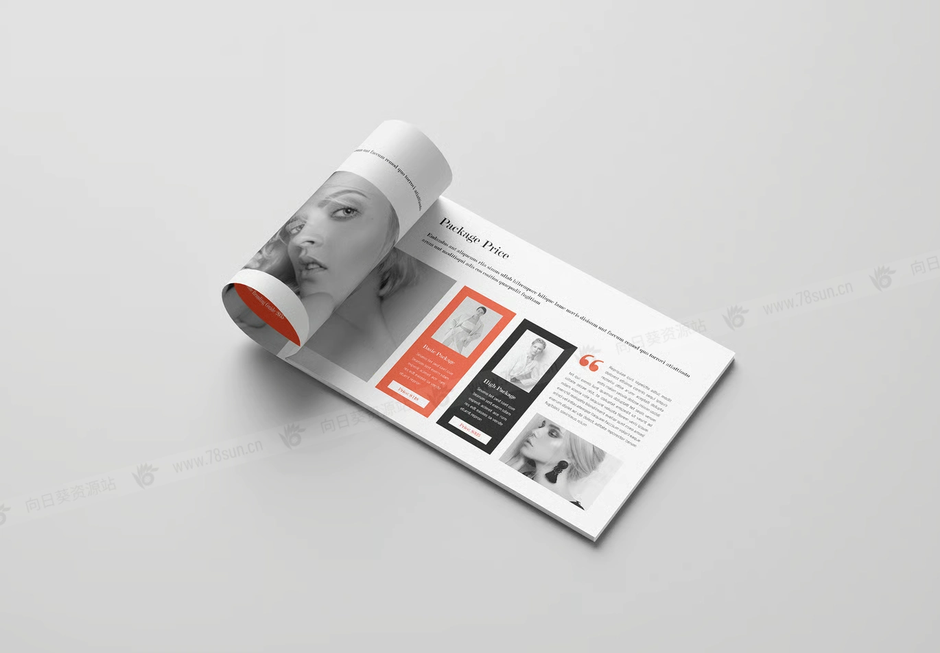 横版时尚小册子杂志宣传册画册indd设计模板。这种布局适合任何项目用途,非常易于使用和定制。自定义模板非常简单,(它有A4和美式字母两种尺寸可选)注重简洁干净的线条和强烈的网格设计。