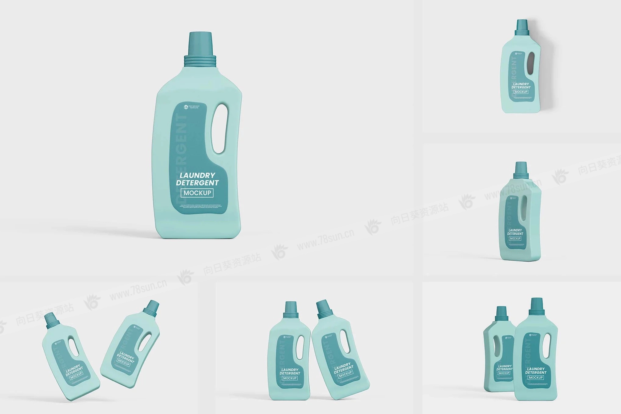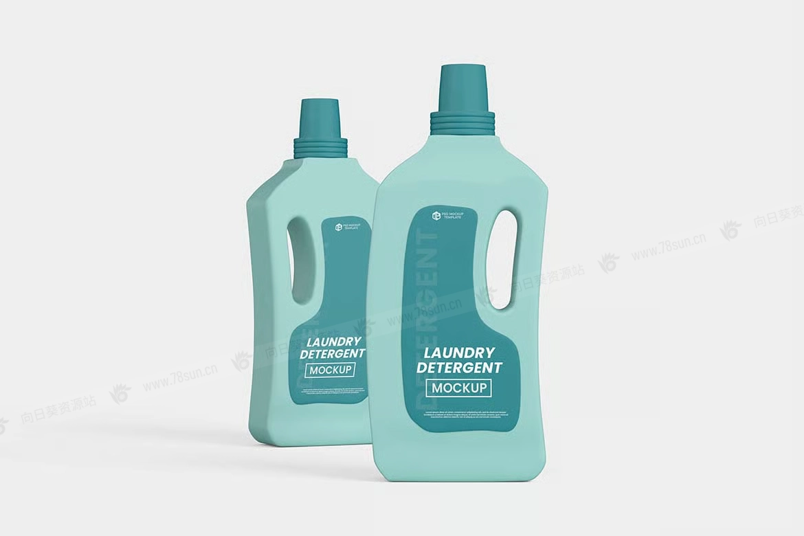 洗衣液塑料瓶品牌VI效果图展示智能贴图psd设计样机!只需用Photoshop的智能对象一键放置你的设计即可。模型是全层叠的,可以自定义,所以你可以做任何修改。每个元素都是一个层。你可以更改/移除背景,可以更改任何颜色(背景、任何书籍部分……)、调整或移除阴影和反射,任何改动都可以!