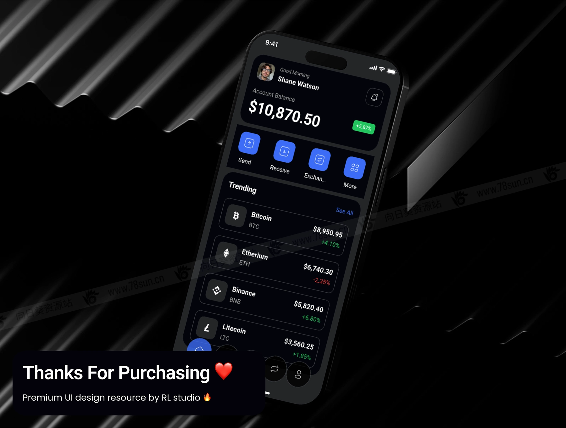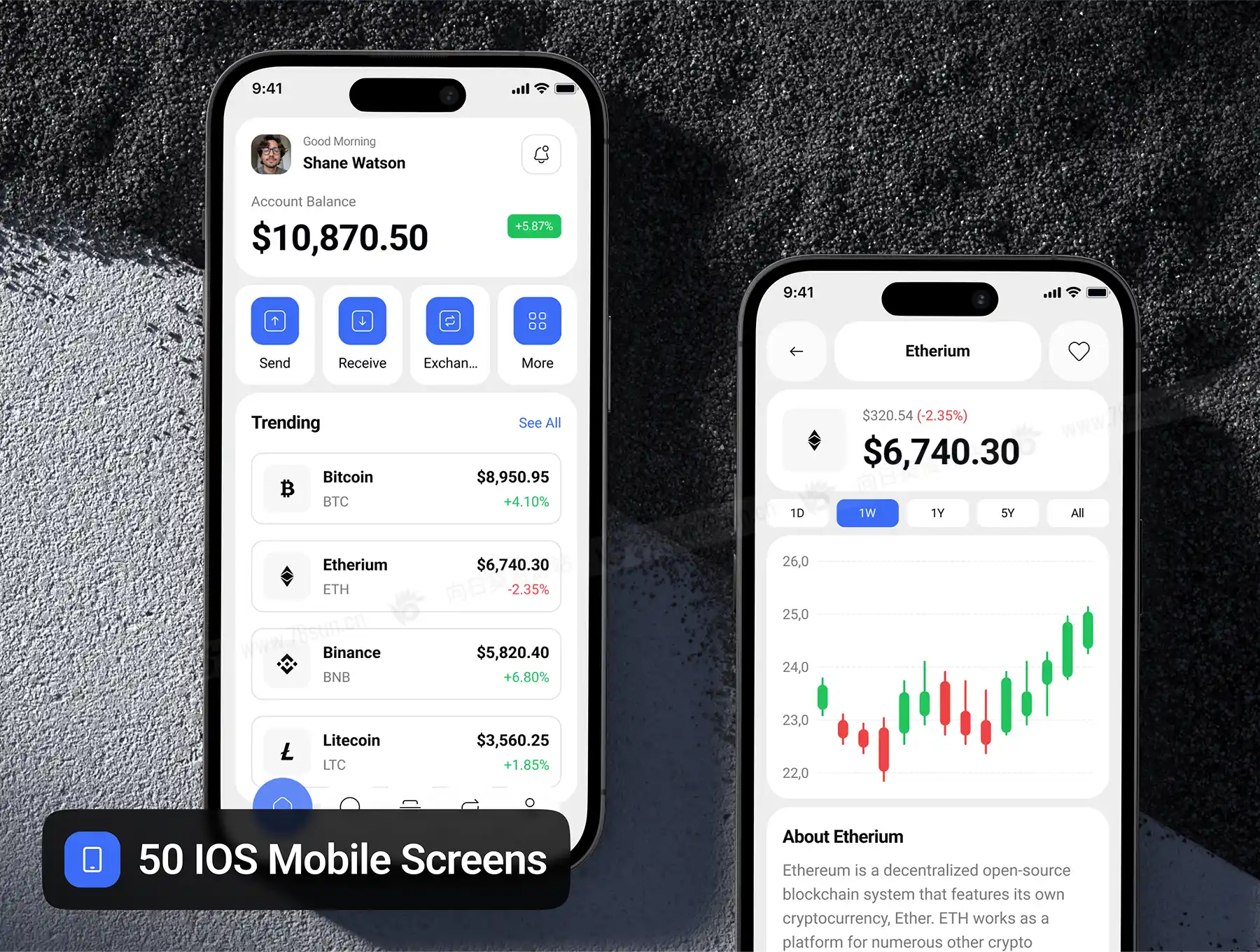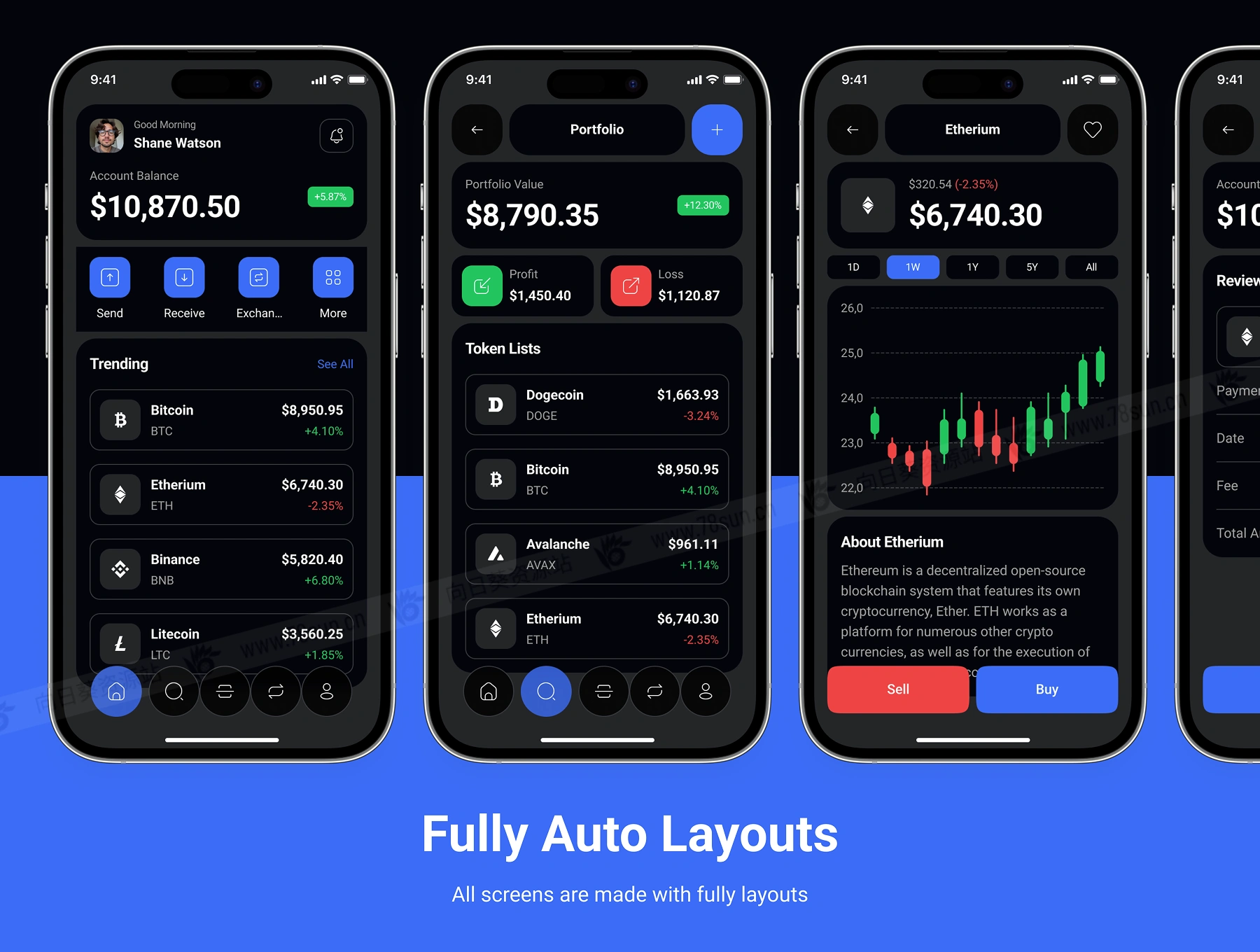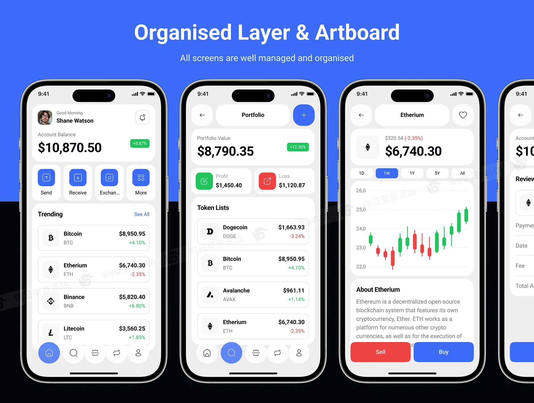 暗亮色金融加密货币钱包管理app ui界面设计fig源文件模板,拥有50个高质量屏幕,支持明暗模式,专为无缝加密交易、投资组合跟踪和安全钱包管理而设计。