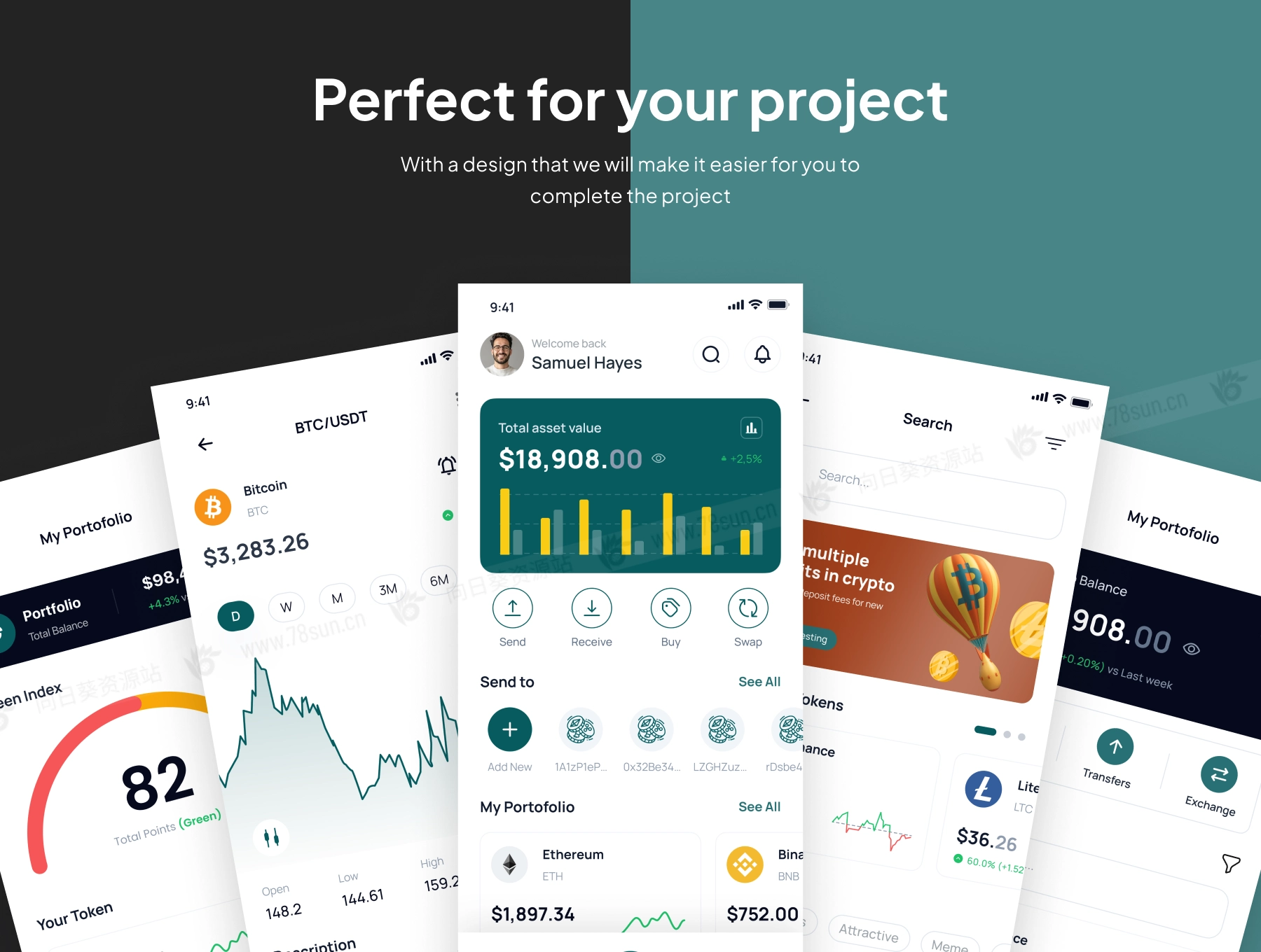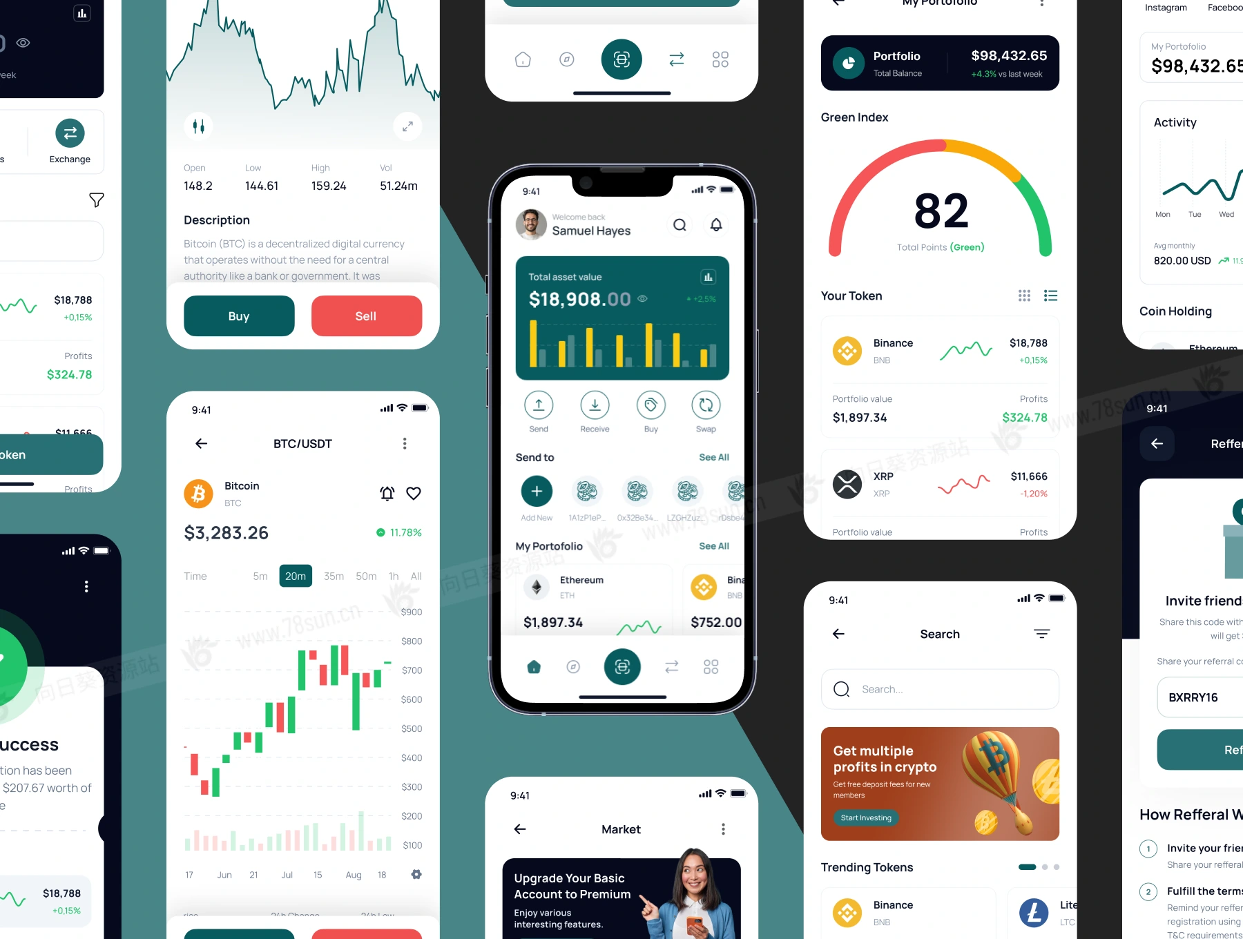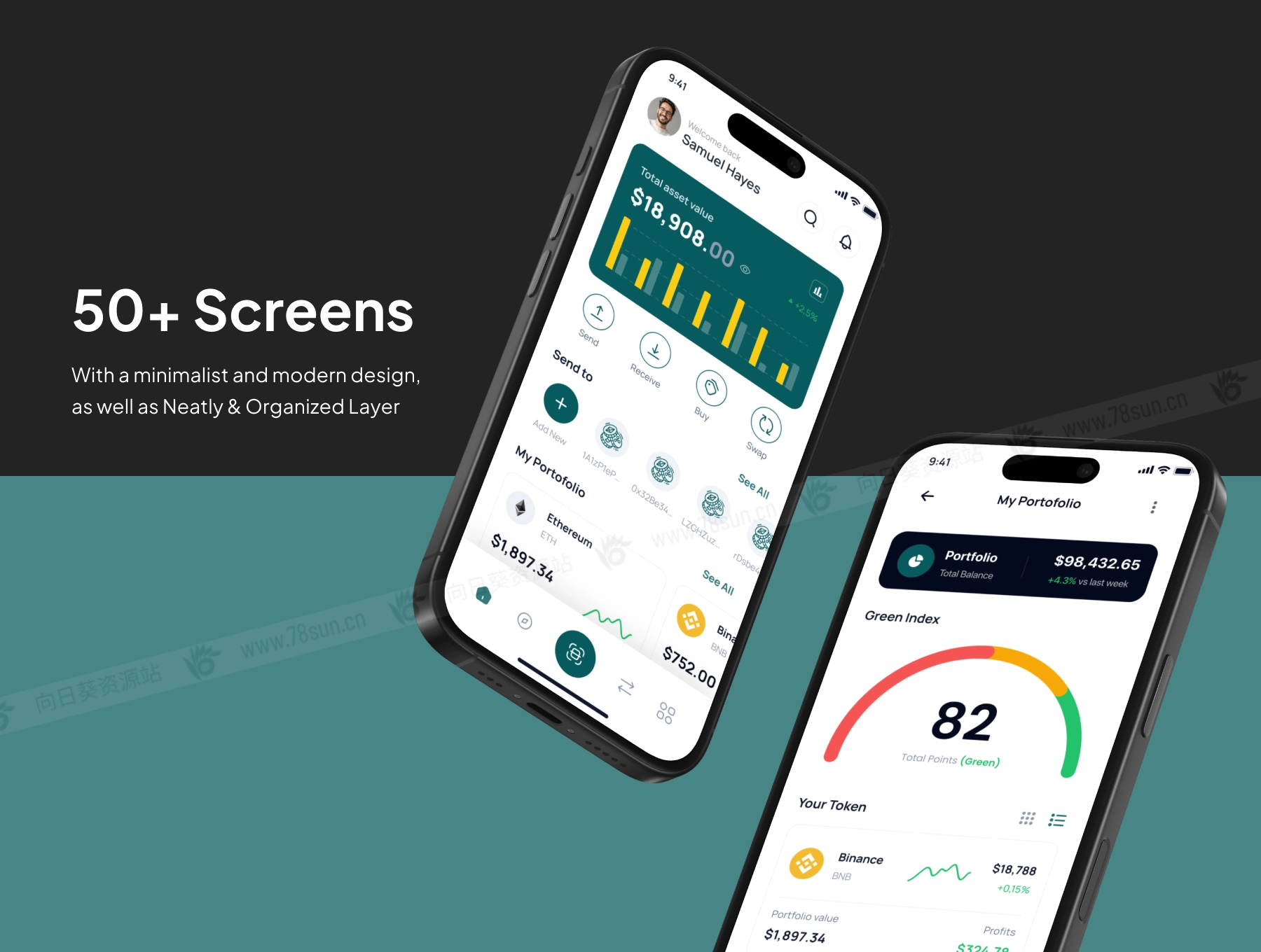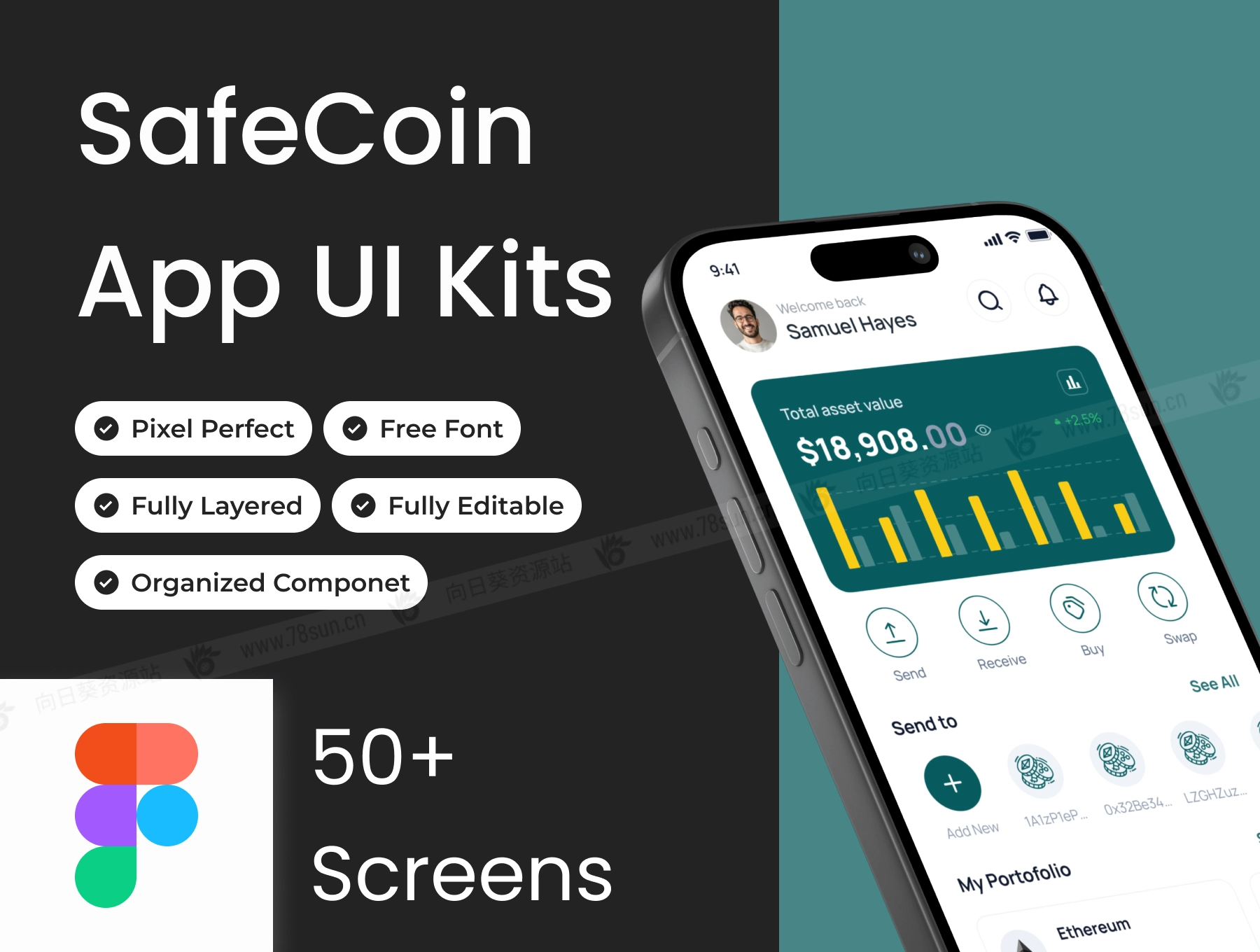 金融加密货币电子钱包管理app ui界面设计fig源文件模板,配备50+屏幕。还配备了每个组的分组和命名功能,方便你编辑。