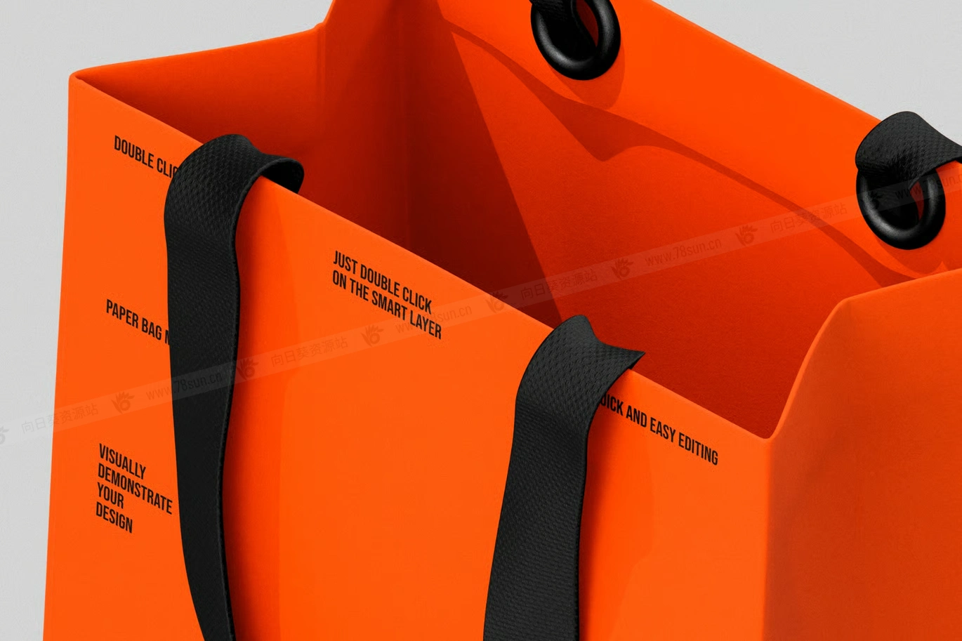 纸质手提袋购物袋品牌VI效果图展示智能贴图psd设计样机——分层、可编辑的.psd文件,通过编辑智能对象和颜色图层展示您的定制设计。