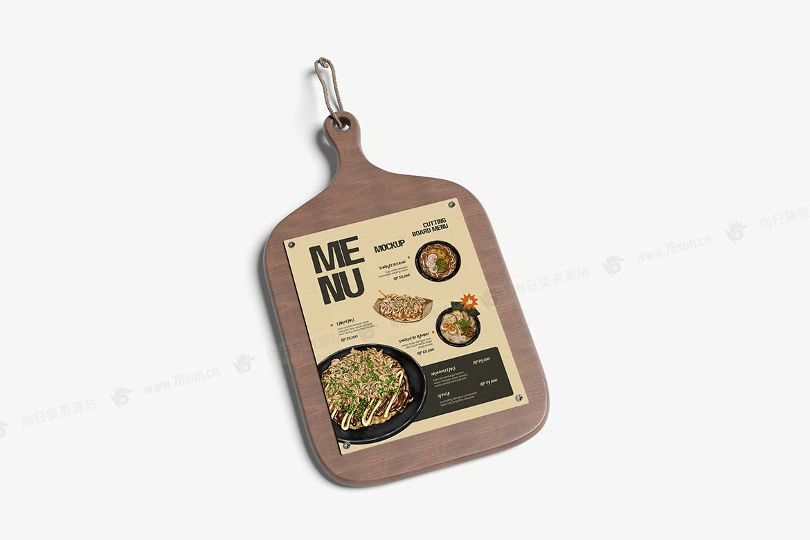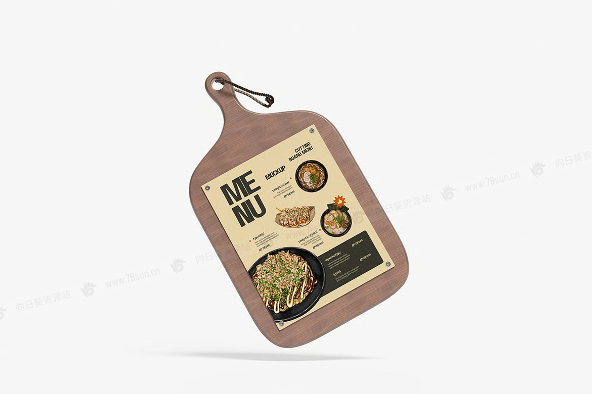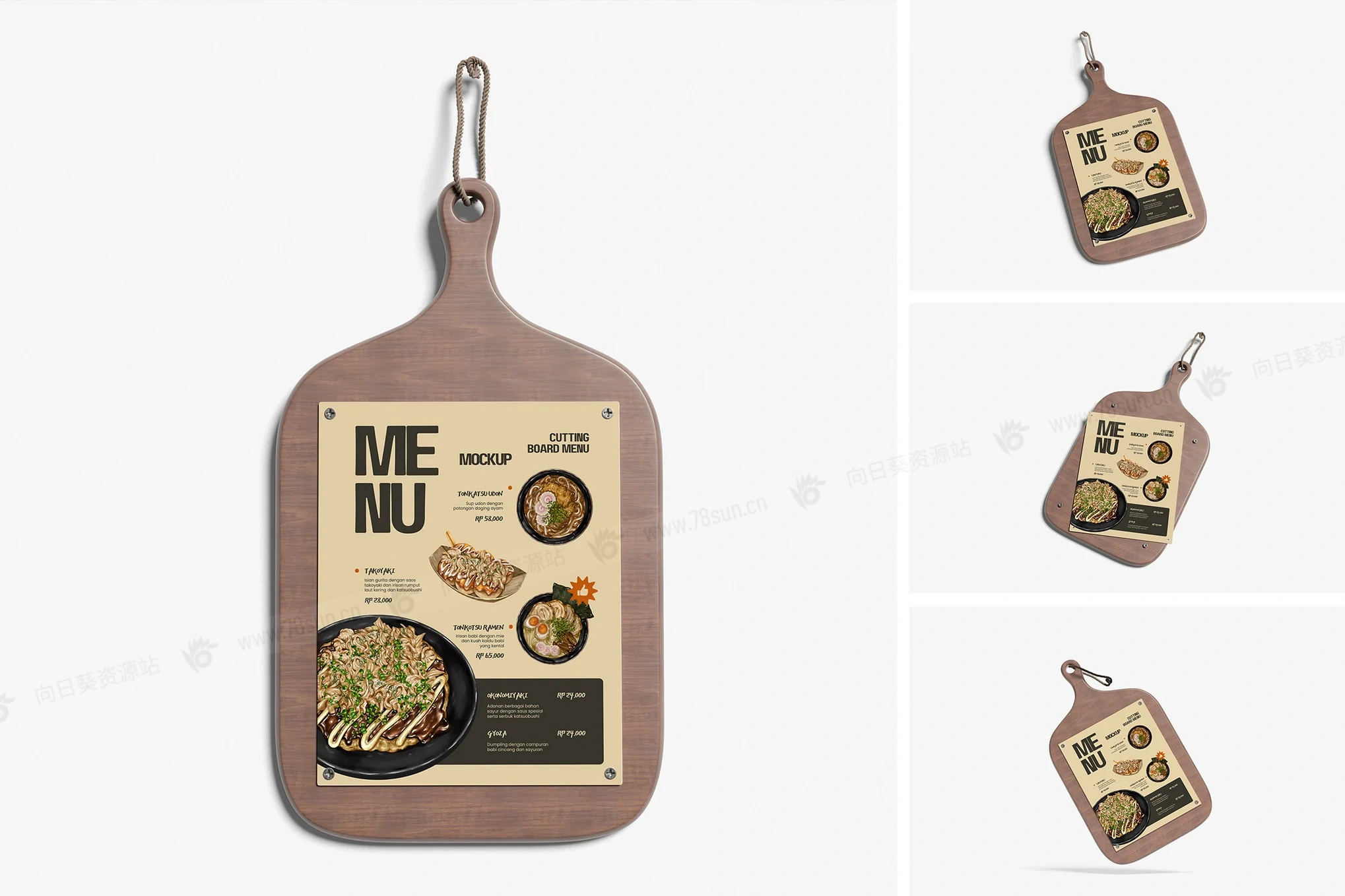 砧板品牌VI效果图展示智能贴图psd设计样机。这个模型包含4个带有分层良好的PSD文件,并且还采用了智能对象功能,这意味着你可以在几秒钟内轻松快速地用自己的设计替换当前设计。