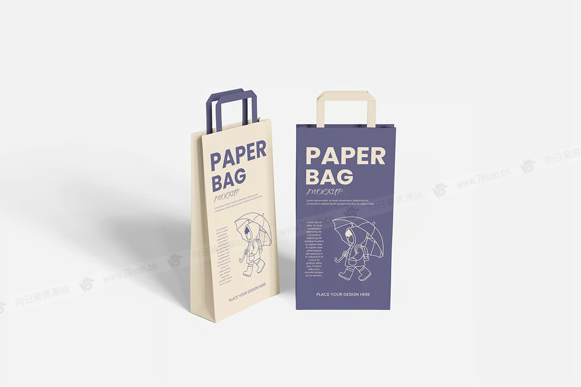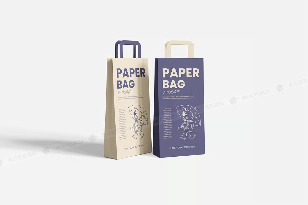 纸质手提袋品牌VI效果图展示智能贴图psd设计样机。你可以用智能物体功能轻松快速地替换设计。提供PSD Photoshop格式,并具备智能对象功能,帮助你在几秒钟内用自己的设计替换现有设计。