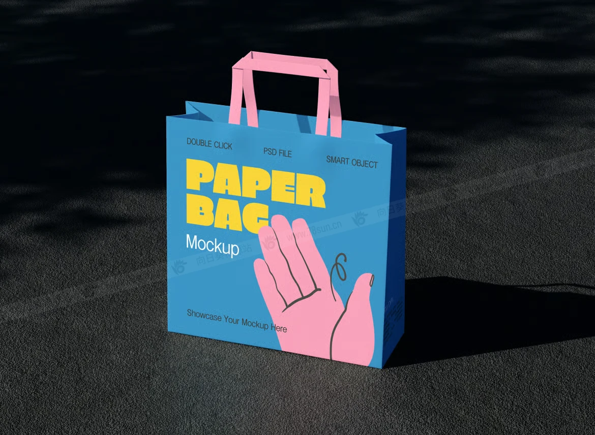 纸质手提袋购物袋品牌VI效果图展示智能贴图psd设计样机。通过智能对象图层和完全可编辑的元素,