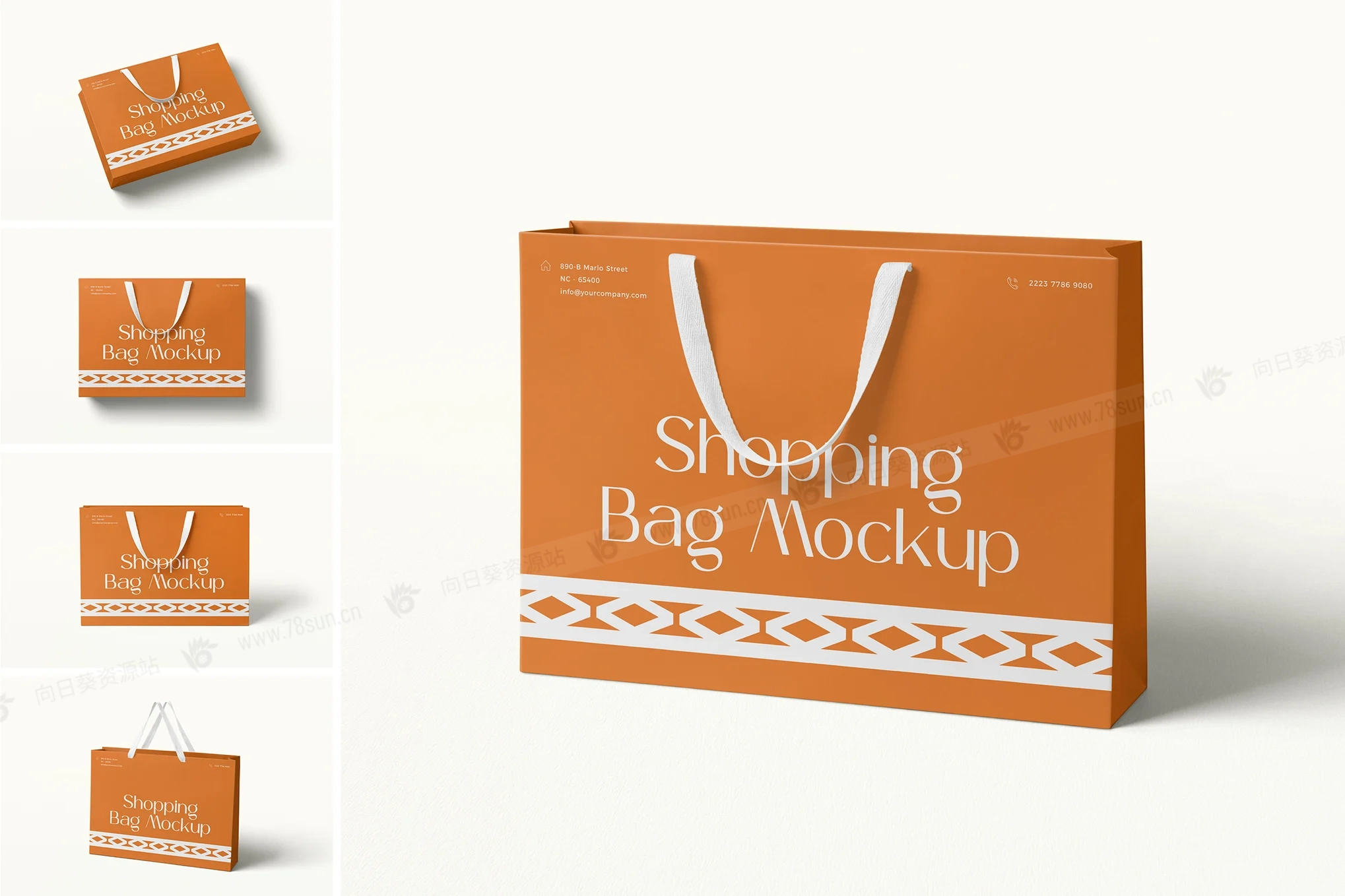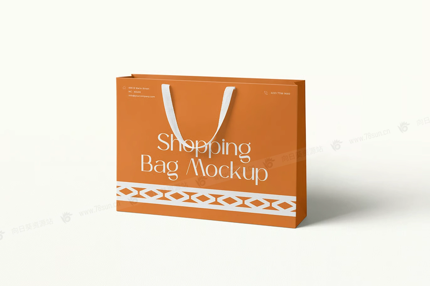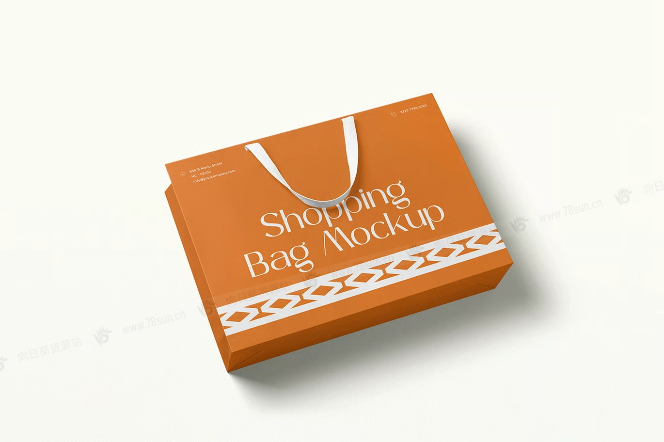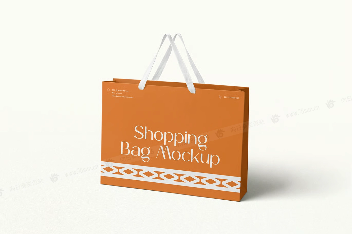 纸质手提袋购物袋品牌VI效果图展示智能贴图psd设计样机。这款纸质购物袋模型拥有逼真的纹理、阴影和可编辑图层,方便轻松定制。