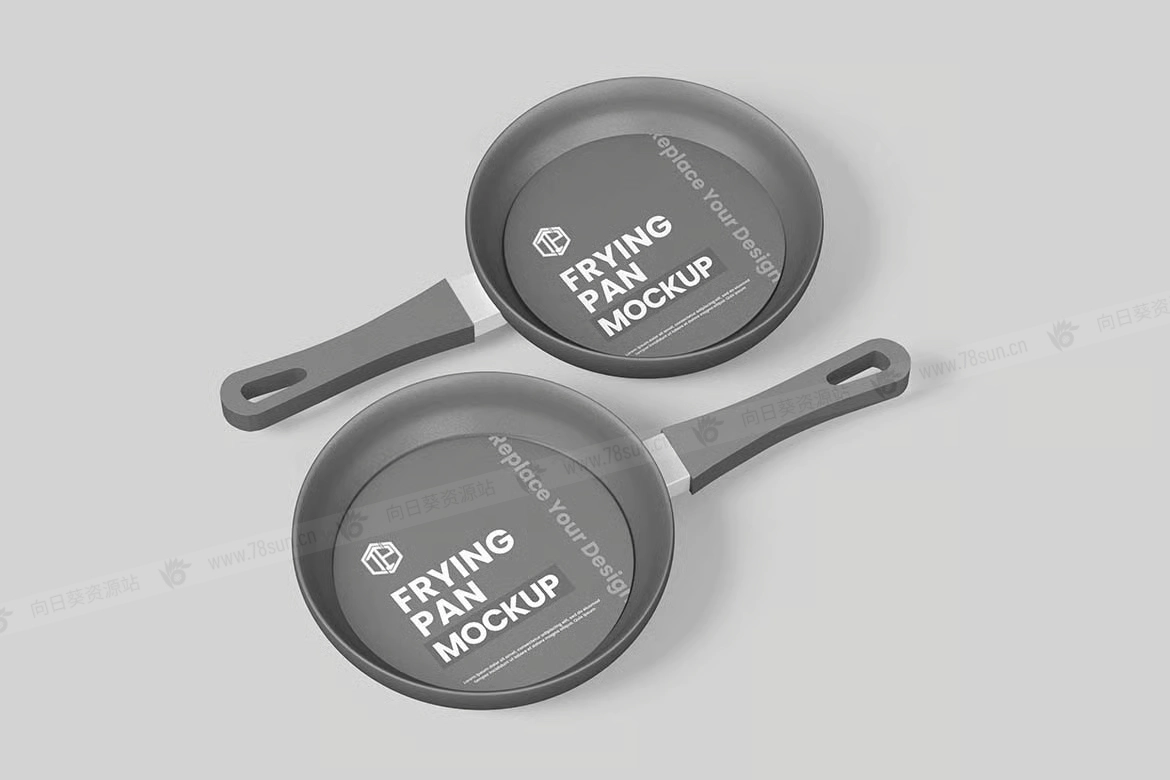 煎锅平底锅子品牌VI效果图展示智能贴图psd设计样机!只需用Photoshop的智能对象一键放置你的设计即可。模型是全层叠的,可以自定义,所以你可以做任何修改。每个元素都是一个层。你可以更改/移除背景,可以更改任何颜色(背景、任何书籍部分……)、调整或移除阴影和反射,任何改动都可以!