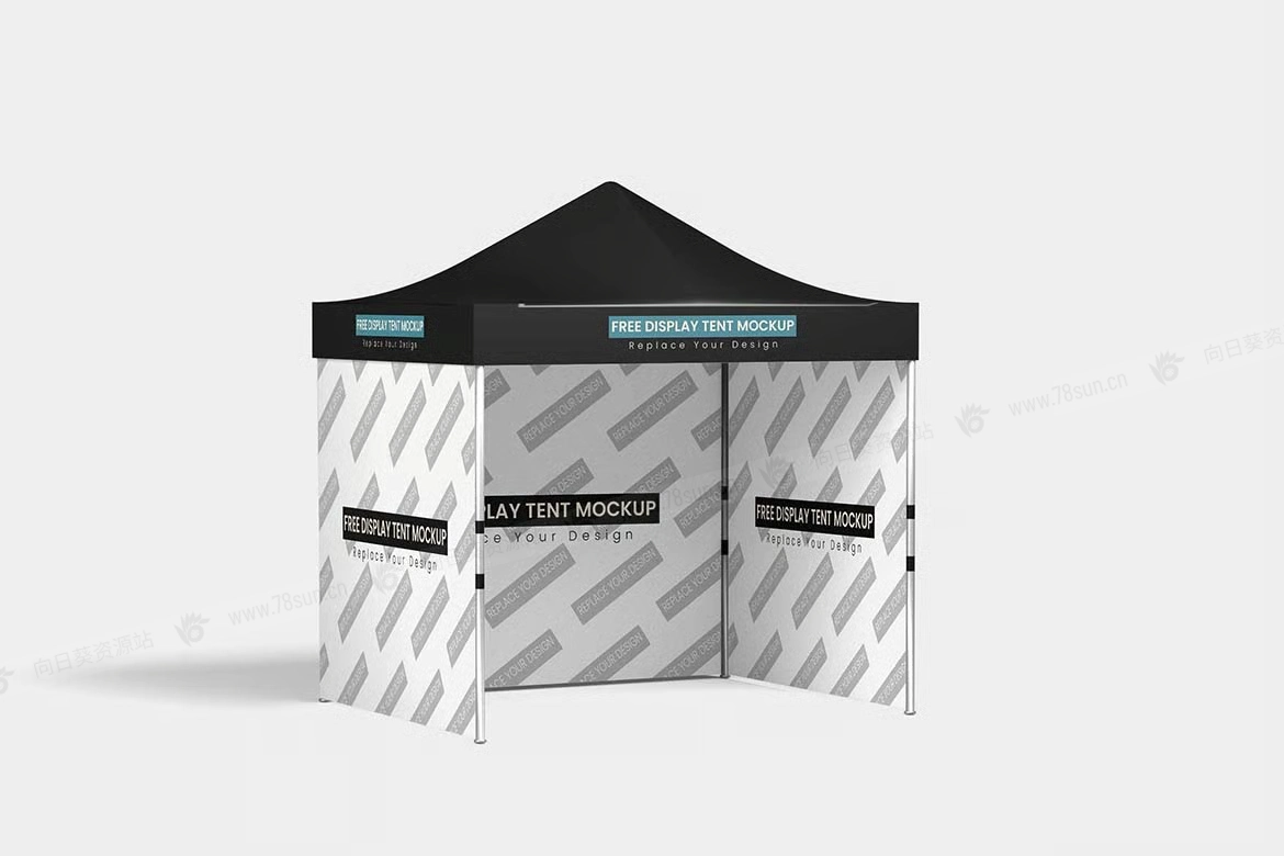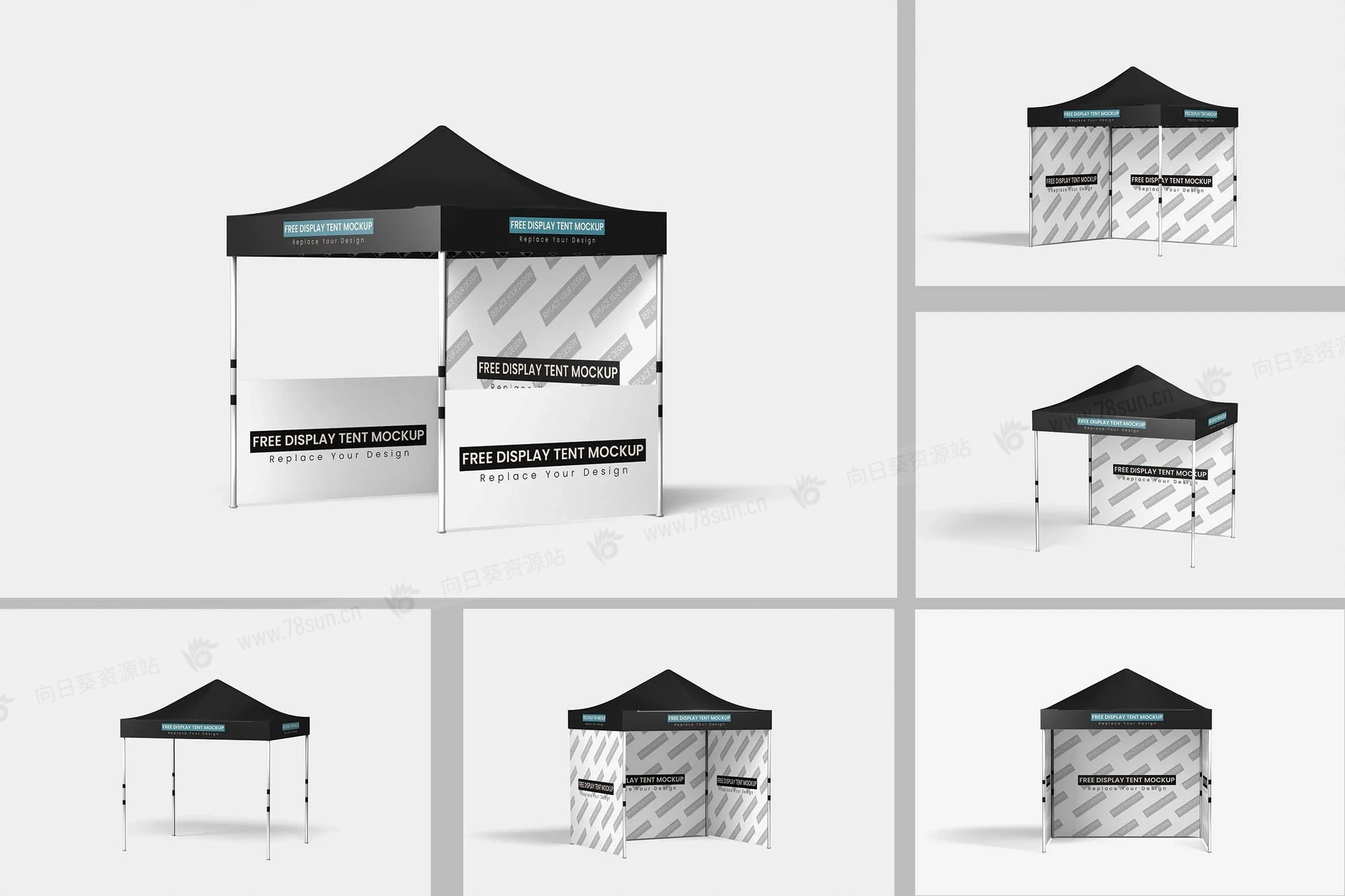 天篷帐篷品牌VI效果图展示智能贴图psd设计样机!只需用Photoshop的智能对象一键放置你的设计即可。模型是全层叠的,可以自定义,所以你可以做任何修改。每个元素都是一个层。你可以更改/移除背景,可以更改任何颜色(背景、任何书籍部分……)、调整或移除阴影和反射,任何改动都可以!