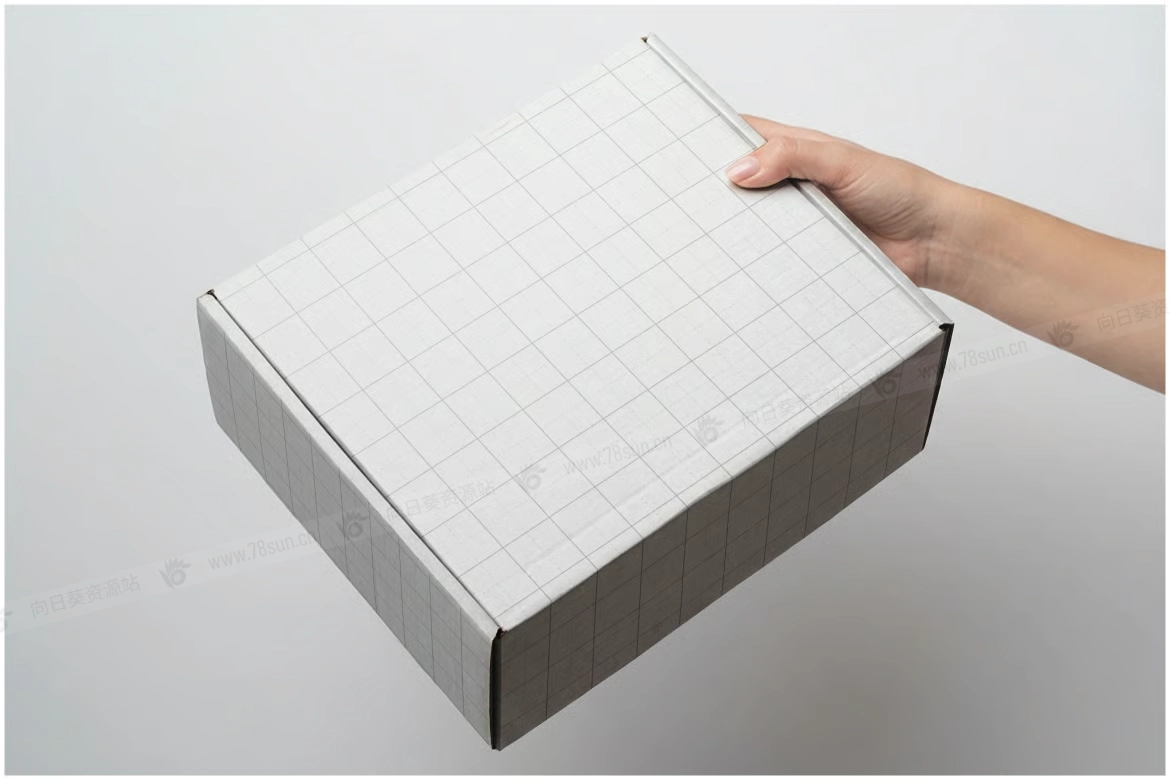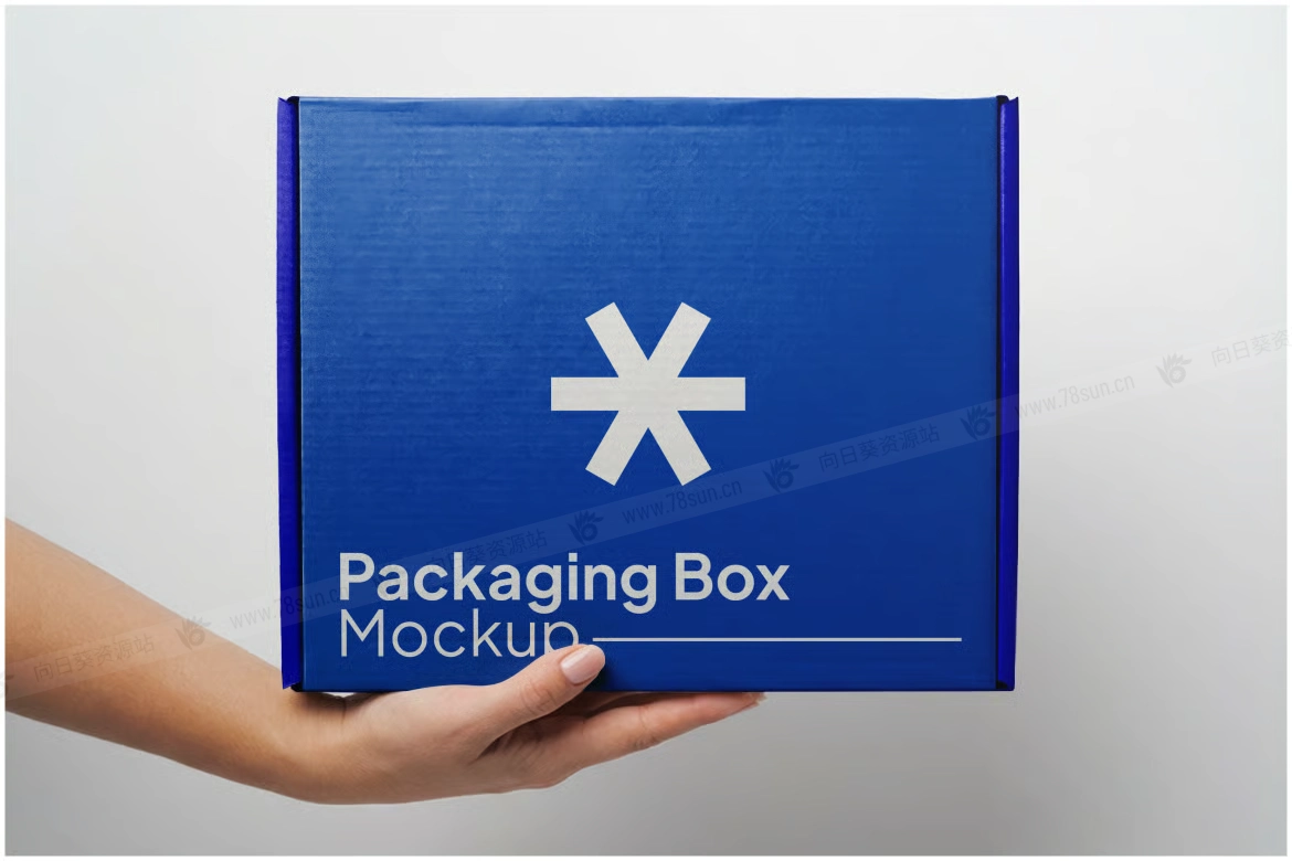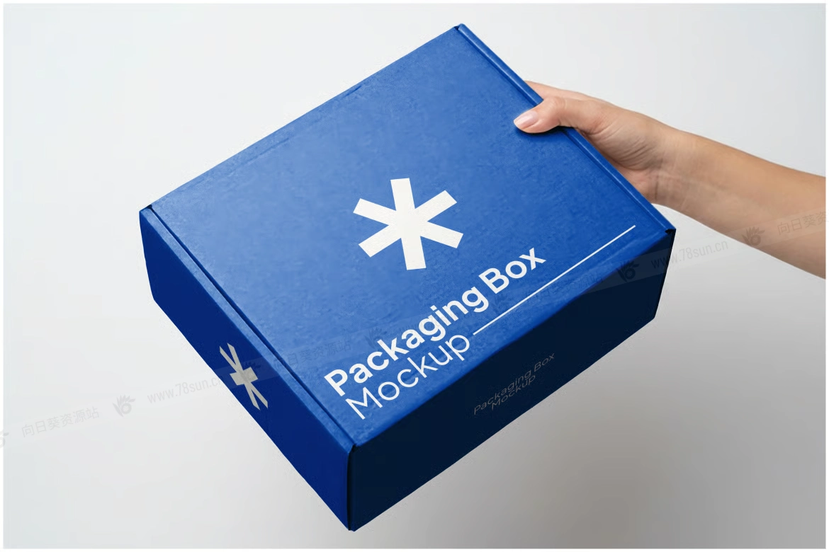 手持包装纸盒品牌VI效果图展示智能贴图psd设计样机,手持多个角度展示,呈现清晰现代的品牌展示。