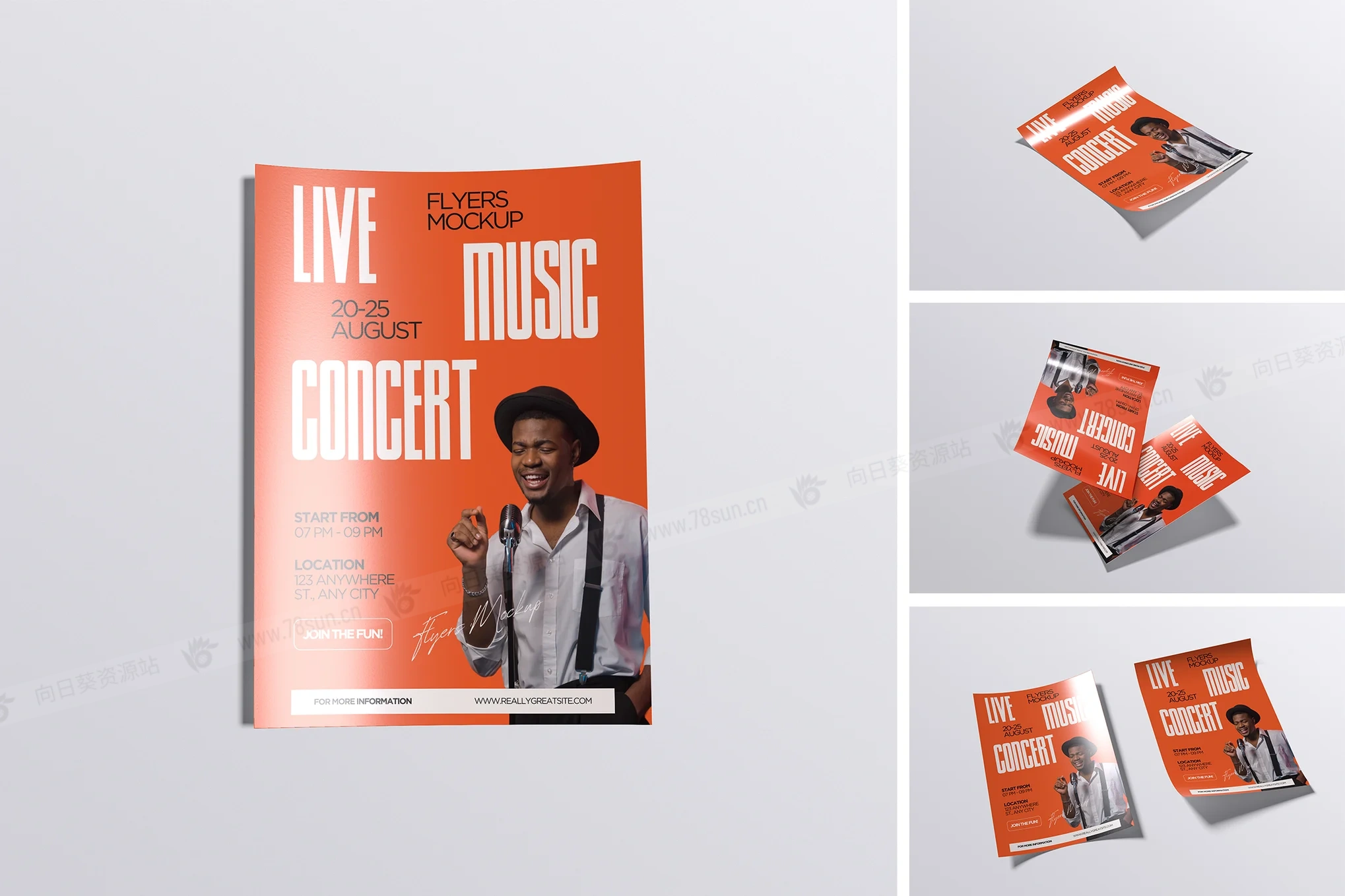海报广告宣传单品牌VI效果图展示智能贴图psd设计样机,这个模型包含4个带有分层良好的PSD文件,并且还采用了智能对象功能,这意味着你可以在几秒钟内轻松快速地用自己的设计替换当前设计。